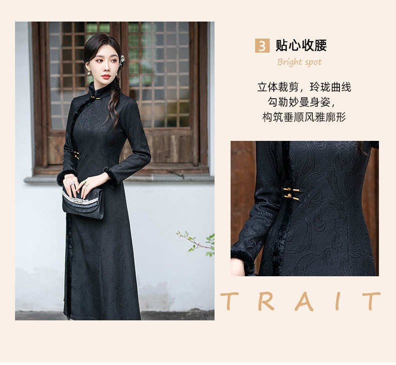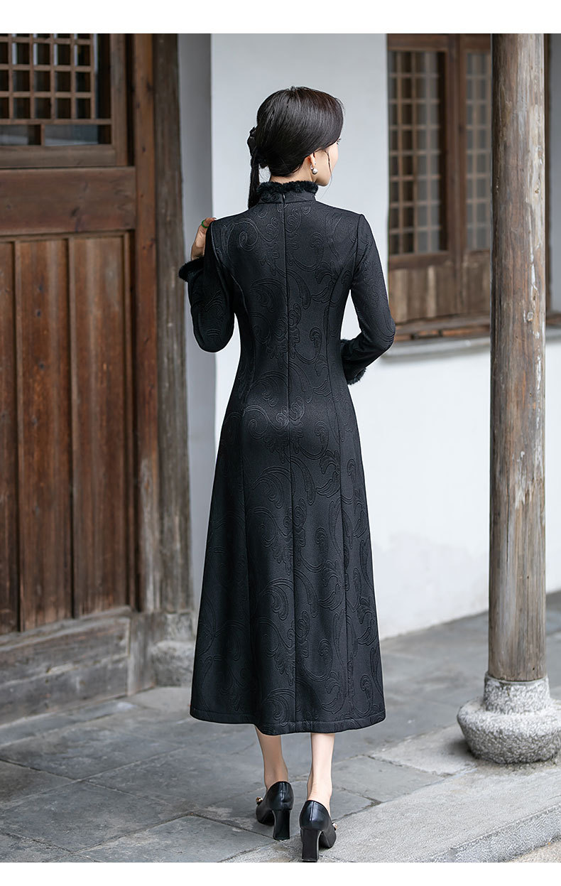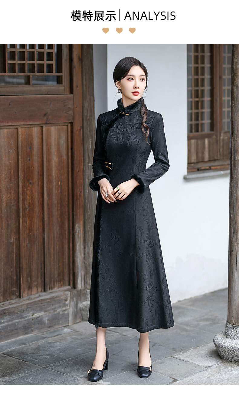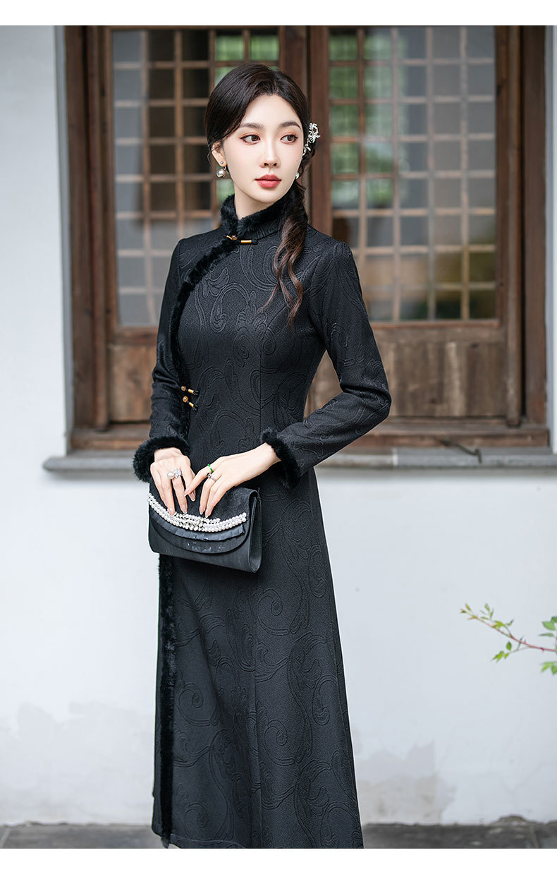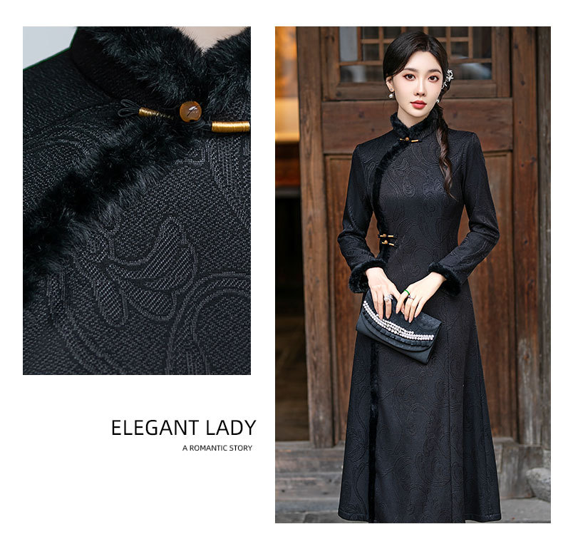 SYG-109秋冬新款高级感改良加绒加厚长袖黑色旗袍女日常复古气质旗袍