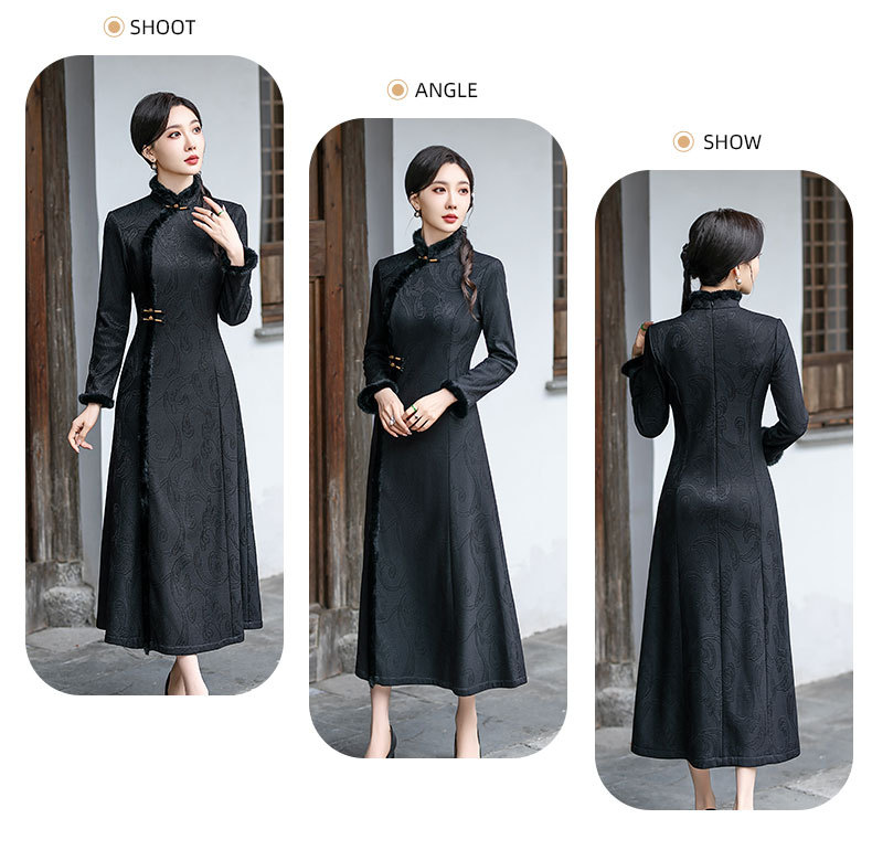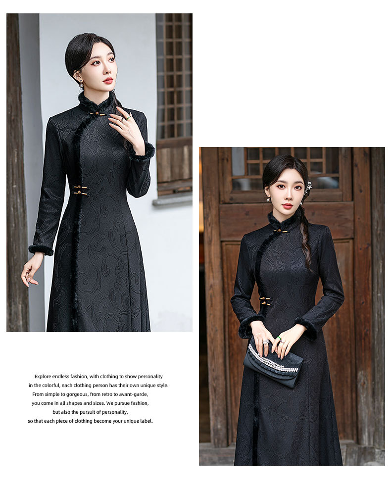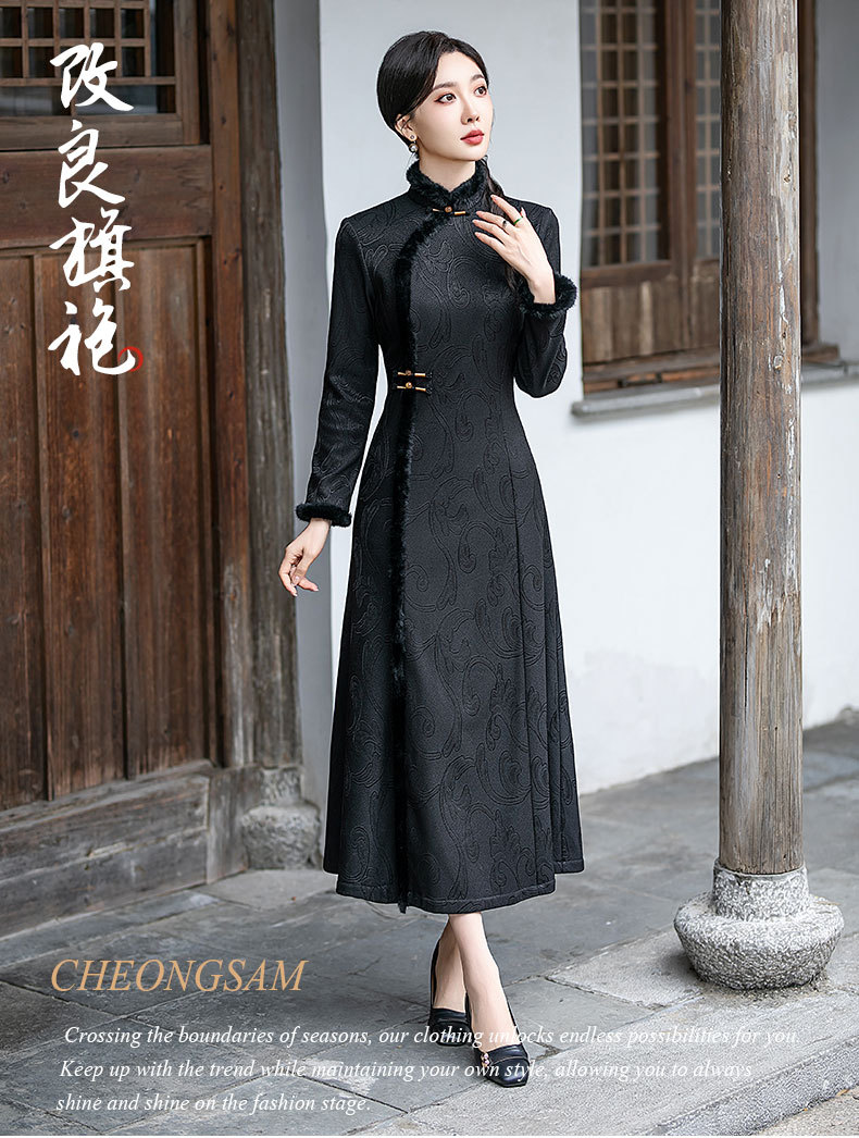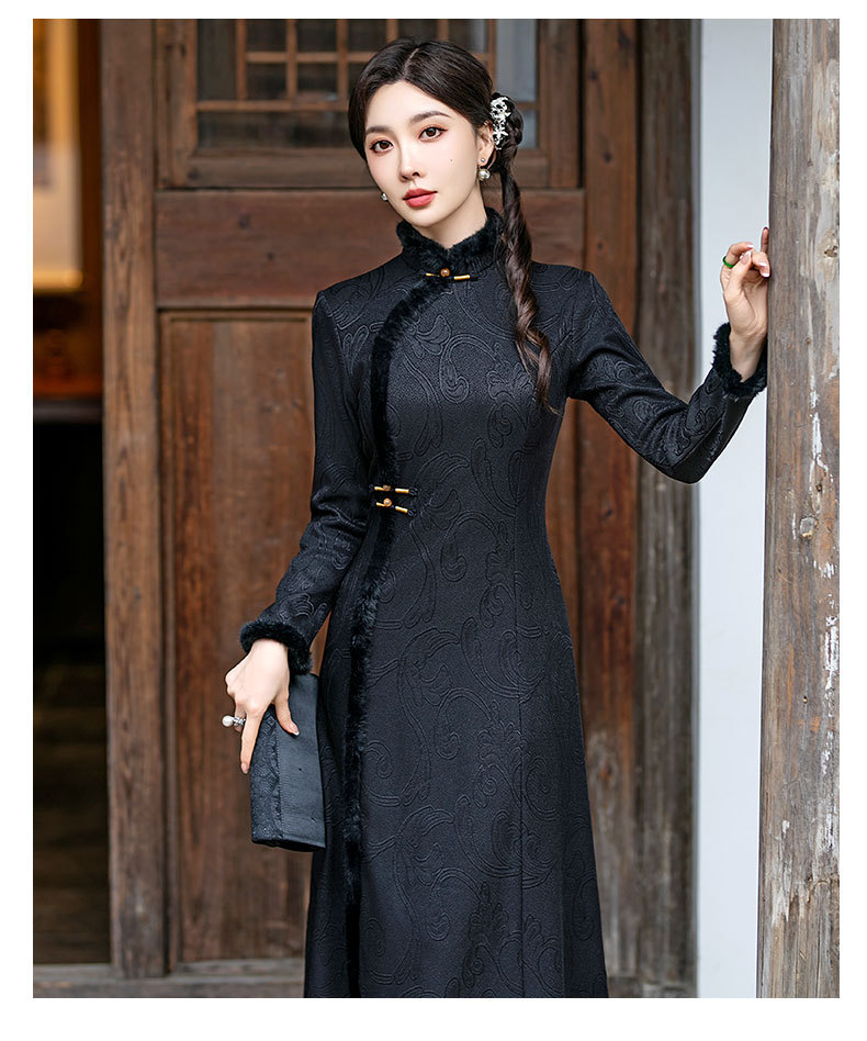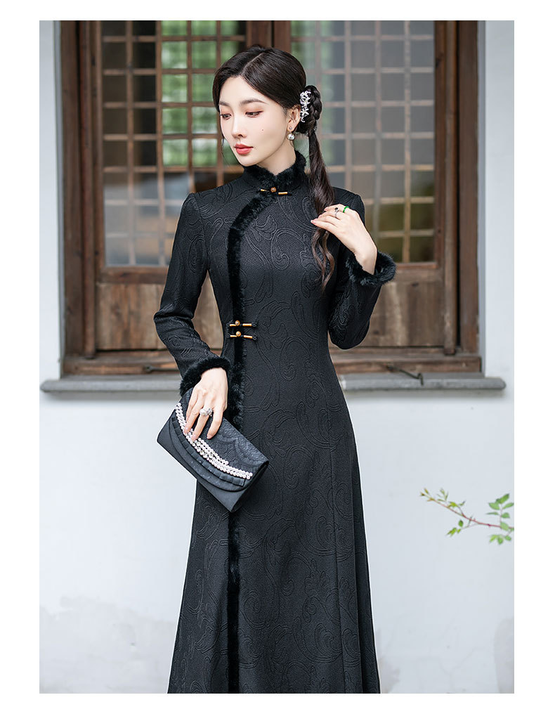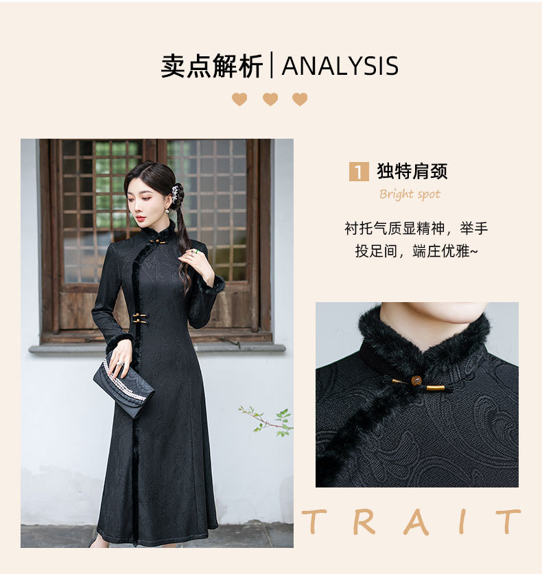 SYG-109秋冬新款高级感改良加绒加厚长袖黑色旗袍女日常复古气质旗袍