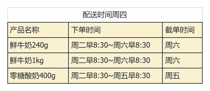 温馨提醒:鲜牛奶根据订单数量来生产,工厂生产时间或配送时间偶会有调整,因此奶的发货时间也会不稳定,带来不便,敬请理解。