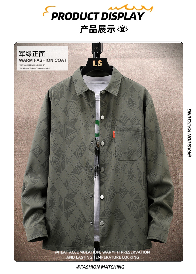 【新款DXC】大依优型大码翻领衬衫外套夹克加肥加大胖子上衣男士外套肥佬男装