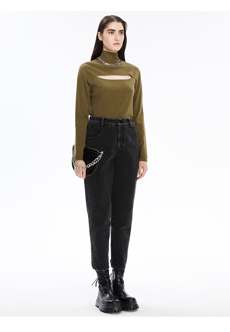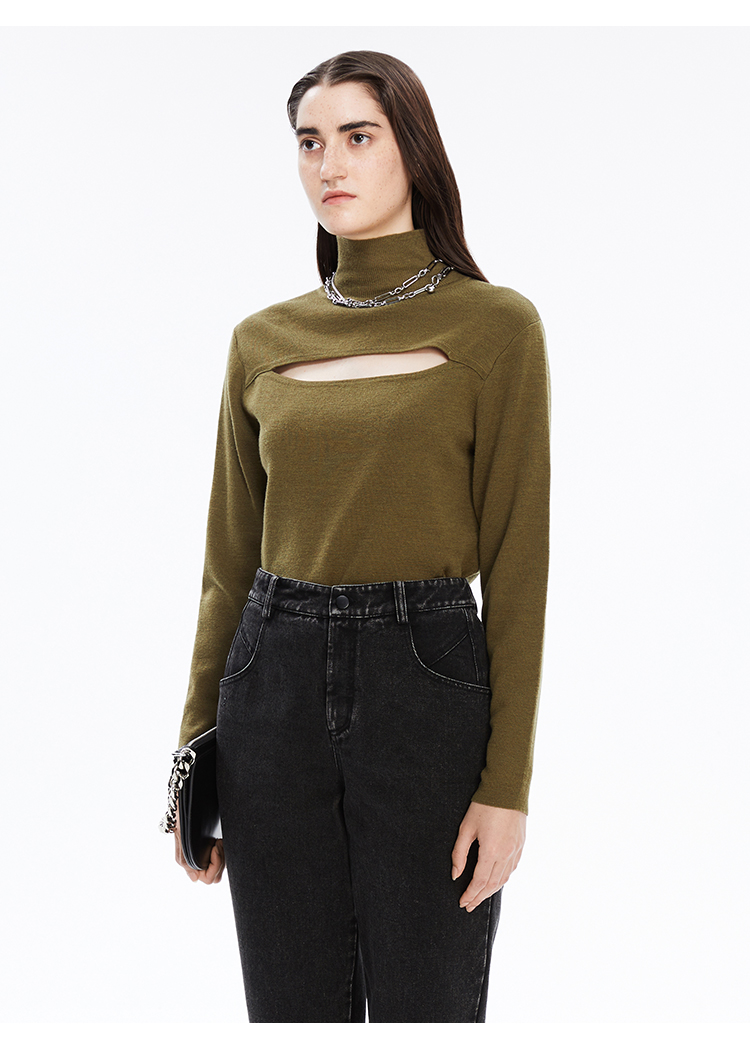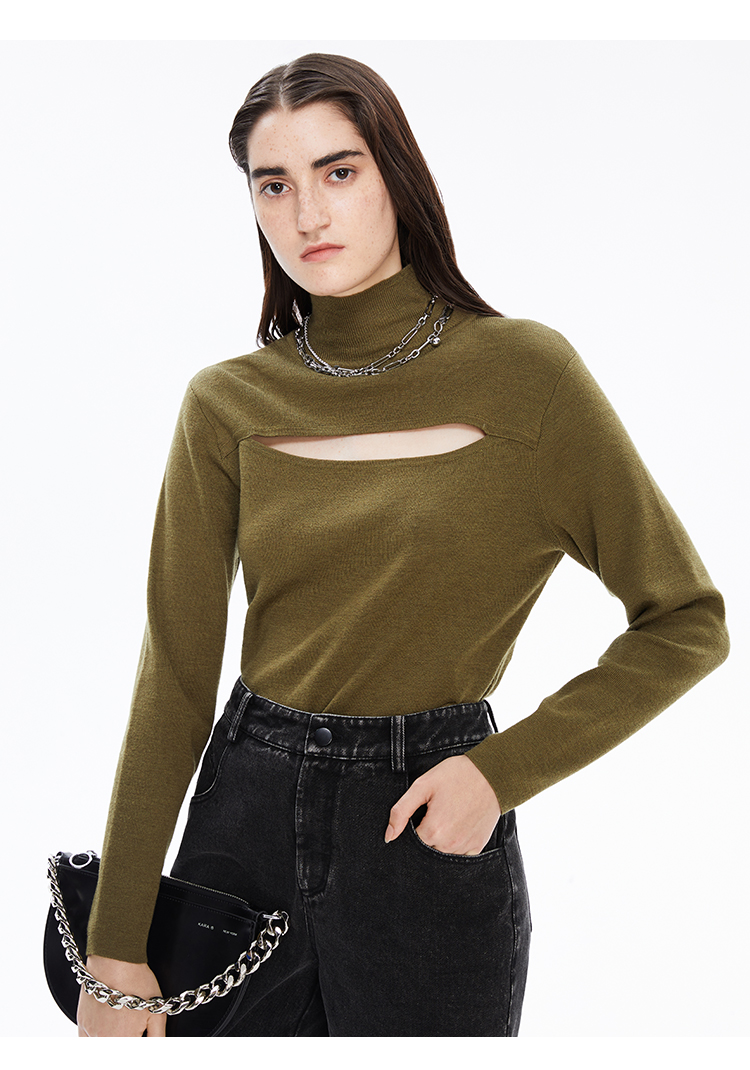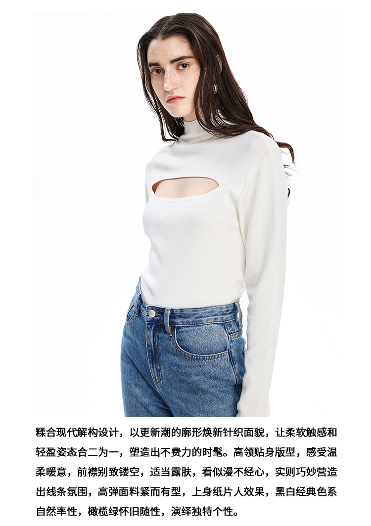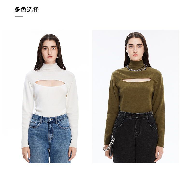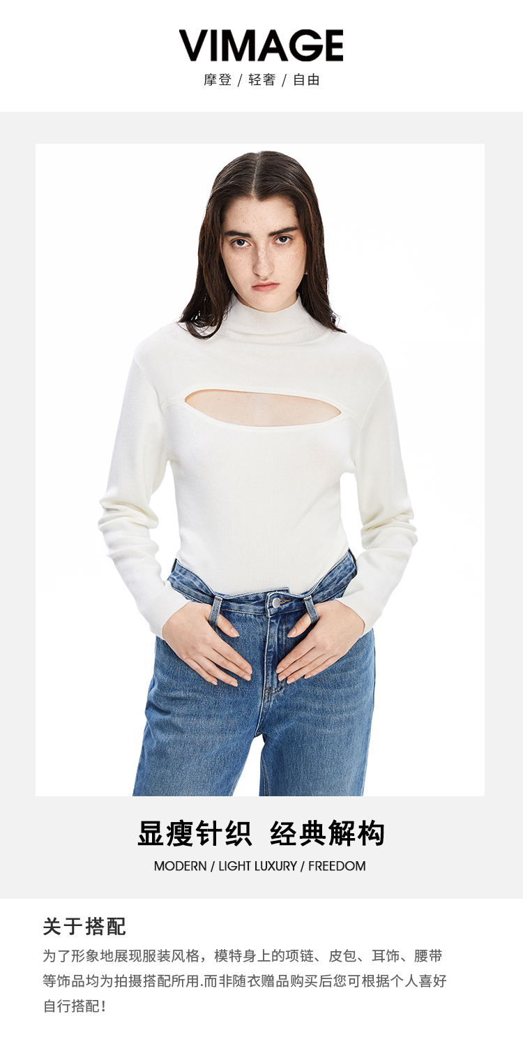 VIMAGE纬漫纪秋季新款简约温柔纯色高领百搭针织衫女打底衫V1601215