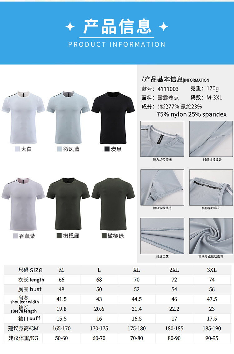 跃牌【跃LEAP-ACTIVE】系列 户外运动休闲锦纶速干衣男圆领军训跑步排汗衣4111003