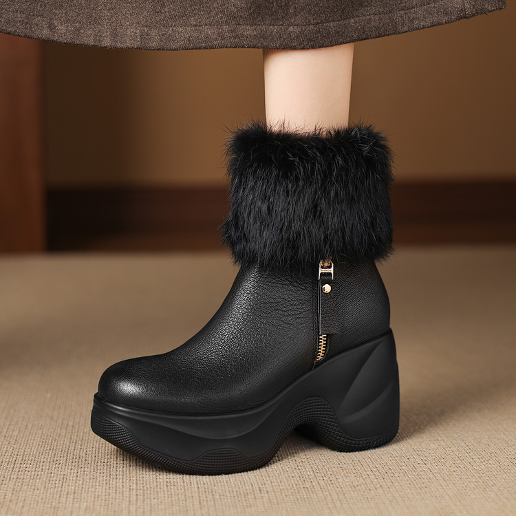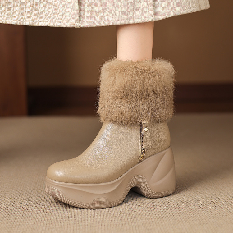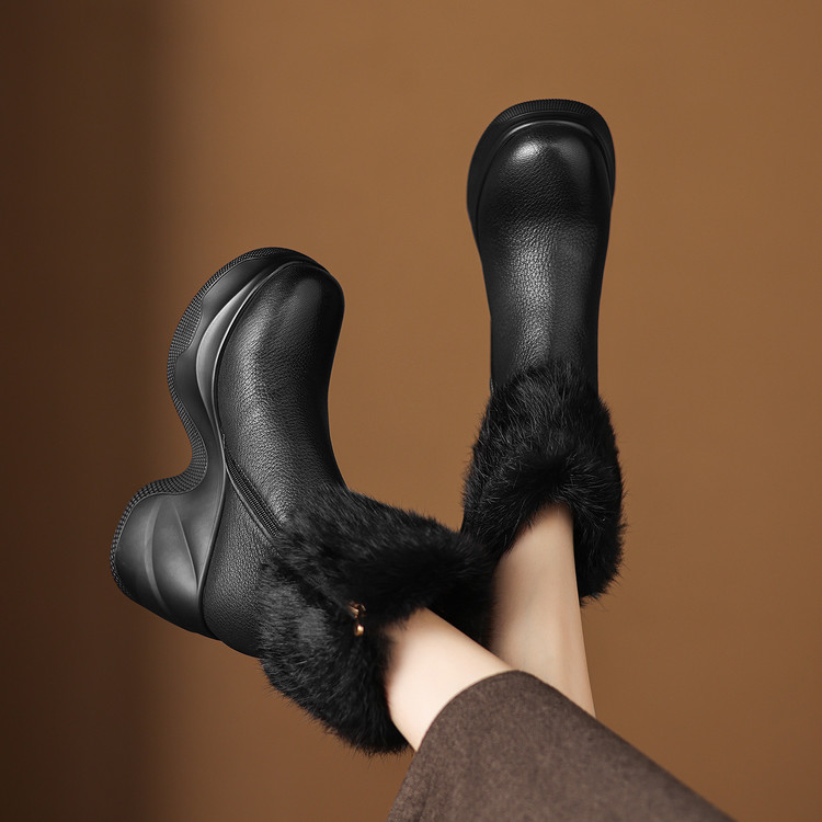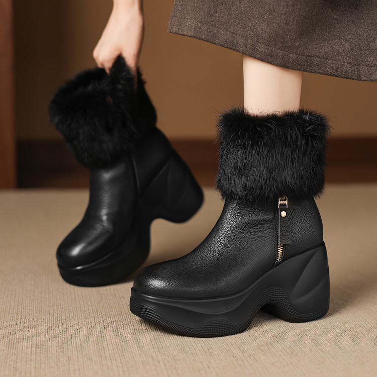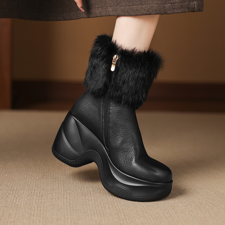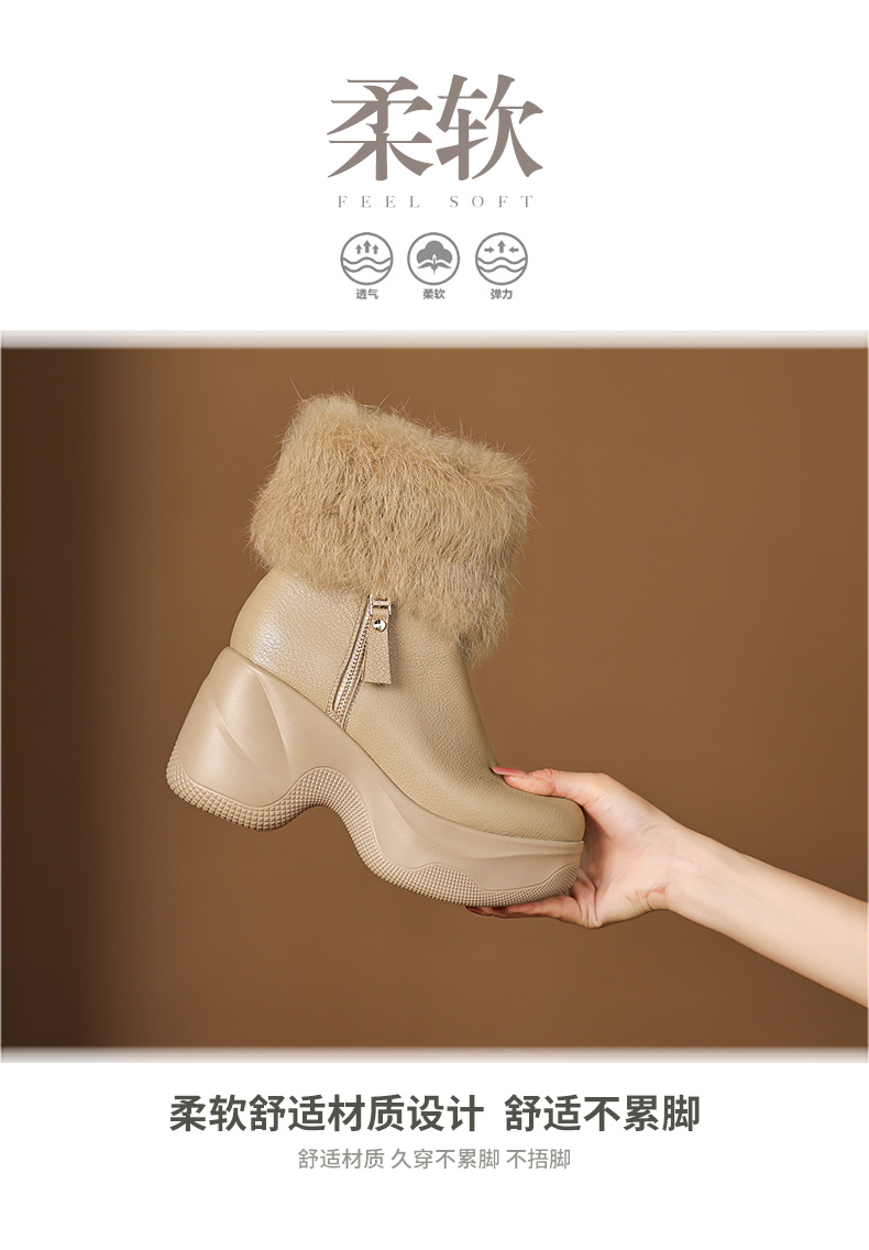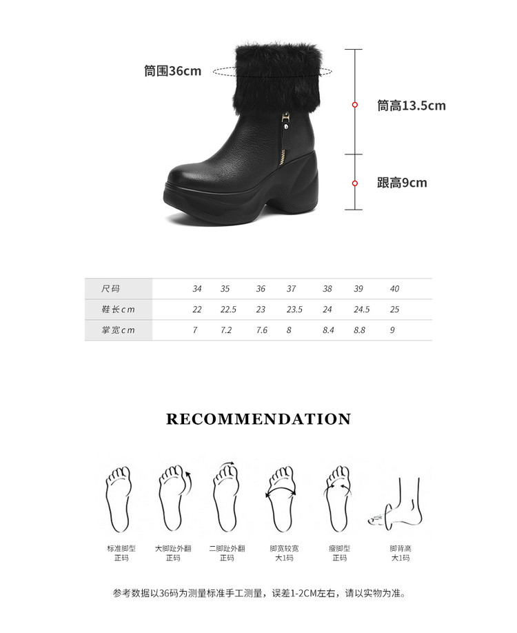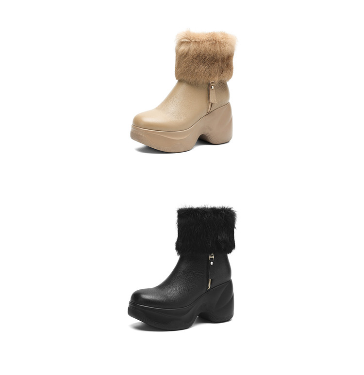 【货 号】N9851【鞋面材质】头层羊皮+兔毛【鞋 垫】绒里【内里材质】绒里【鞋底材质】聚氨酯【跟 高】9cm【水 台】4.5cm【颜 色】黑色 杏色【尺 码】34-39