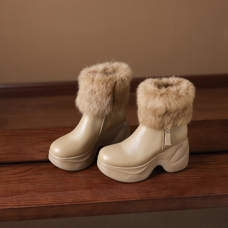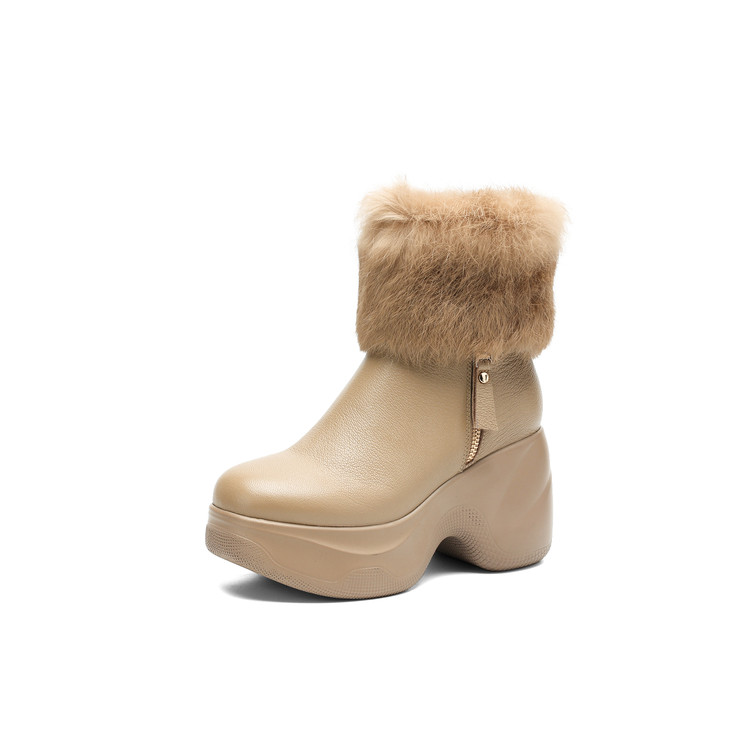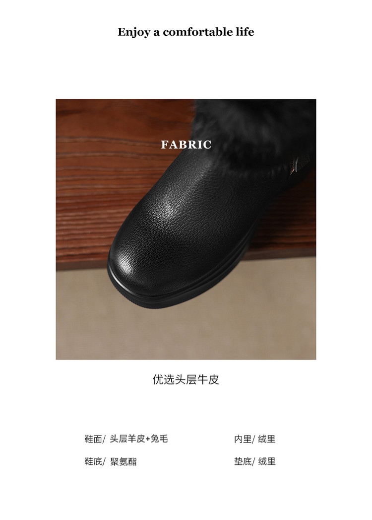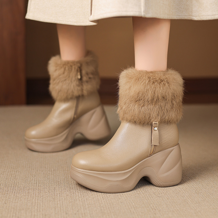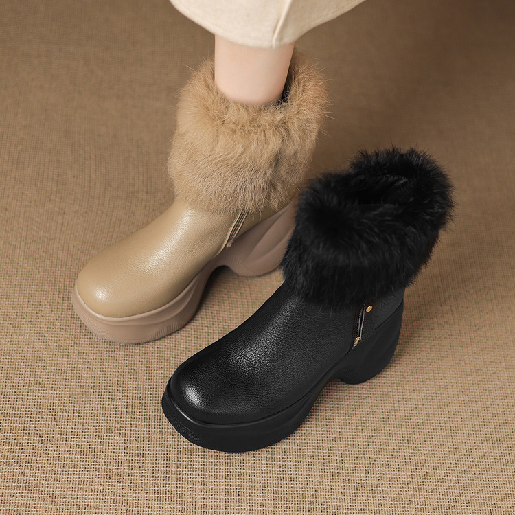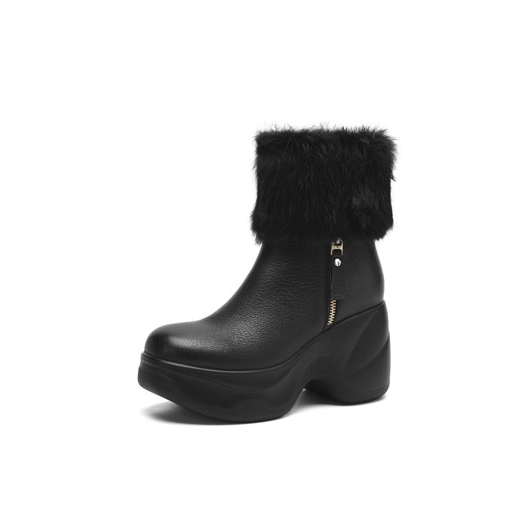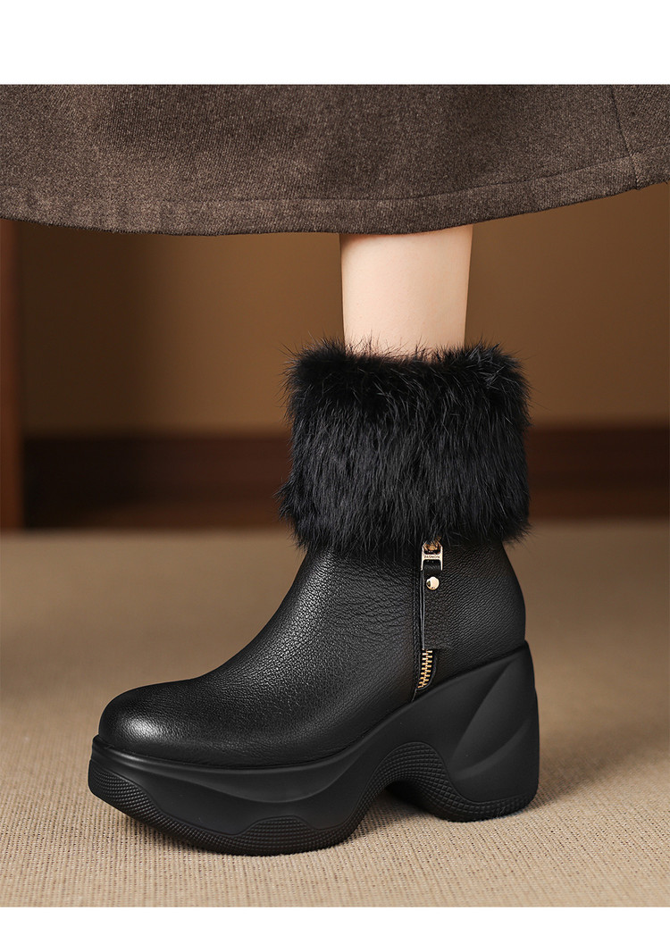 【货 号】N9851【鞋面材质】头层羊皮+兔毛【鞋 垫】绒里【内里材质】绒里【鞋底材质】聚氨酯【跟 高】9cm【水 台】4.5cm【颜 色】黑色 杏色【尺 码】34-39