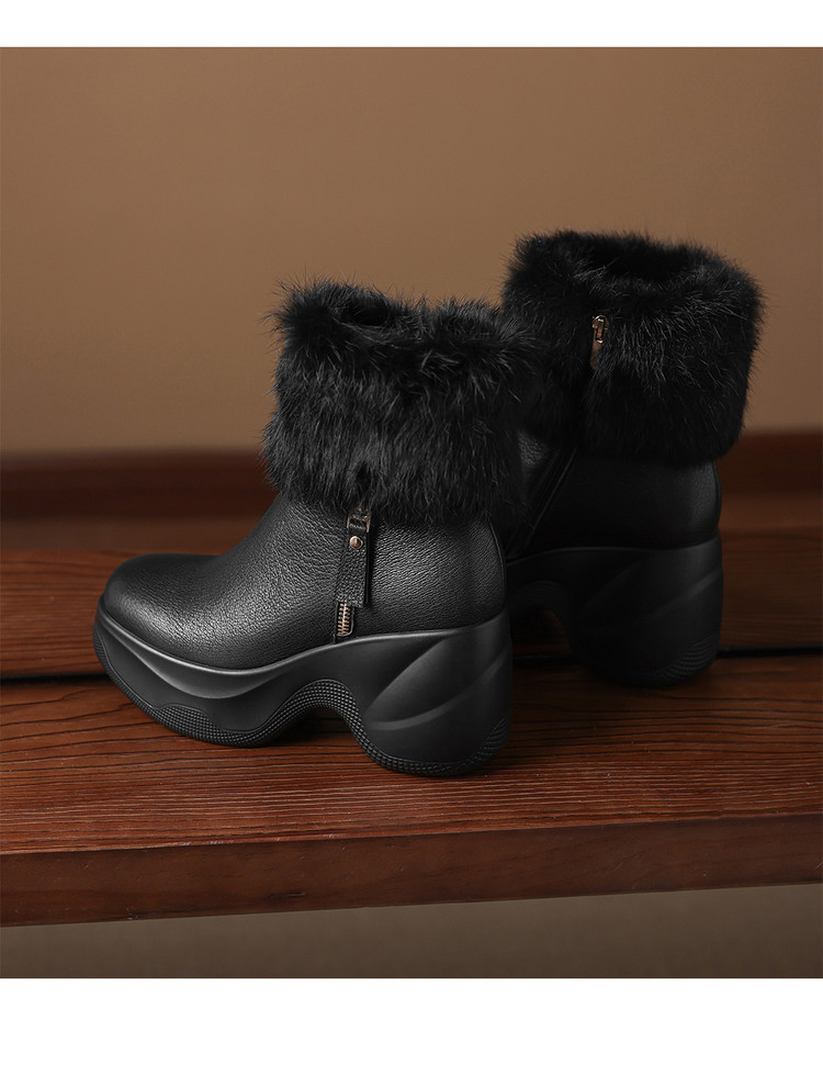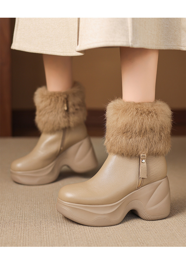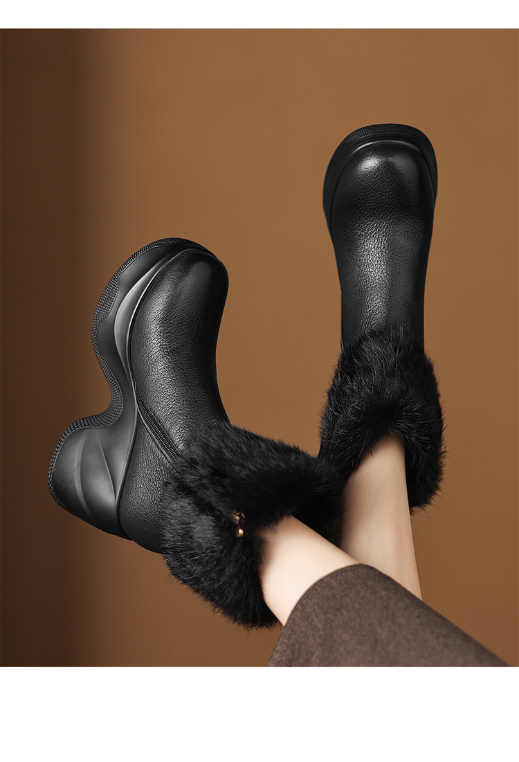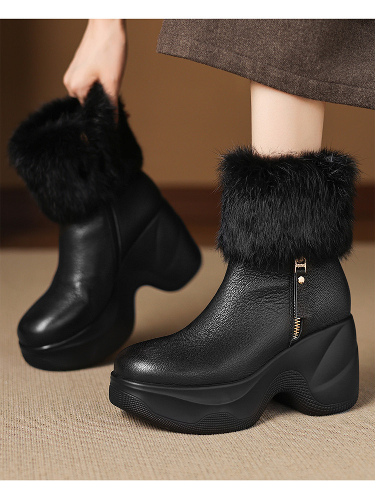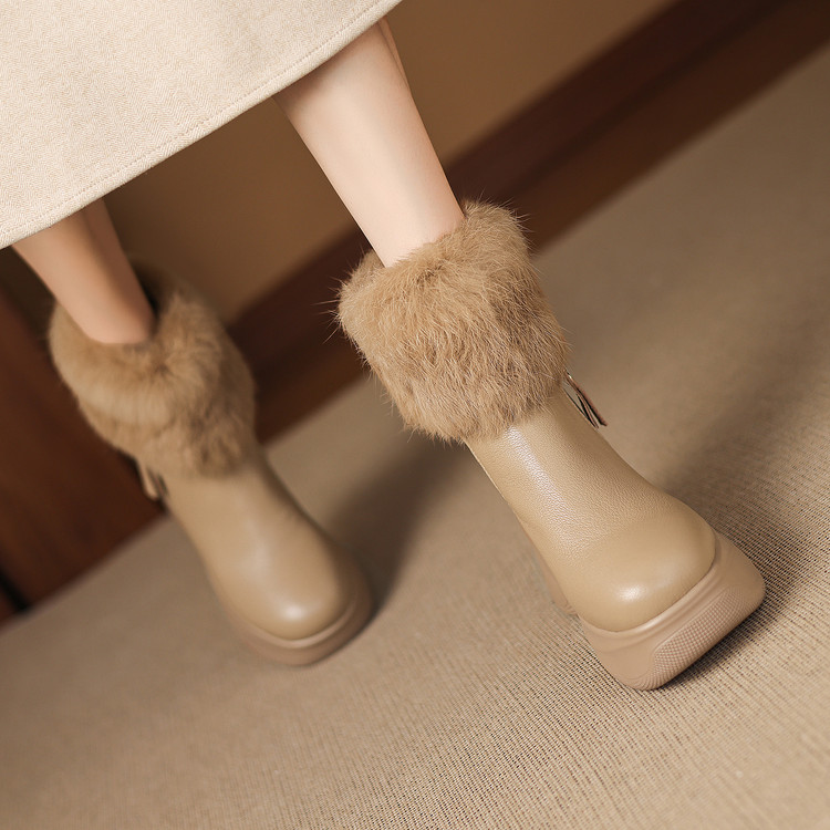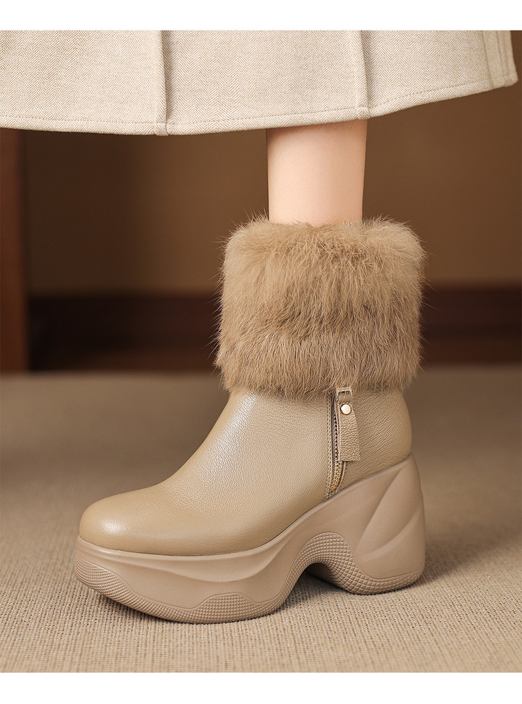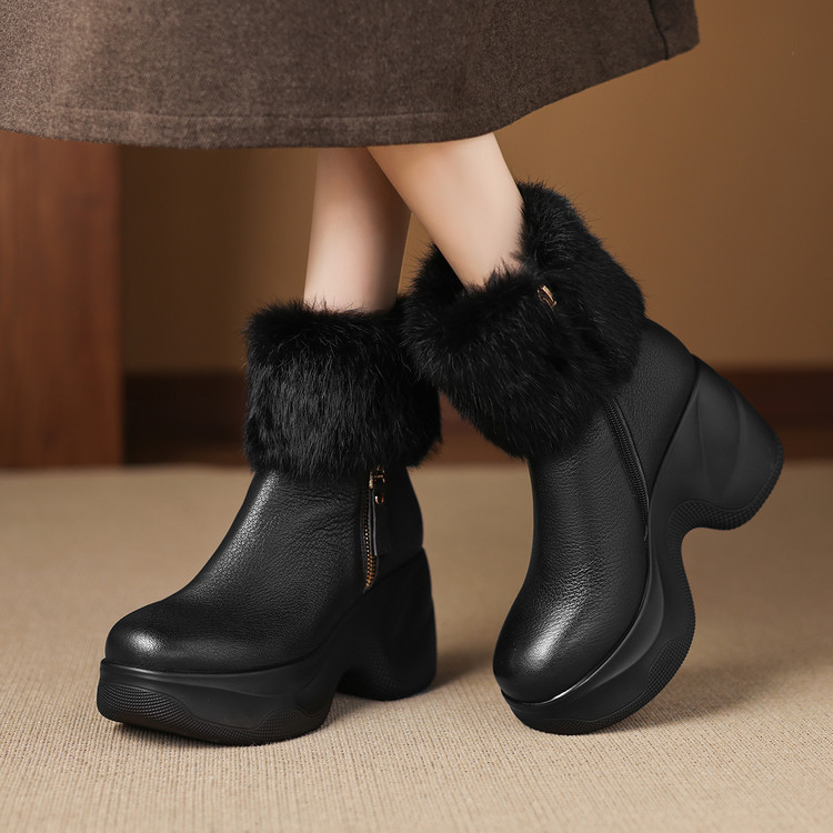 【货 号】N9851【鞋面材质】头层羊皮+兔毛【鞋 垫】绒里【内里材质】绒里【鞋底材质】聚氨酯【跟 高】9cm【水 台】4.5cm【颜 色】黑色 杏色【尺 码】34-39
