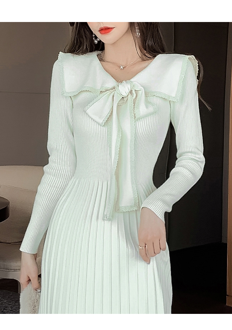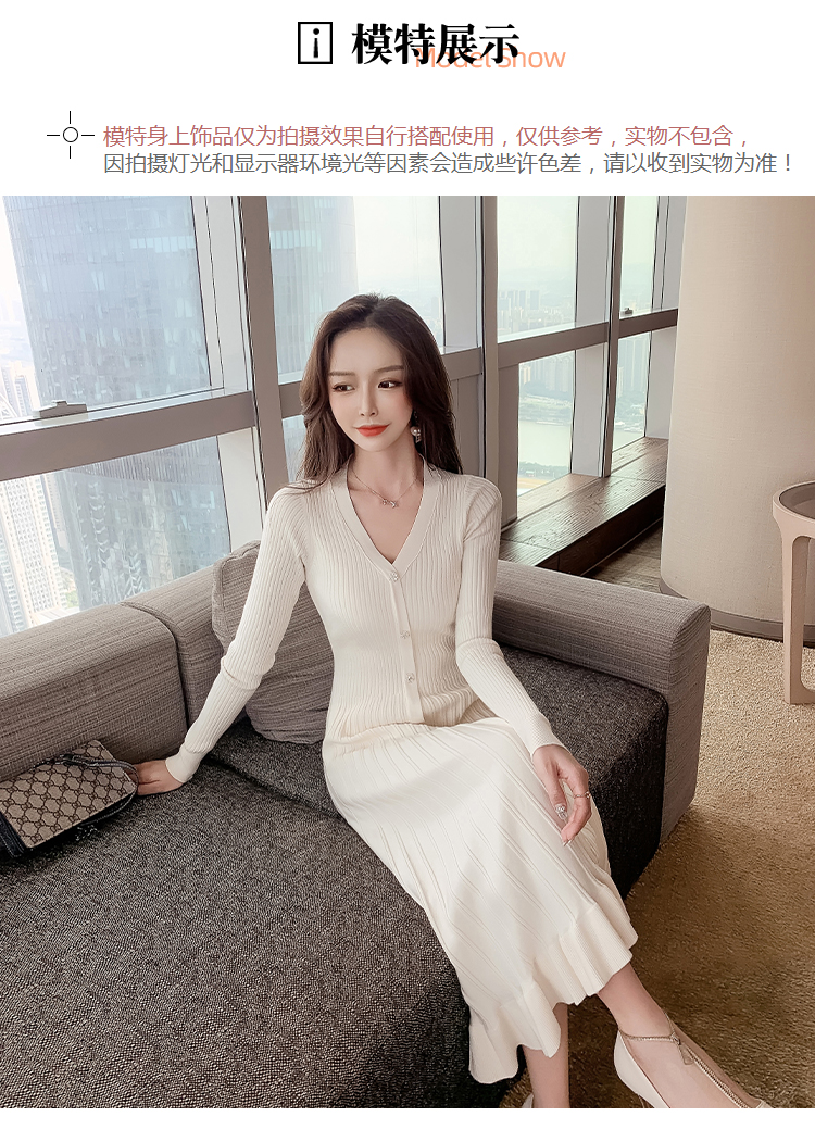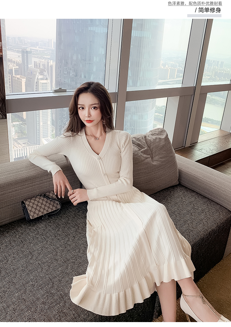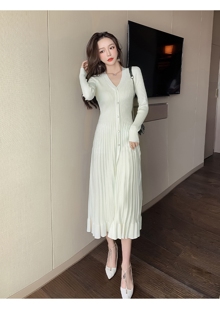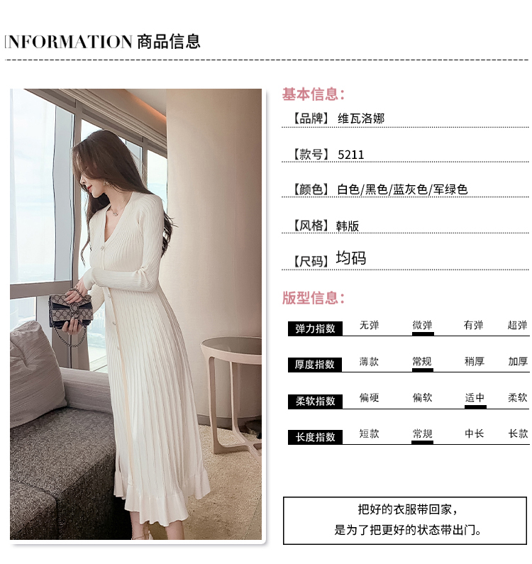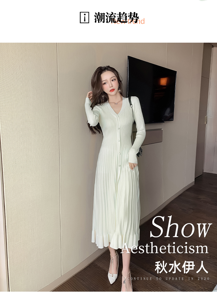 实拍冬季针织毛衣大v领长袖大摆形钻扣连衣裙女 NSM5211