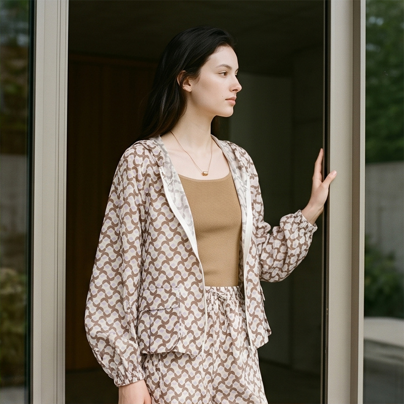 PALUOPO/PL春夏桑蚕丝复古连帽小个子真丝外套ES250737Z