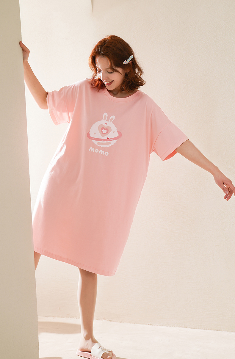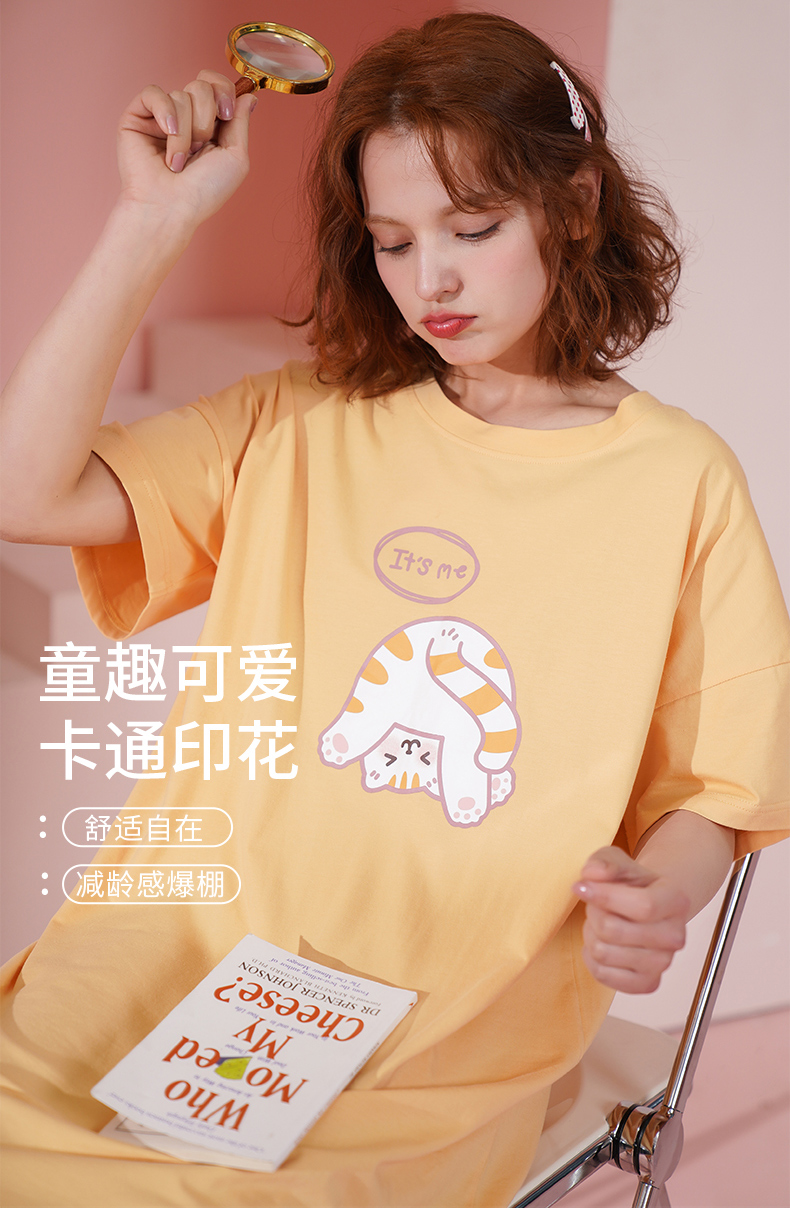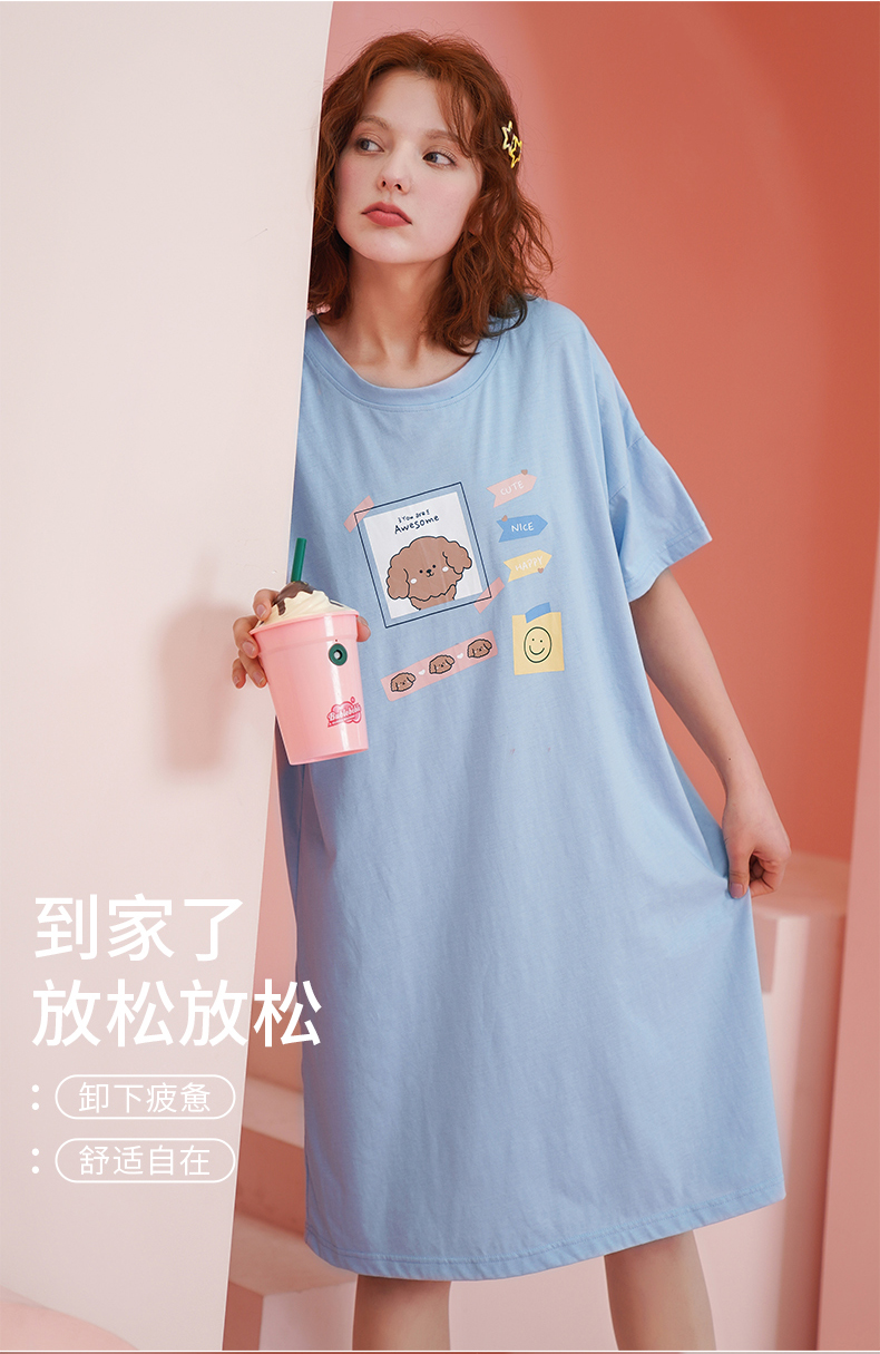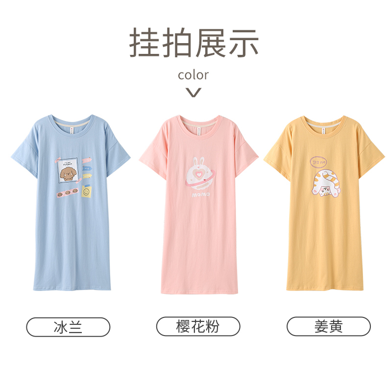芬腾睡裙女纯棉春秋天夏季薄款休闲宽松可爱睡衣连衣裙子大码
