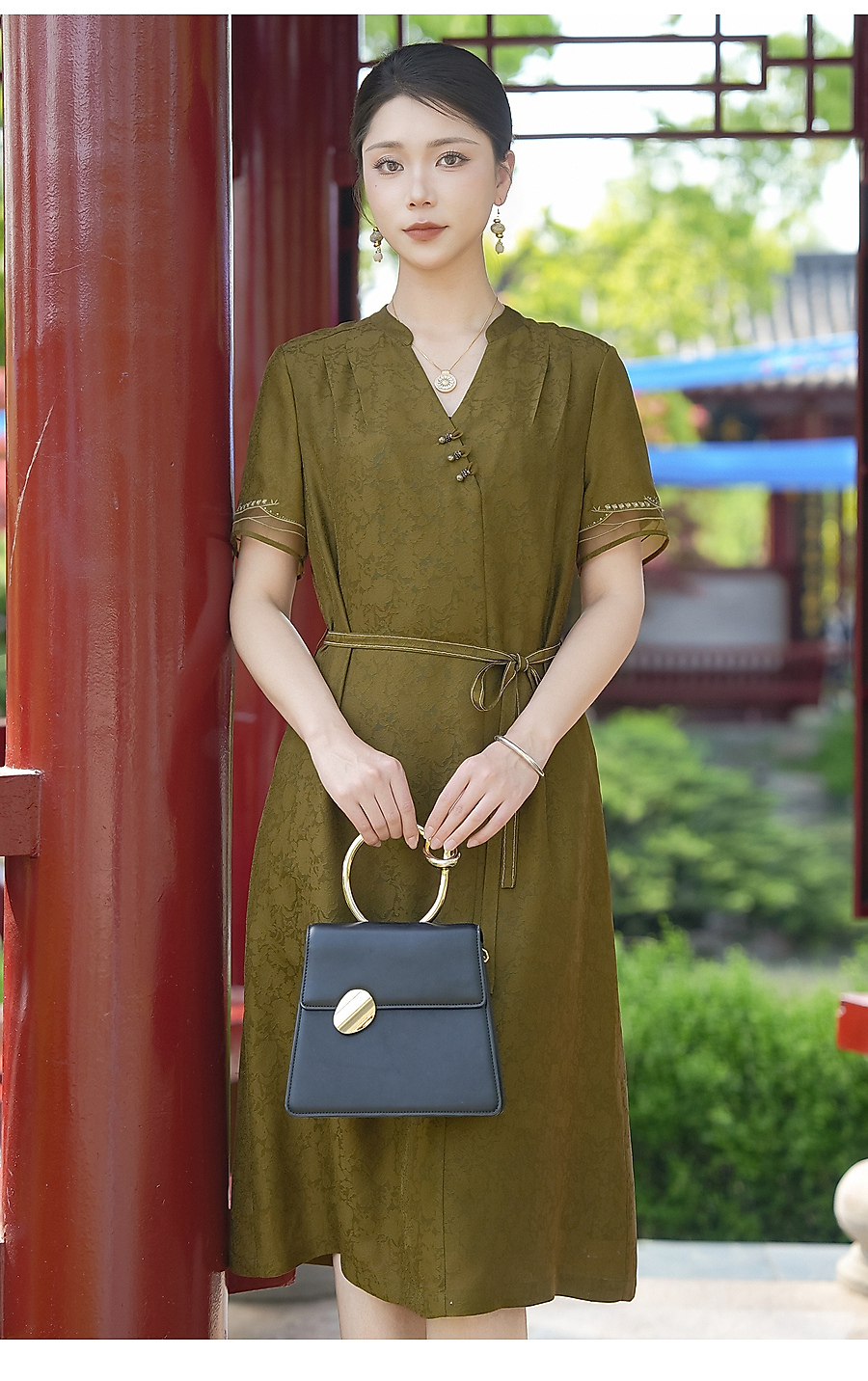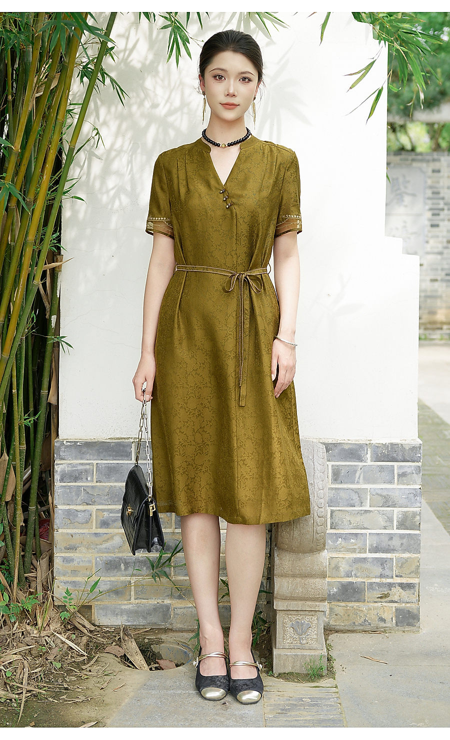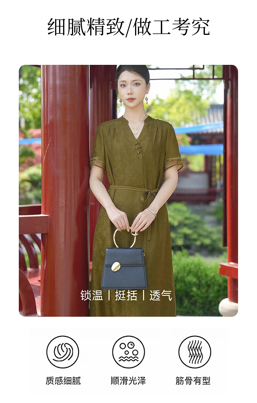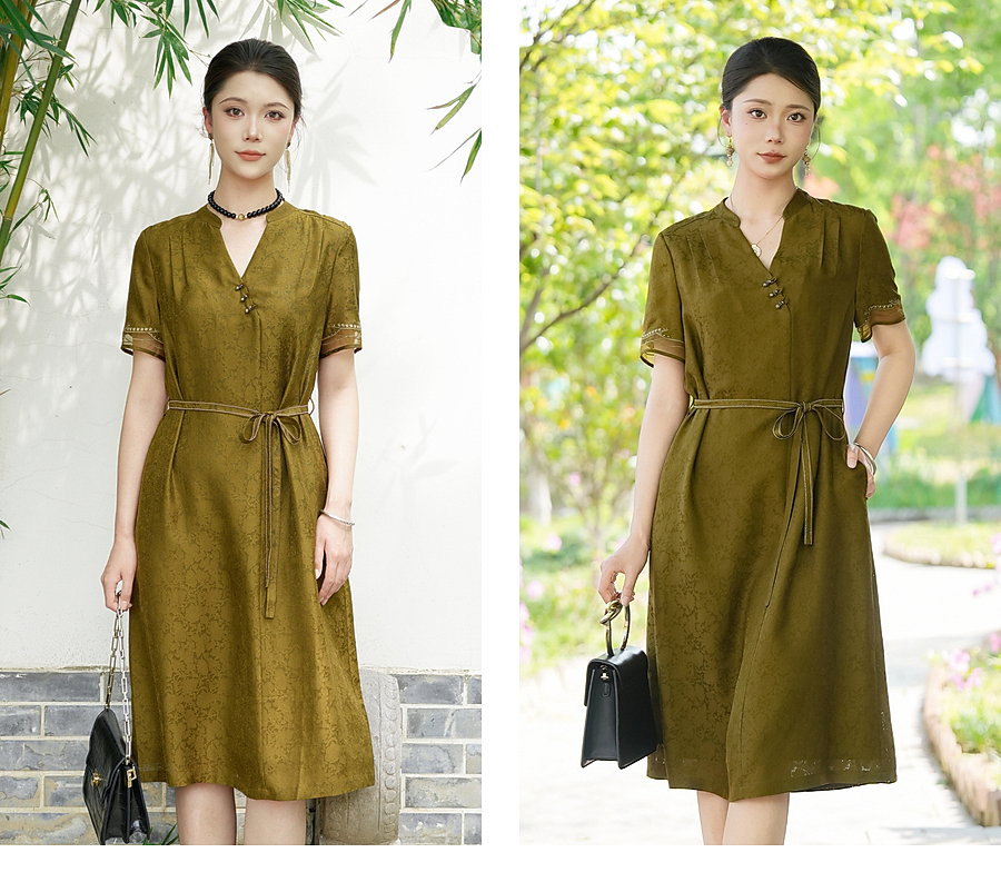 乔万尼商场同款2026夏新品100%桑蚕丝连衣裙中长款裙子EK2E165