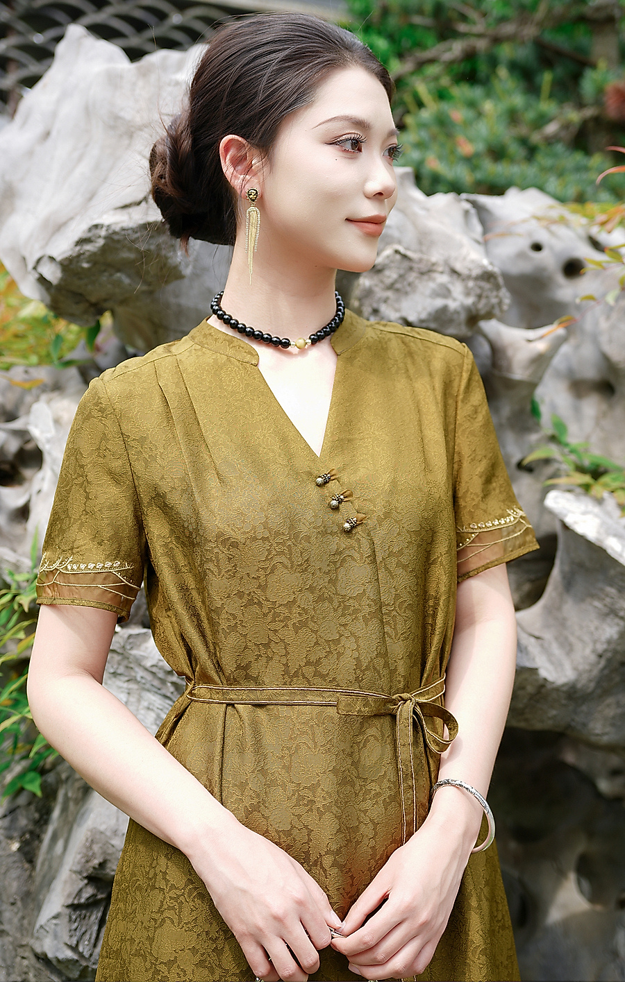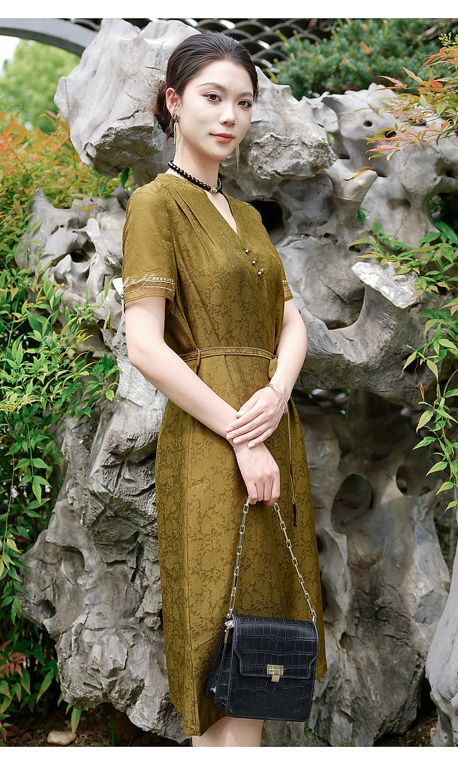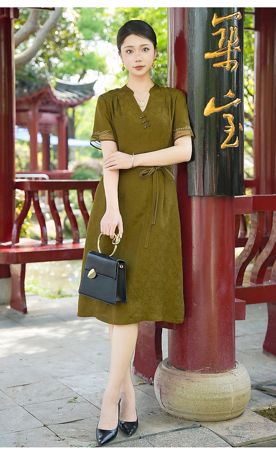 乔万尼商场同款2026夏新品100%桑蚕丝连衣裙中长款裙子EK2E165