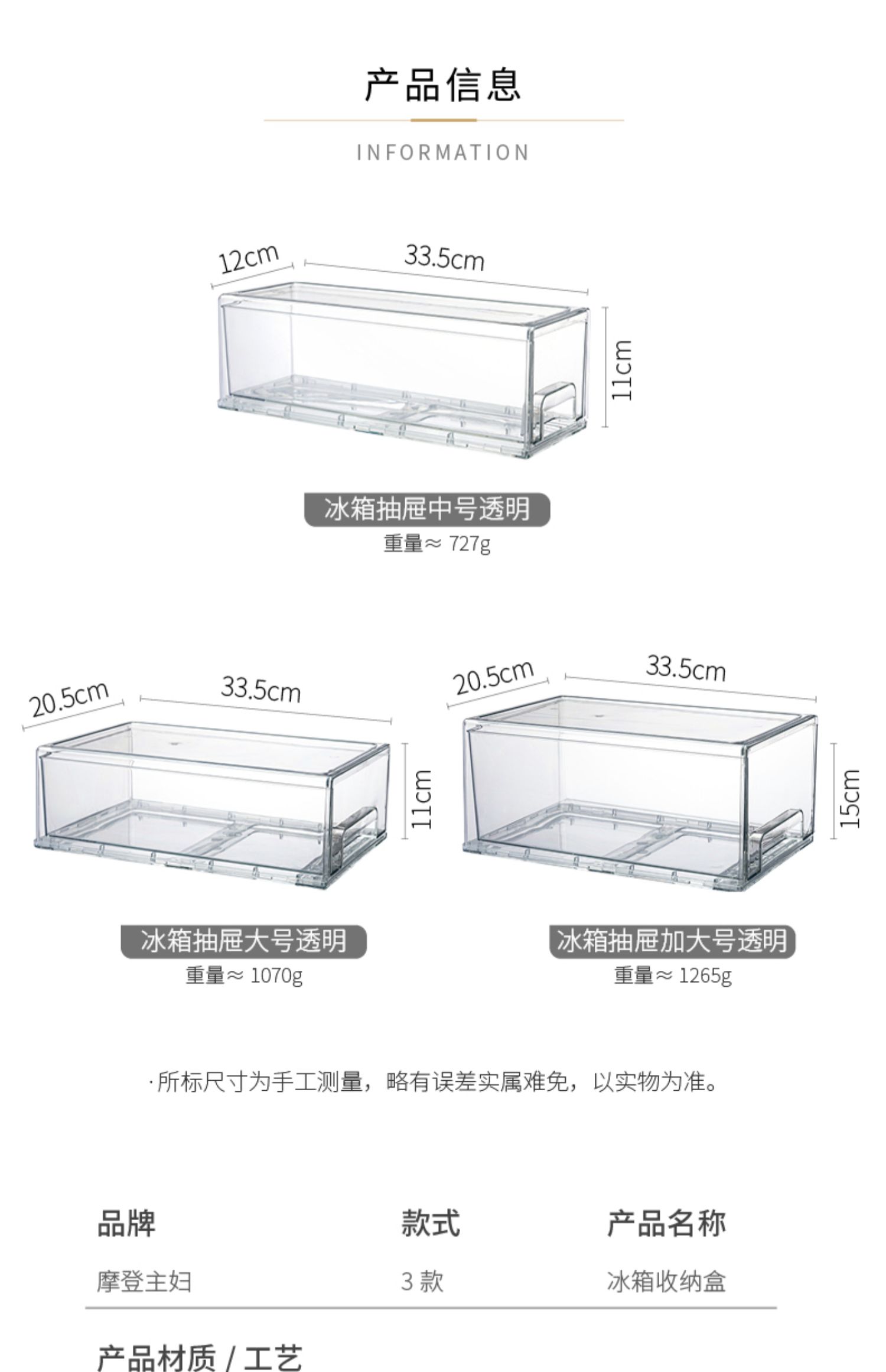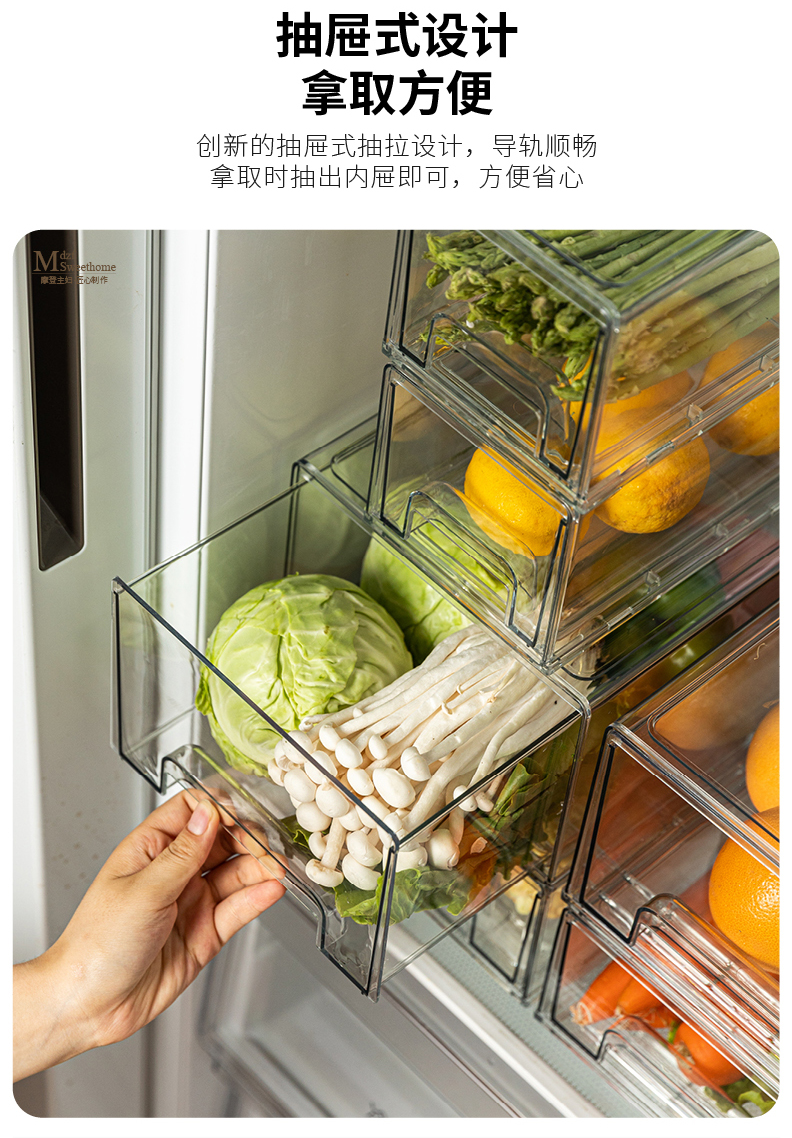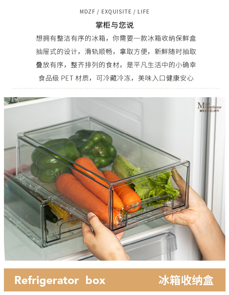 摩登主妇冰箱收纳盒抽屉式厨房整理神器冷藏专用食品级水果保鲜盒