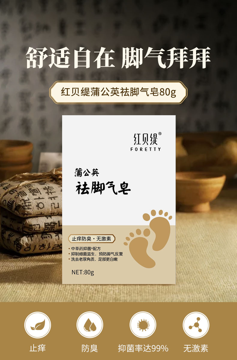 买一送一!【止痒防臭草本配方】红贝缇防臭去脚汗洗脚皂止痒温和不刺激精油香皂