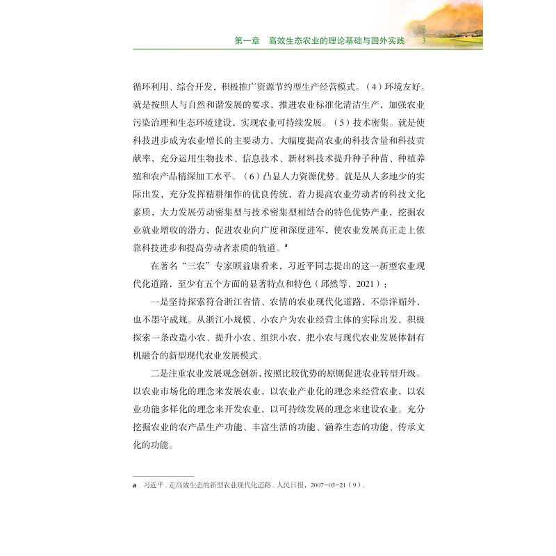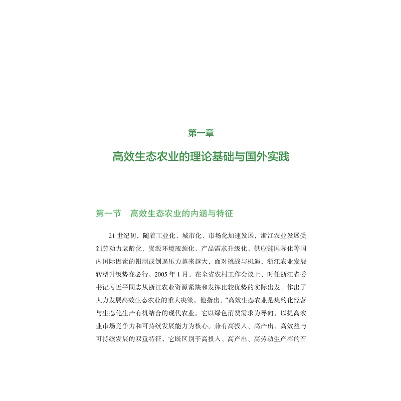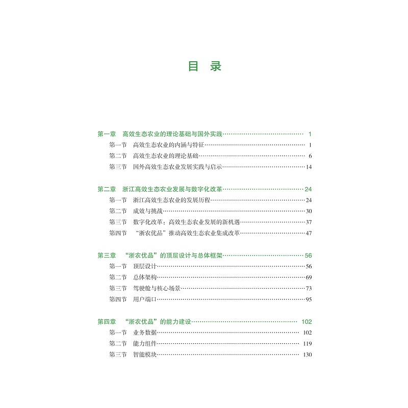 “求是智库”丛书系列,“浙江省数字化改革系列丛书”之一种。“高效生态农业”是习近平总书记留给浙江的一张金名片。在数字化改革背景下,省农业农村厅以“浙农优品”开发应用为契机,对农产品生产销售全链条业务进行系统性重塑,通过打通生产端“肥药减量”、服务端“质量可追”、销售端“优质优价”等两山转化通道,推动高效生态农业集成改革。本书首先介绍了浙江高效生态农业的发展脉络和相关理论与实践,然后以“集成改革背景—数字赋能载体—集成改革成效”为主线,系统阐述了高效生态农业集成改革的机遇与挑战、数字化应用“浙农优品”的架构与建设推广、数字赋能取得的成效以及代表性案例。总体上,本书是对全省高效生态农业发展实践的梳理及总结,集合了省级与地方以数字化手段推动高效生态农业集成改革的智慧与经验。