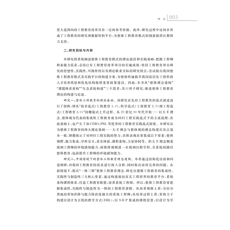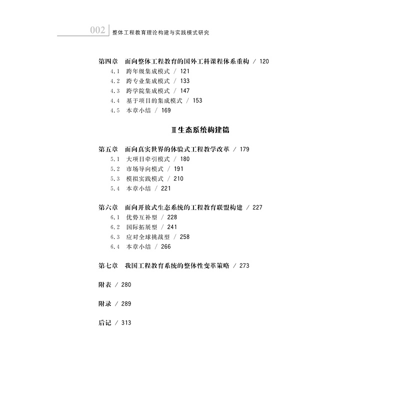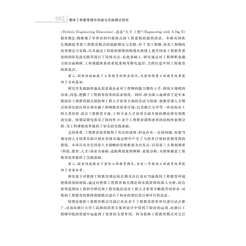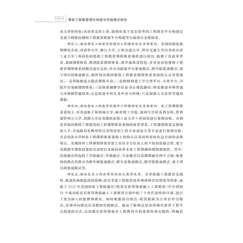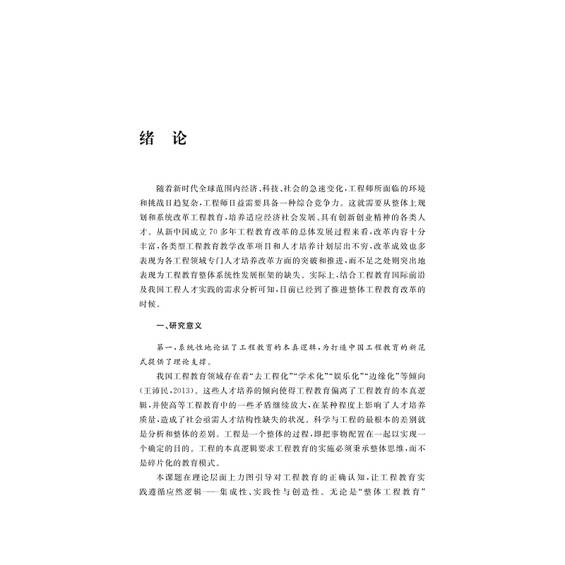 随着现时代全球范围内经济、科技、社会的急速变化,工程师所面临的环境和挑战日趋复杂,工程师们更加需要一种综合竞争力。这就需要从整体上规划和改革工程教育,培养适应经济社会发展、具有创新创业精神的各类人才。从我国过去几十年工程教育改革的整个发展过程来看,其改革内容虽然已经较为丰富,各类项目和人才培养实践计划的优缺得失之处仍有比较明显的体现,成效多表现为各工程领域专门人才培养改革方面的突破和推进,不足之处则突出地表现为工程教育整体发展框架的缺失。实际上,结合工程教育国际前沿及我国工程人才实践的需求分析可知,目前已经到了推进整体工程教育改革的时机。本书是对中国工程院院士咨询课题的研究成果。全书分为整体理念构建篇、课程体系重构篇、生态系统构建篇三部分。
