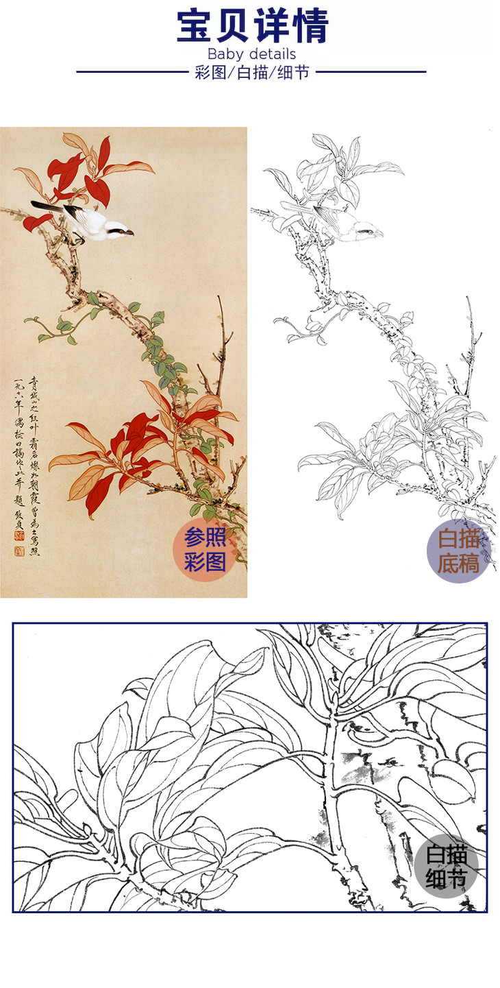 俞致贞竖幅工笔花鸟白描底稿-《青城红叶》-多种白描尺寸可选-JV38