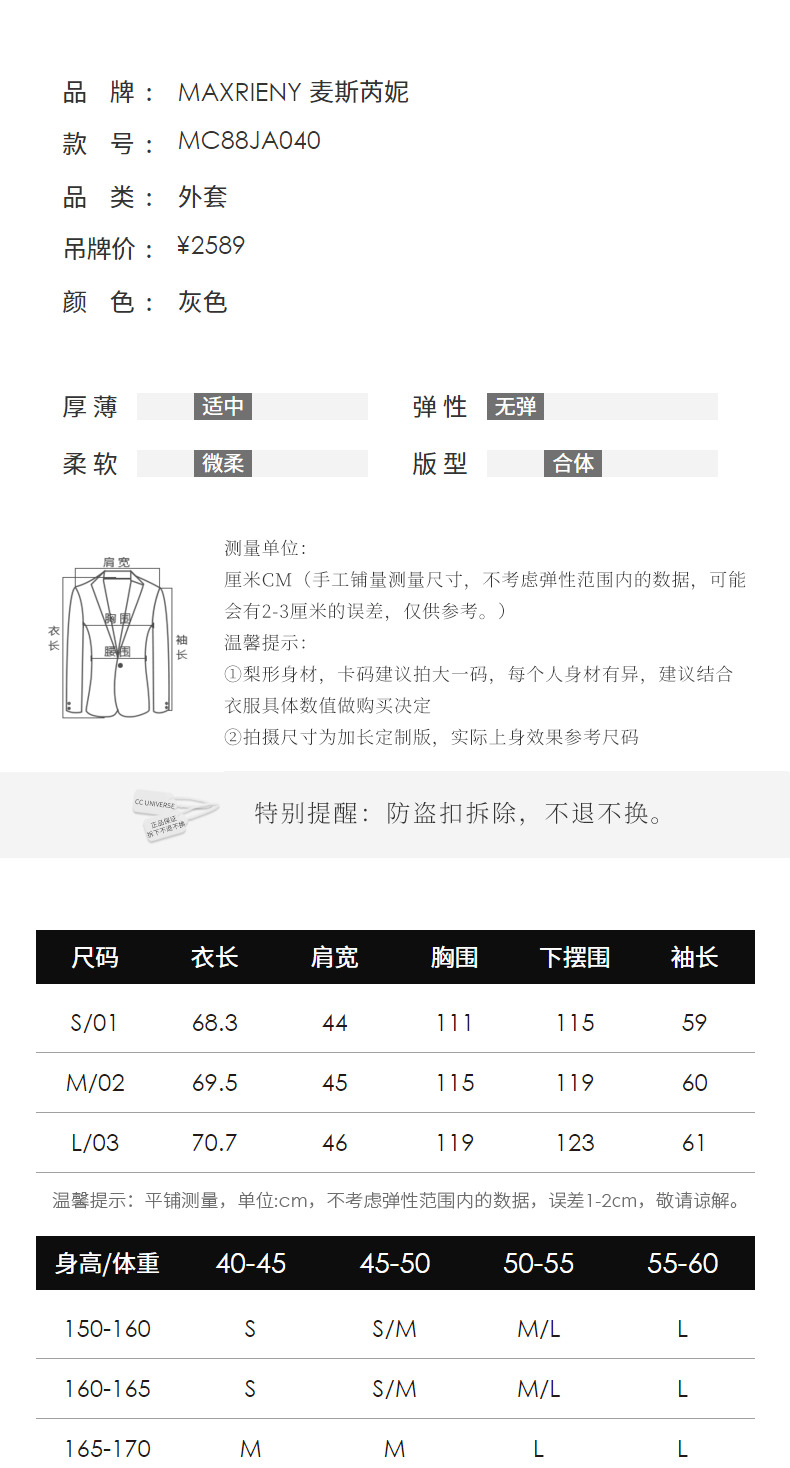 玛克门店发货:MAXRIENY精致设计感通勤风廓形西服(货号:MC88JA040)