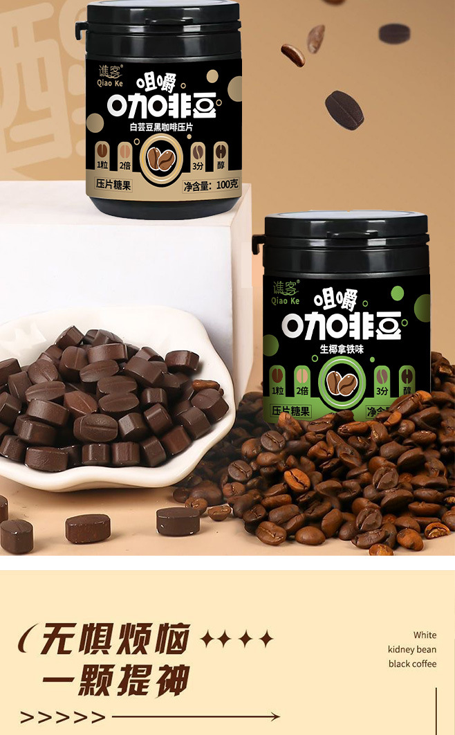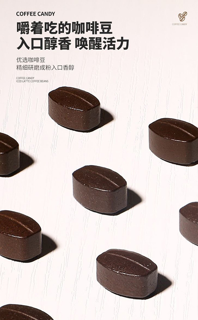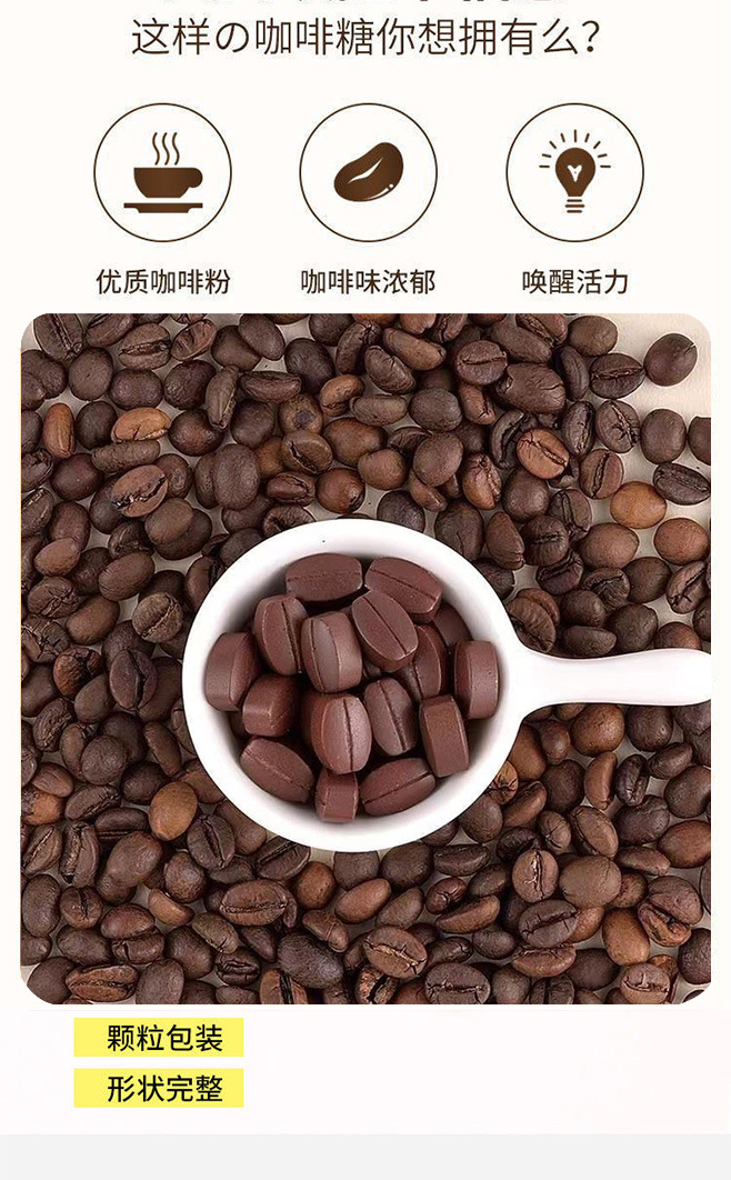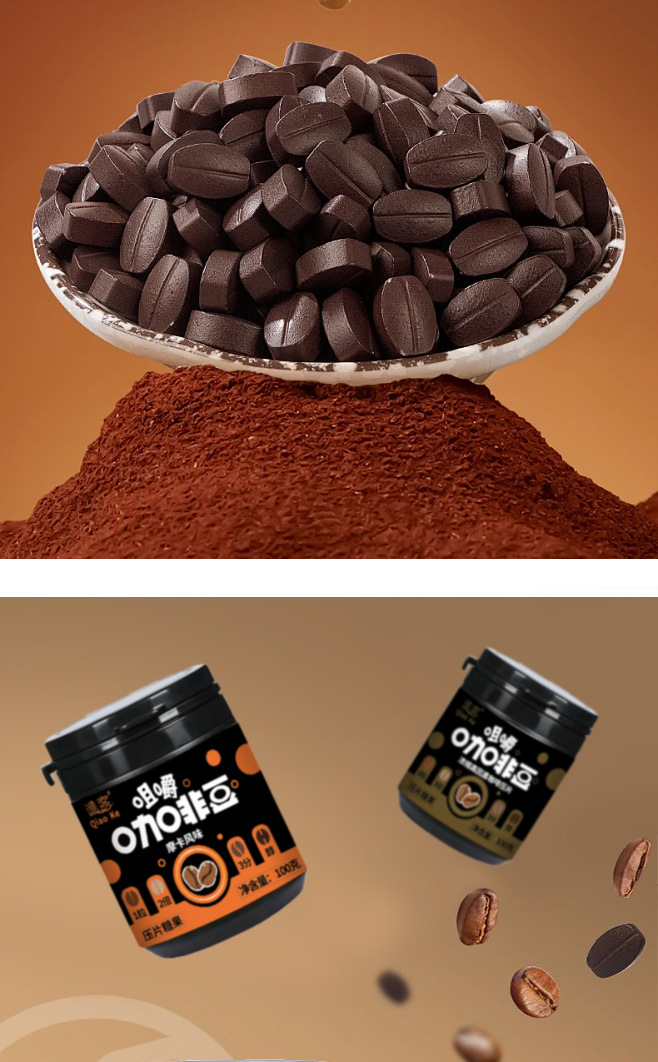 【口嚼更有劲!嚼着吃的咖啡糖豆~】摩卡咖啡压片糖果 犯困提神 卡布奇诺醒脑压片 拿铁糖罐装 网红即食咖啡糖-QQ