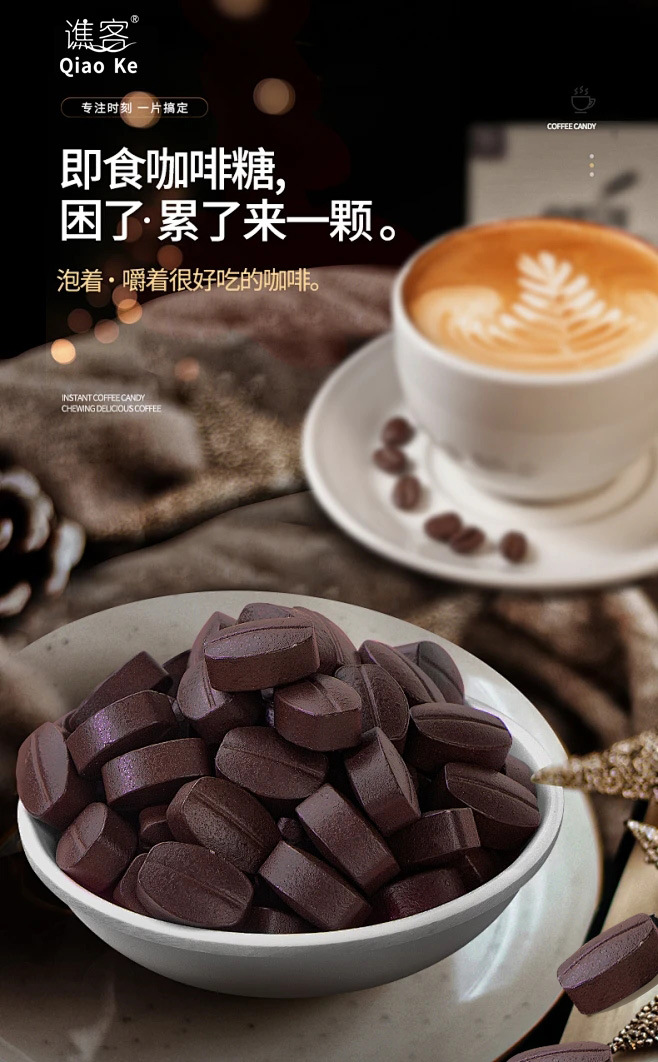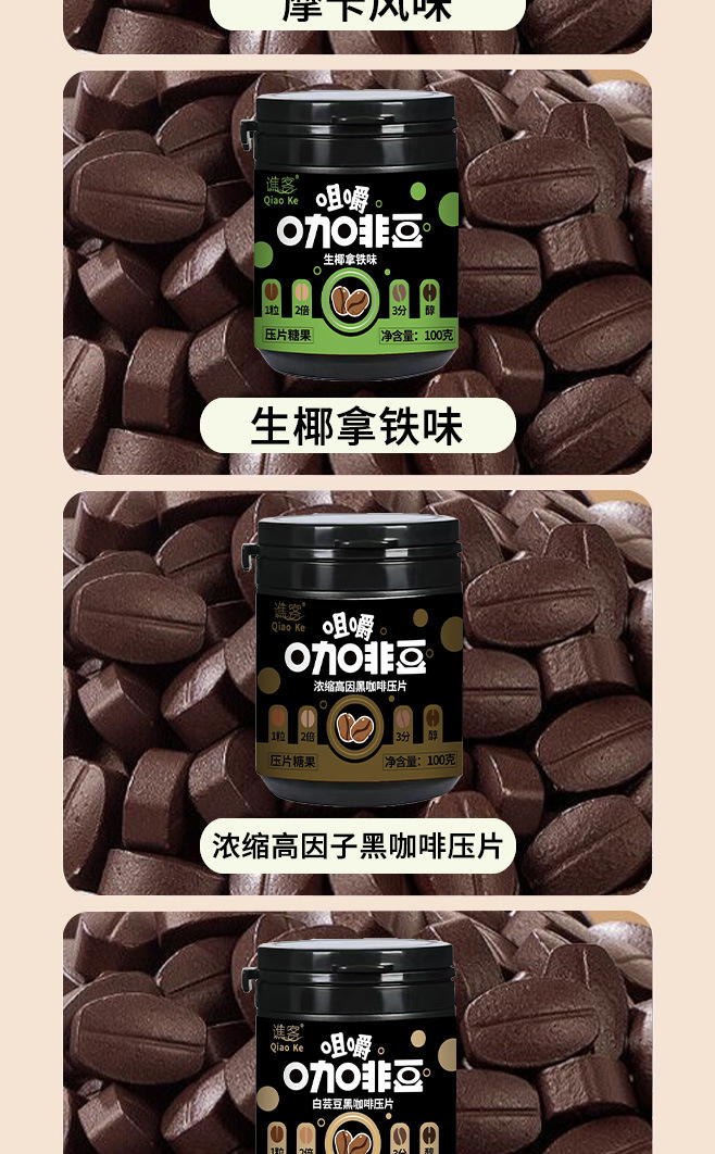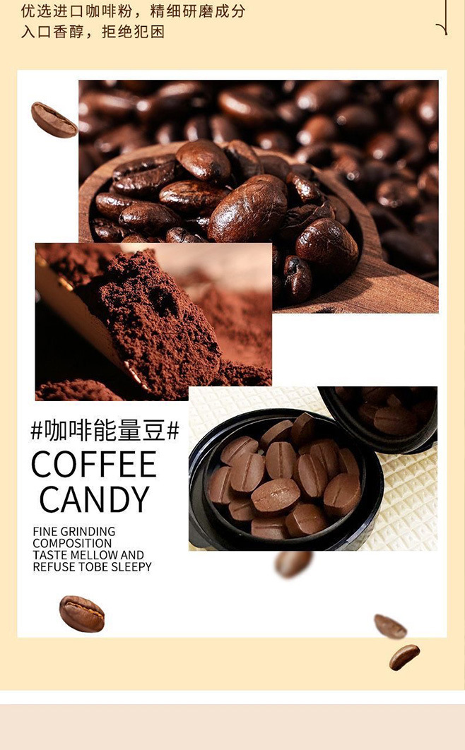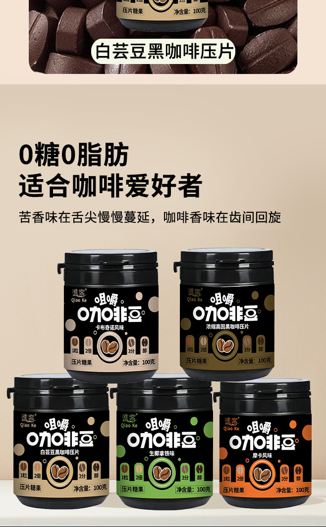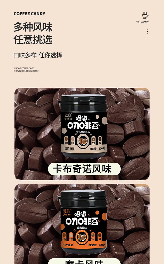 【口嚼更有劲!嚼着吃的咖啡糖豆~】摩卡咖啡压片糖果 犯困提神 卡布奇诺醒脑压片 拿铁糖罐装 网红即食咖啡糖-QQ