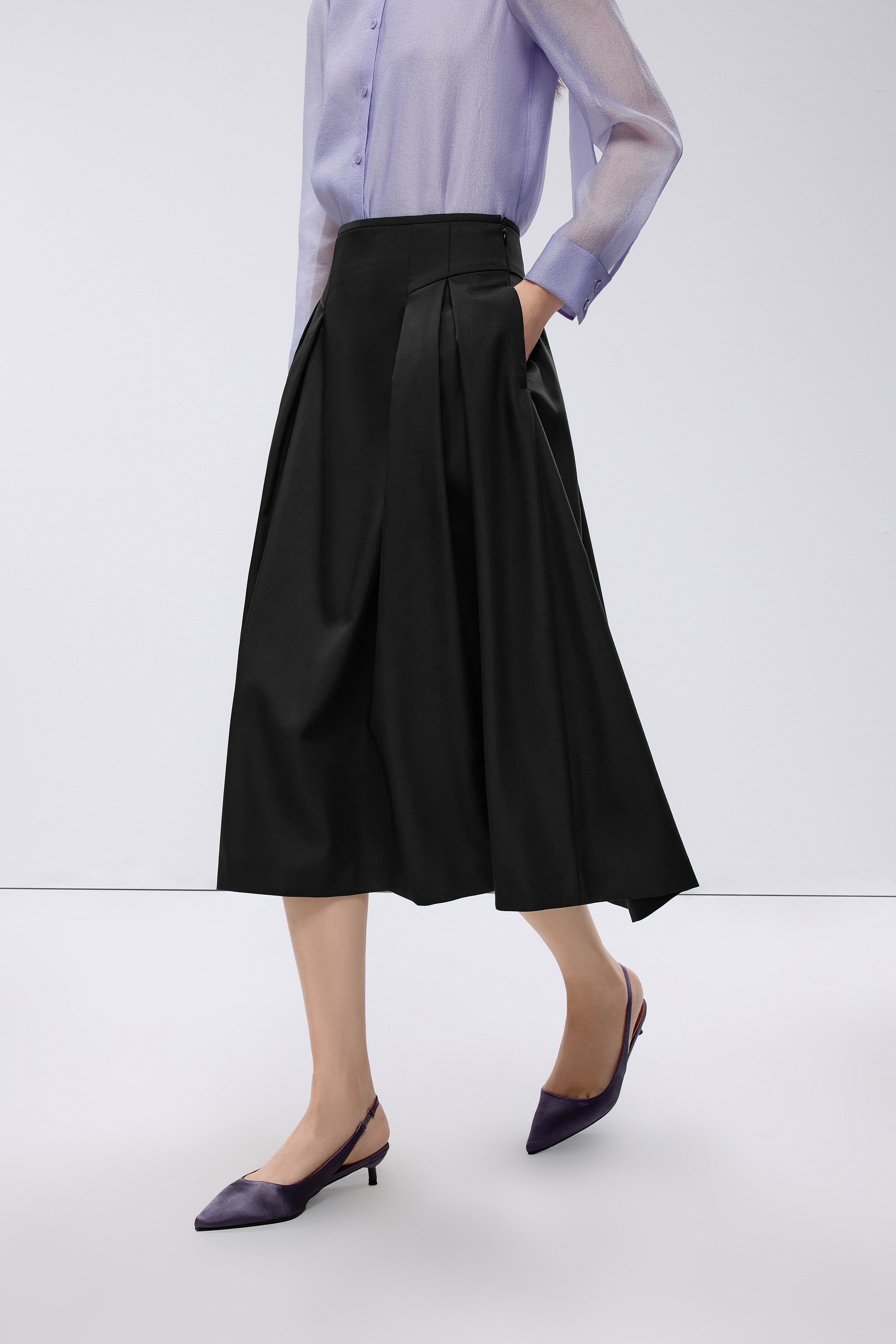 朗姿梭织半裙夜幕黑色LSJK01WSK103B01