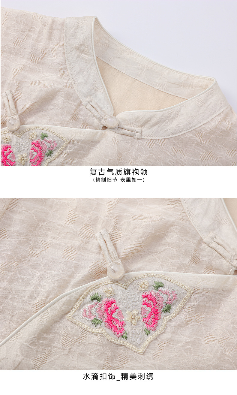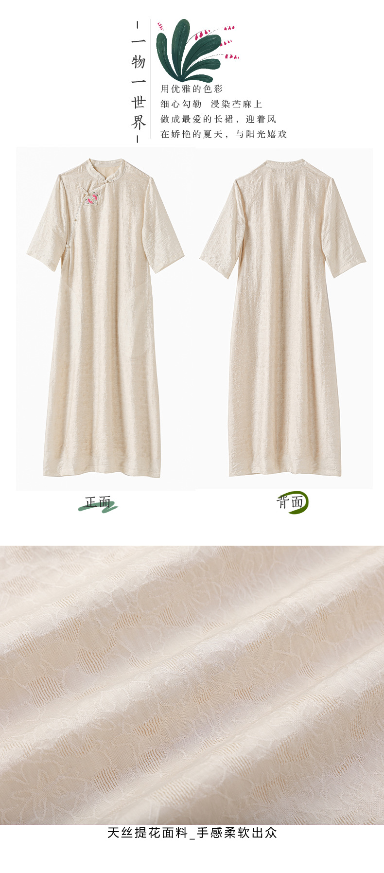 YM S358 2023春夏禅意风改良旗袍古典气质绣花立领开襟天丝提花文艺连衣裙
