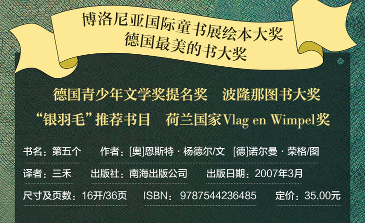 诺尔曼·荣格(Norman Junge),德国雕塑家、绘本画家,曾于2012年获德国青少年文学奖终身成就奖。作品《第五个》获得博洛尼亚儿童书展绘本大奖等多项大奖,多部作品被翻译为英、法、日、韩等12种语言。