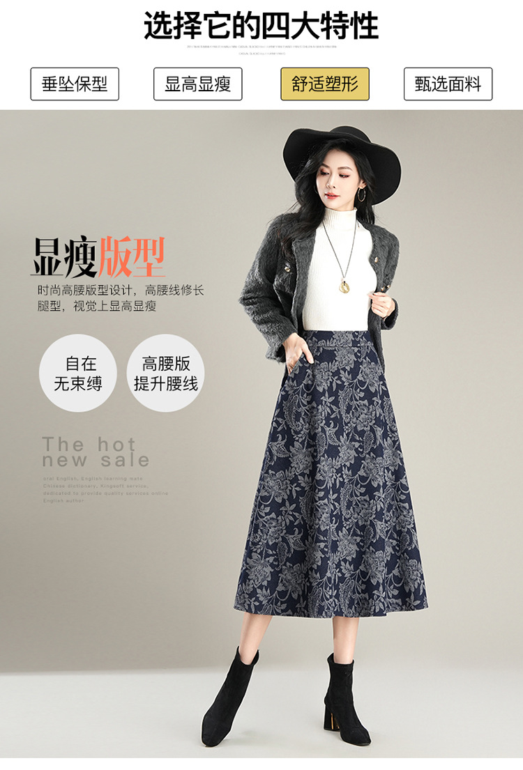 PH-1602印花半身裙女秋冬2025新款高腰显瘦大摆裙遮胯中长款a字裙百褶裙 商品图4