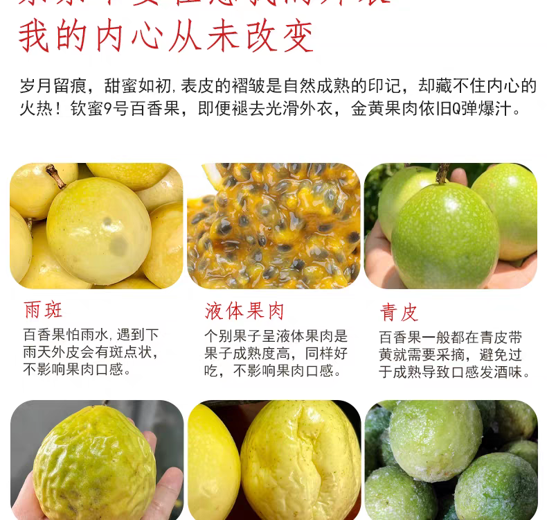 1.百香果属于自然生长,表皮难免会有下雨天的雨斑,不影响食用,介意慎拍