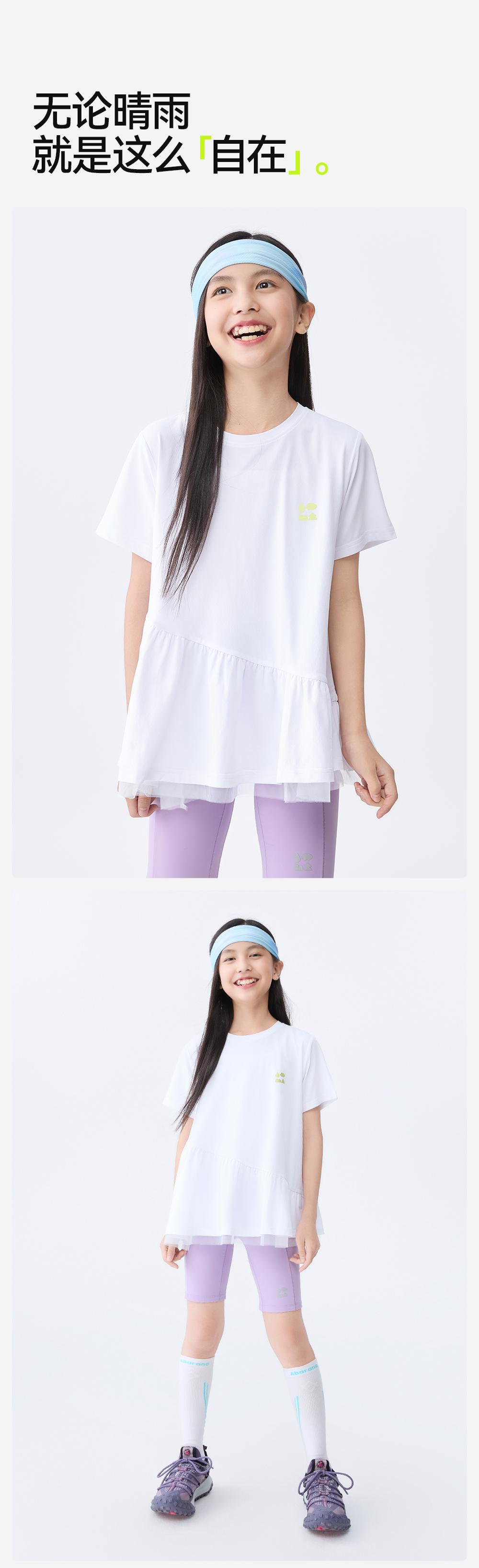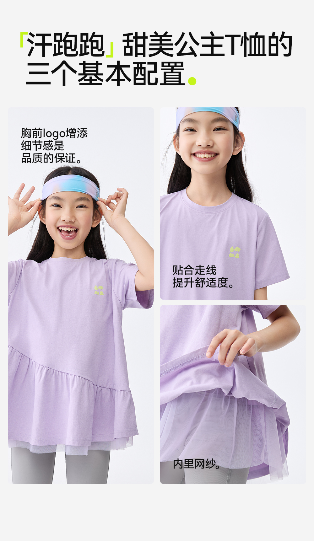 【汗跑跑甜美公主T恤】森林棠25夏款网纱拼接小裙摆女孩专属速干短袖T恤 40322546 商品图3