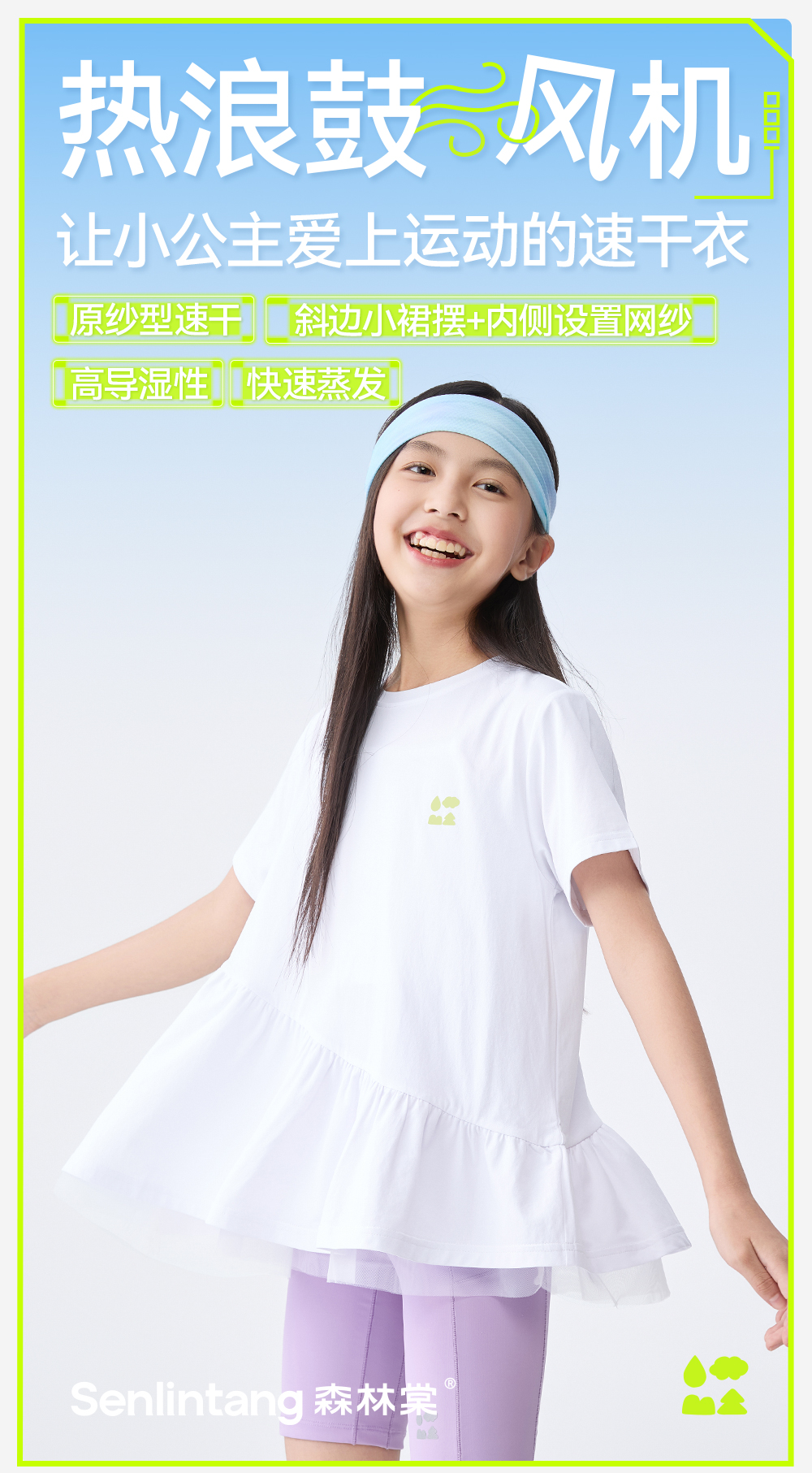 【汗跑跑甜美公主T恤】森林棠25夏款网纱拼接小裙摆女孩专属速干短袖T恤 40322546