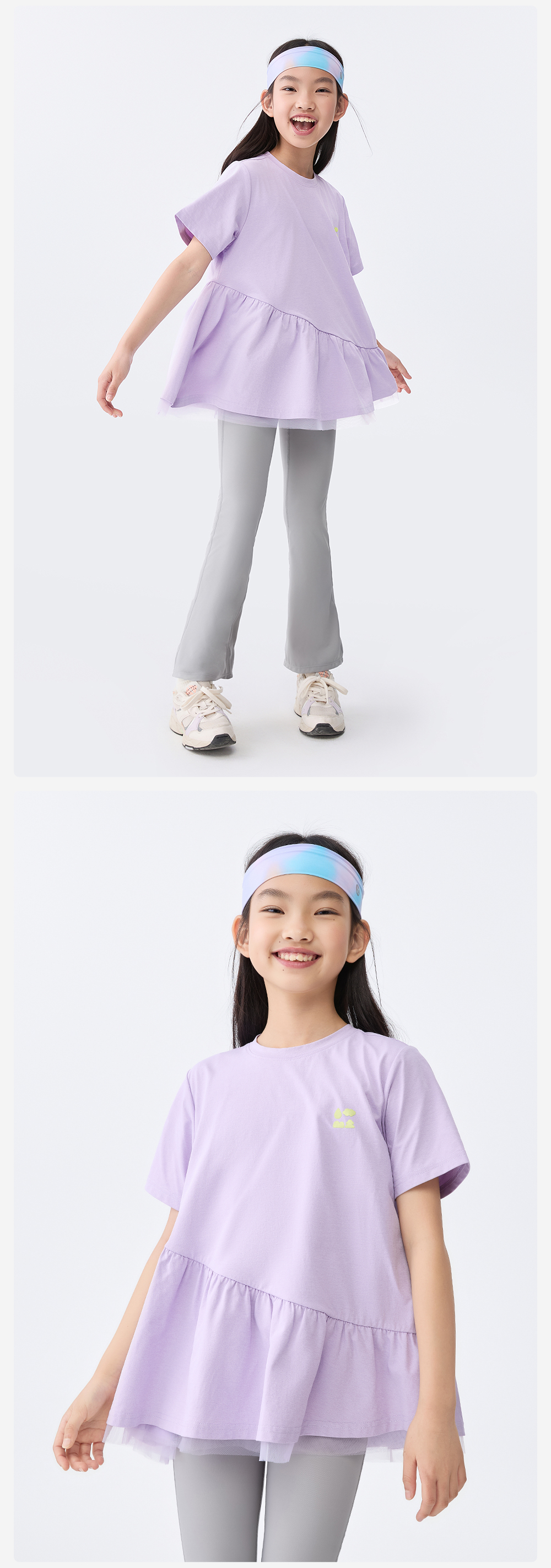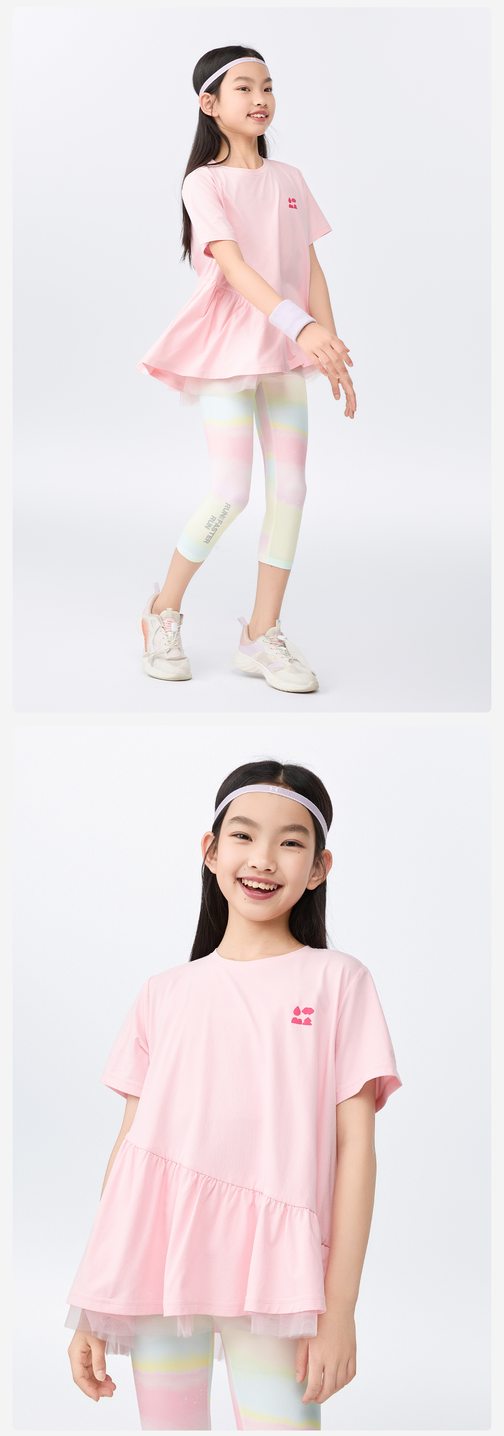 【汗跑跑甜美公主T恤】森林棠25夏款网纱拼接小裙摆女孩专属速干短袖T恤 40322546 商品图4