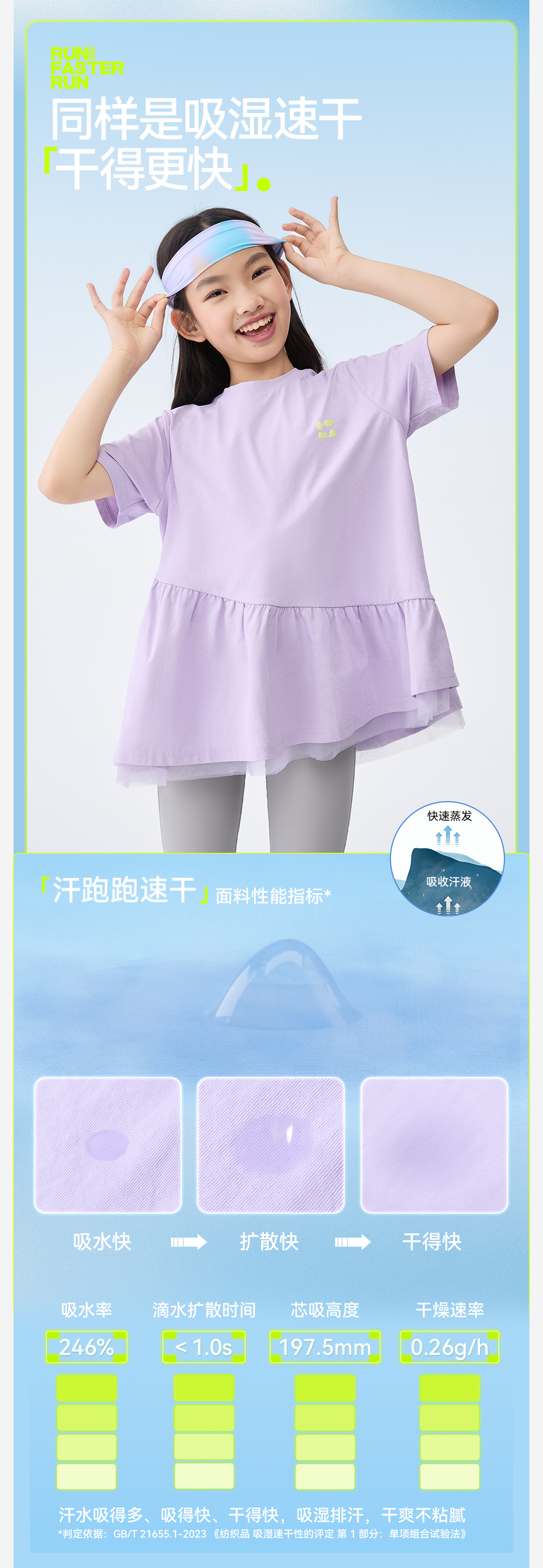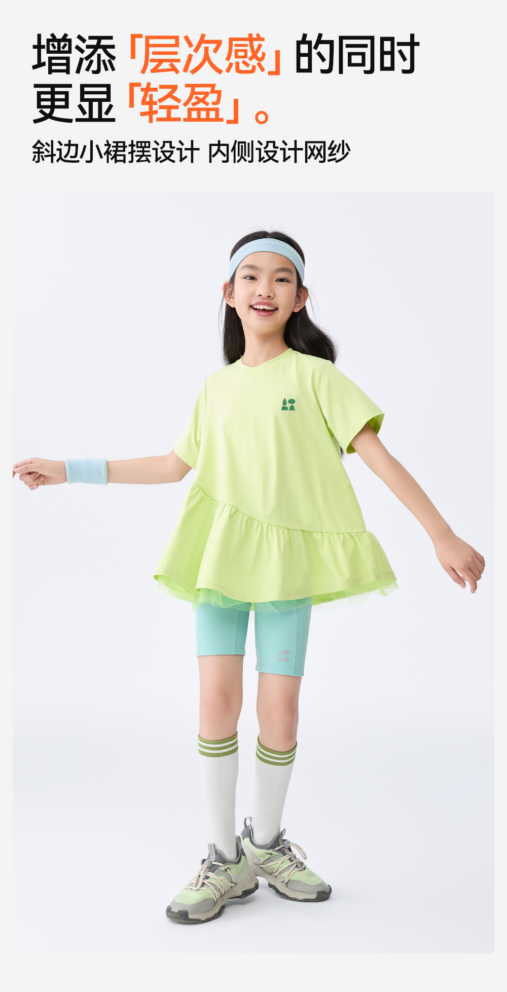【汗跑跑甜美公主T恤】森林棠25夏款网纱拼接小裙摆女孩专属速干短袖T恤 40322546 商品图0