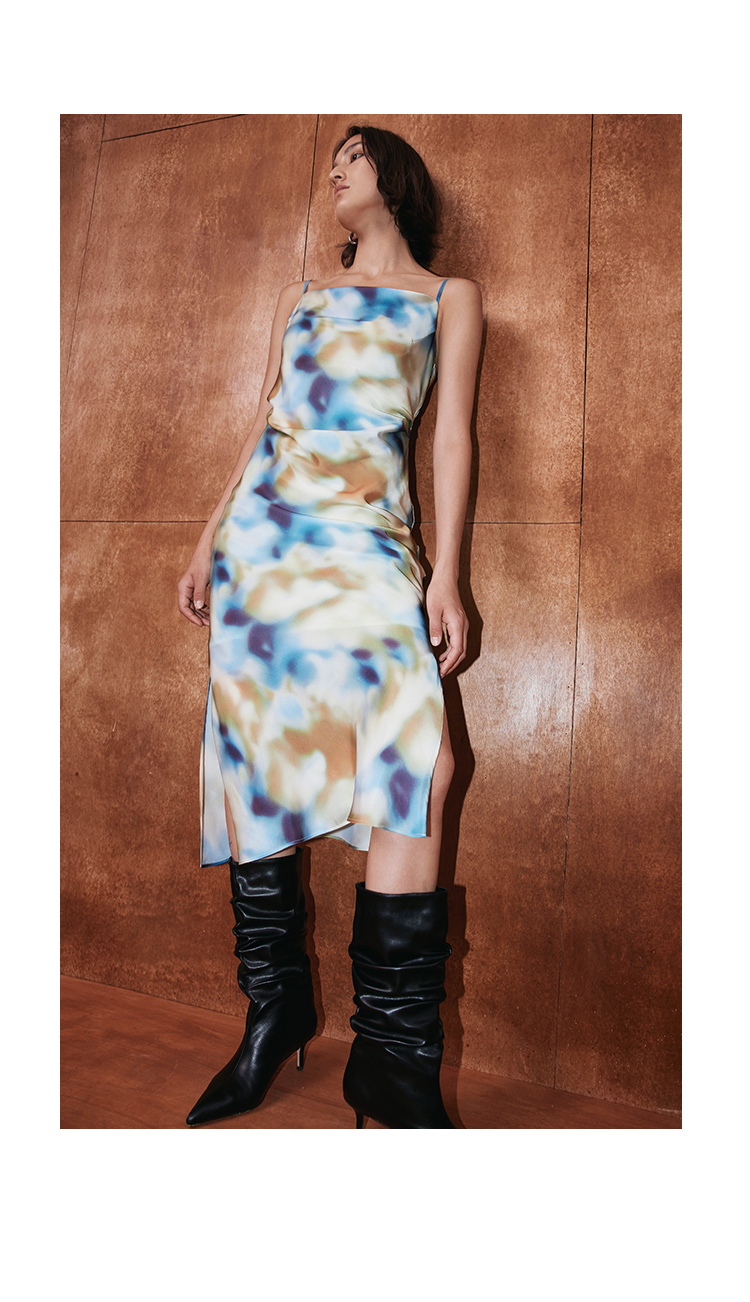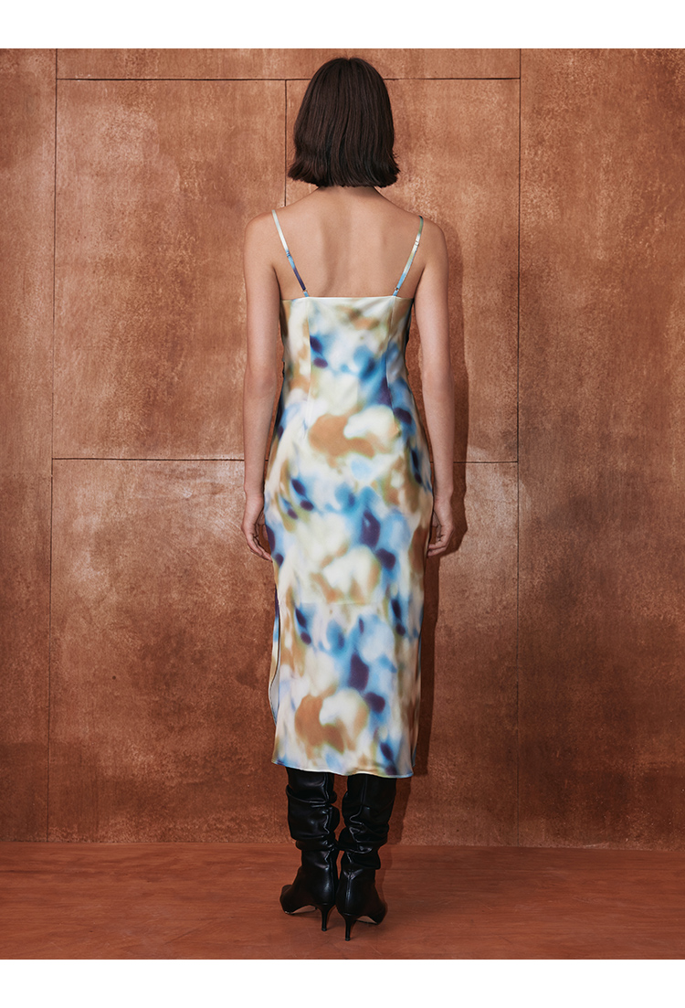 EITIE爱特爱女装夏季新款蝴蝶结系带开衩时尚轻盈连衣裙57074103