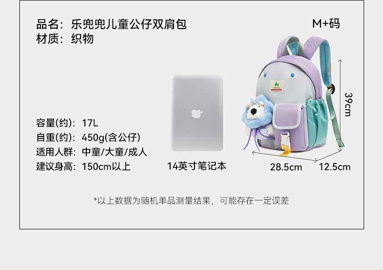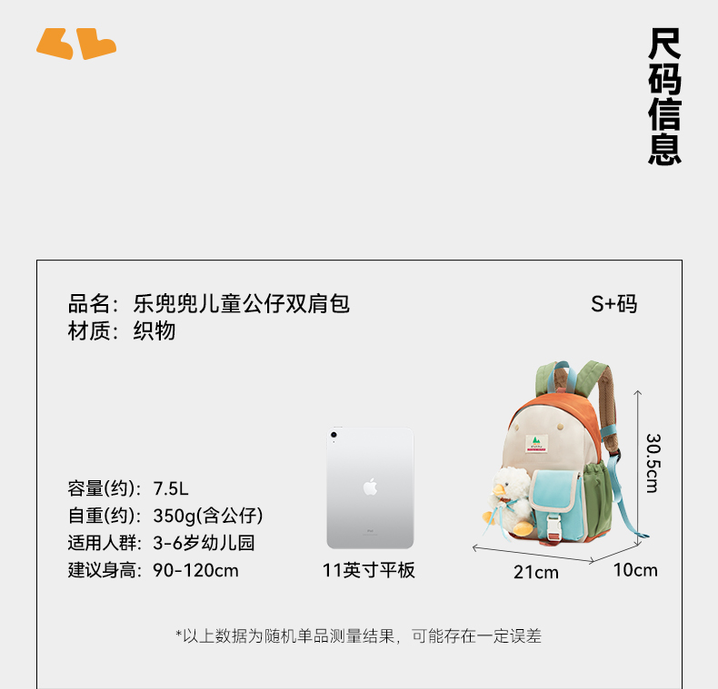 【新品包包】中国shukiku乐兜兜儿童公仔双肩包-珊瑚桃子S+书包 3-6岁幼儿园