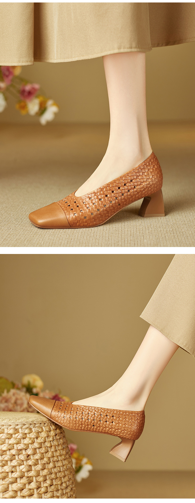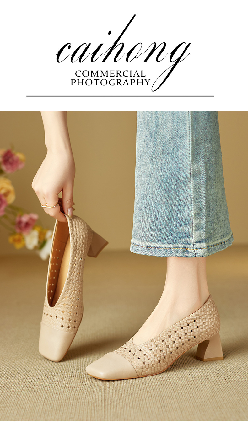 雀说 预售全皮方头中粗跟镂空透气洞洞女鞋3121 商品图4