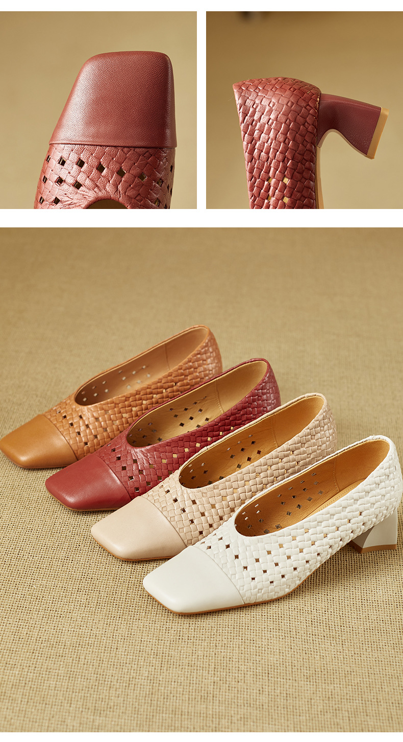 雀说 预售全皮方头中粗跟镂空透气洞洞女鞋3121 商品图0