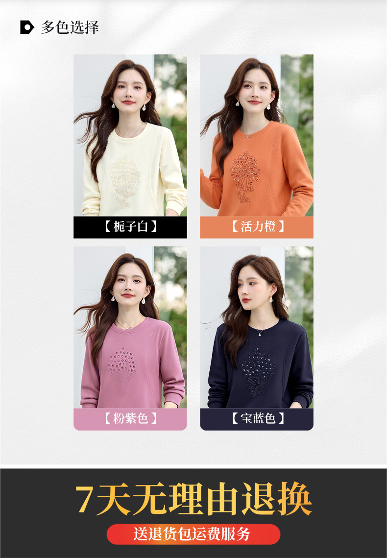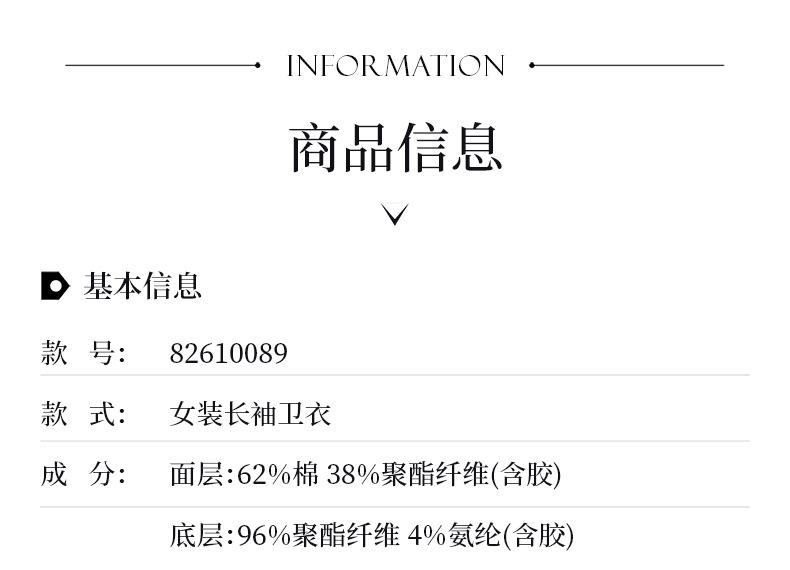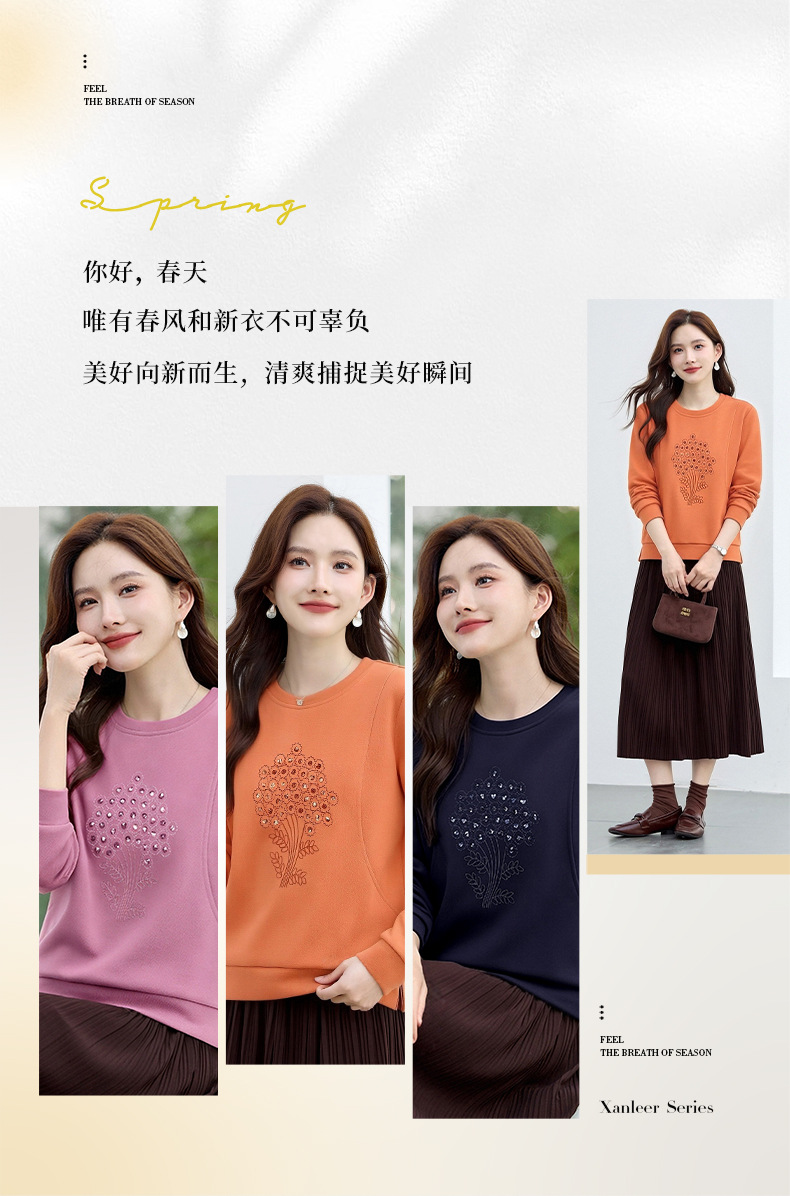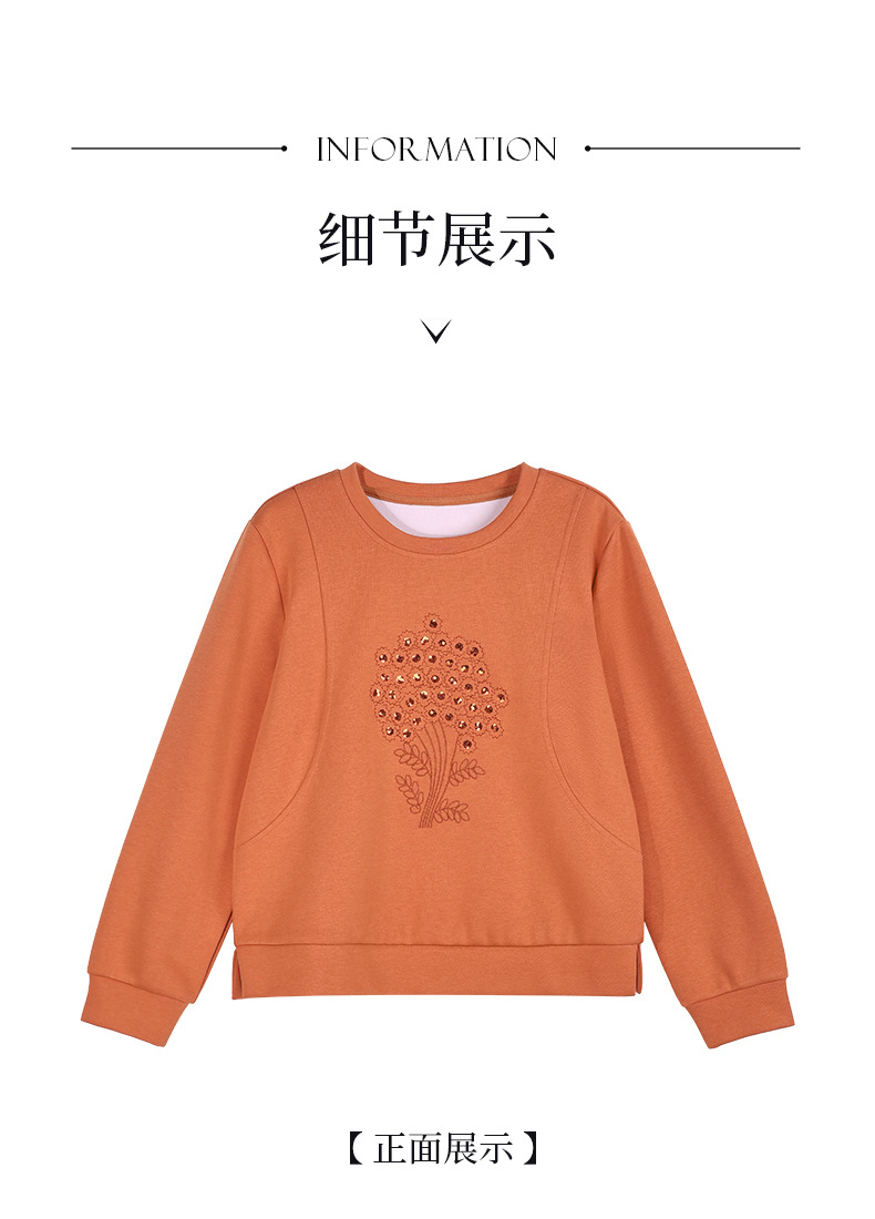 百媚生 棉质套头圆领正肩女士卫衣T恤XS82610089