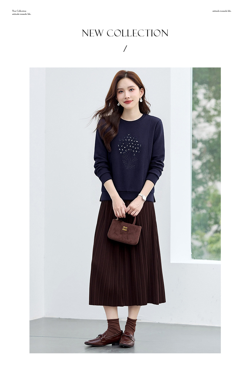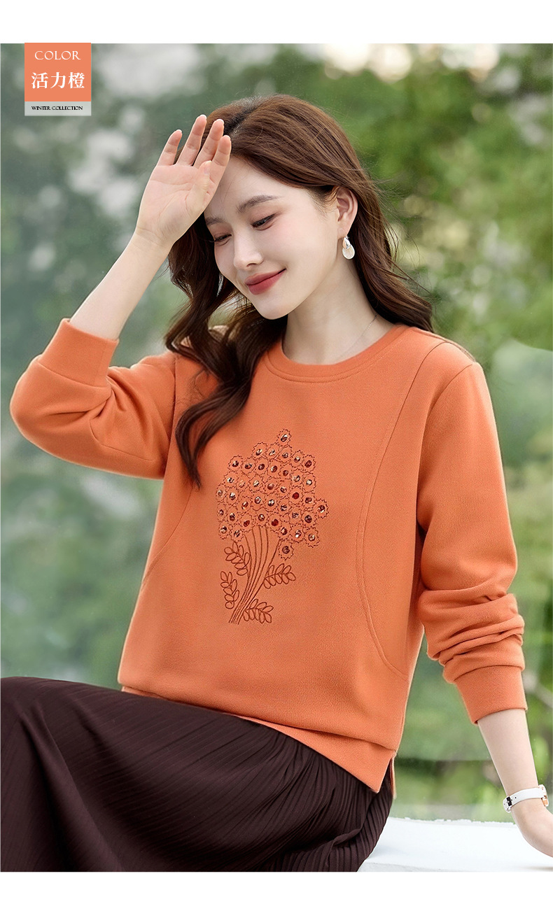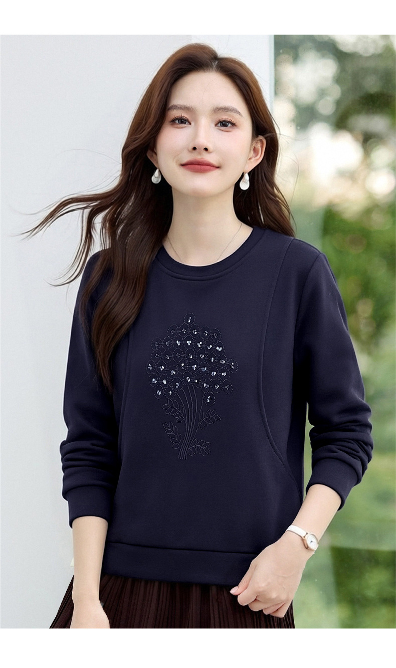 百媚生 棉质套头圆领正肩女士卫衣T恤XS82610089