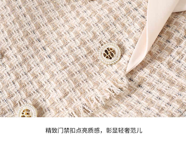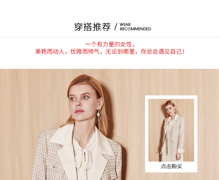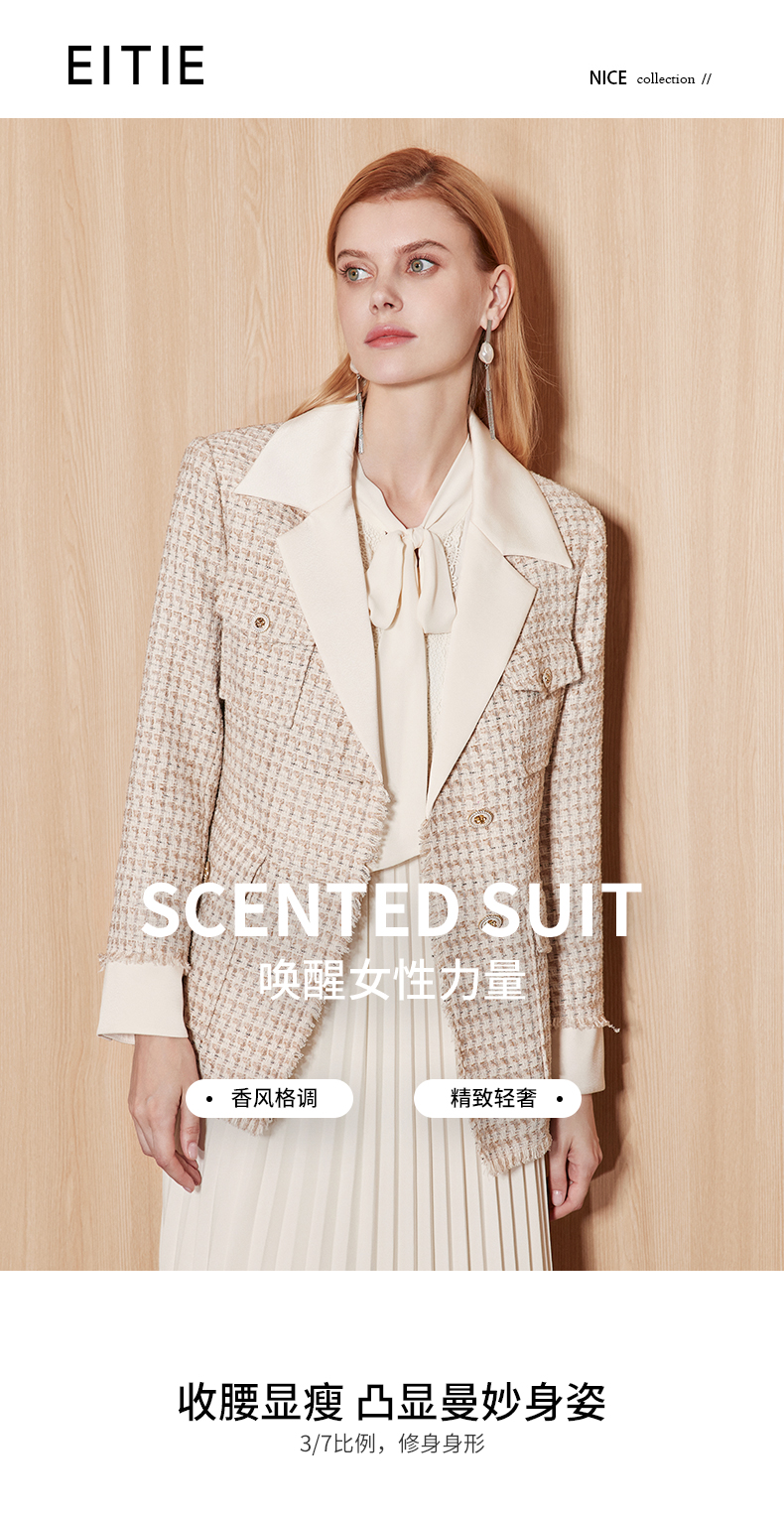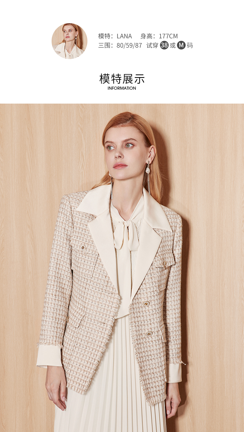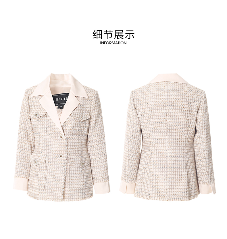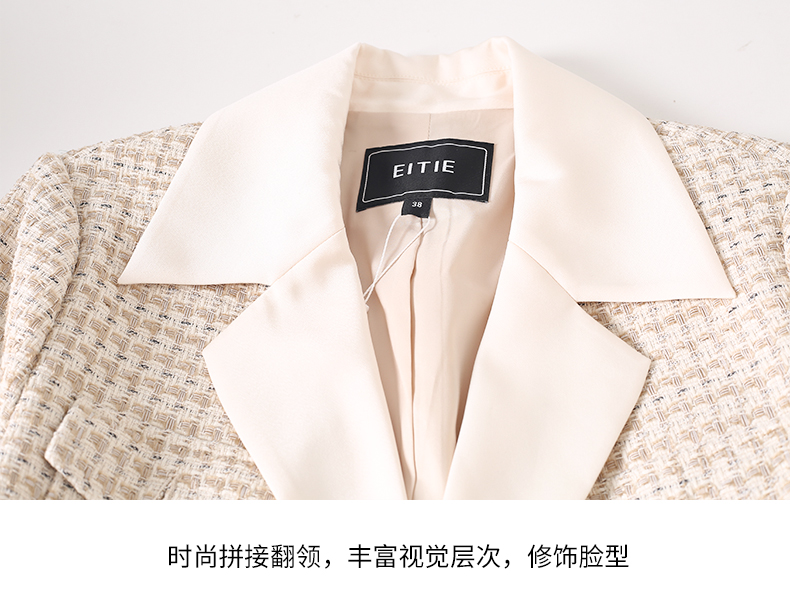 EITIE爱特爱冬季新款粗花呢气质翻领修身显瘦时尚格子外套7203901