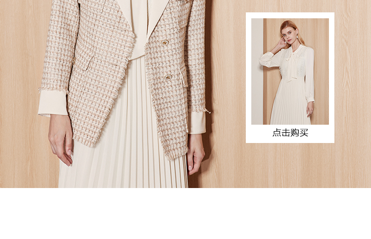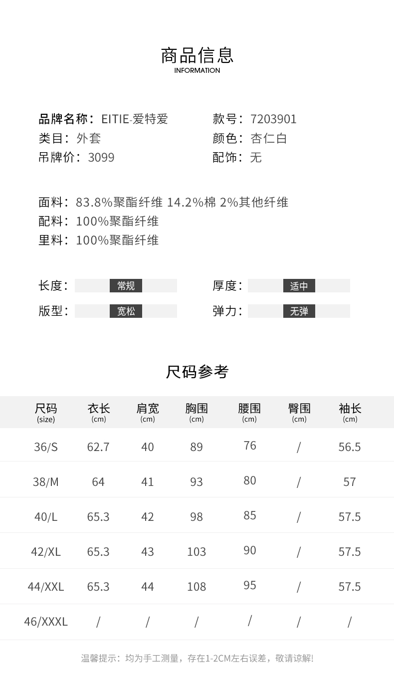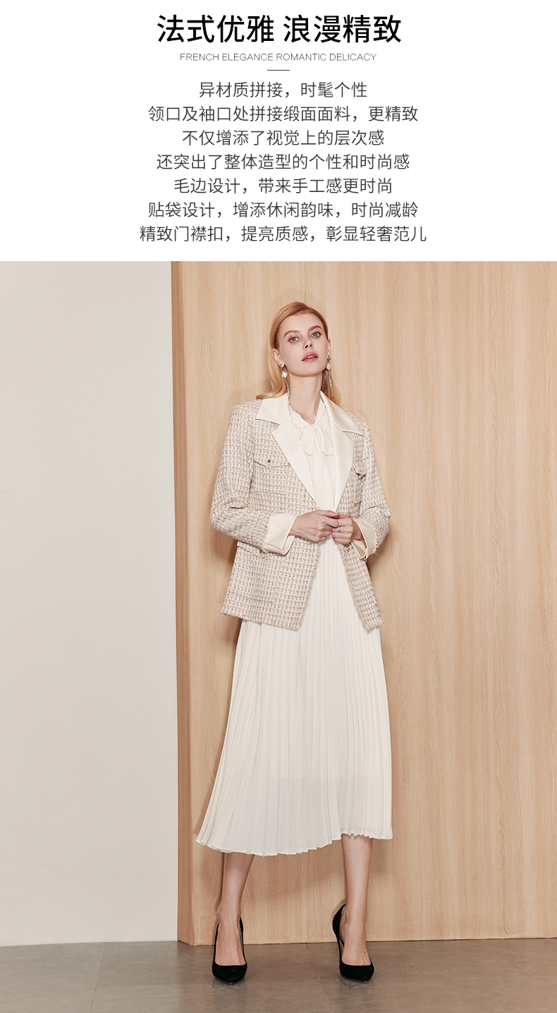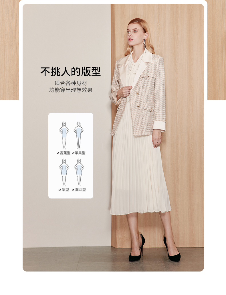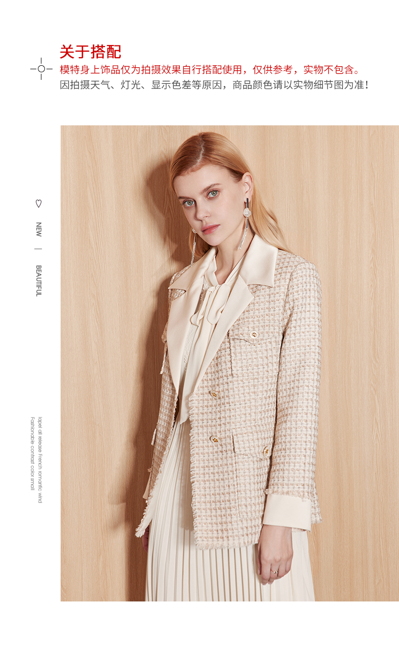 EITIE爱特爱冬季新款粗花呢气质翻领修身显瘦时尚格子外套7203901