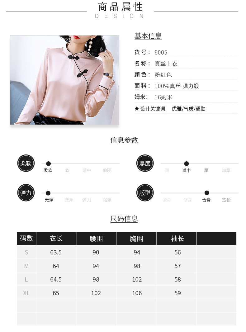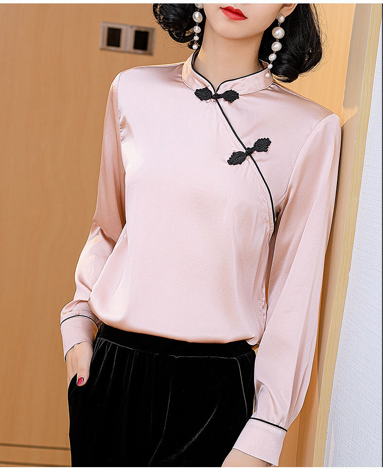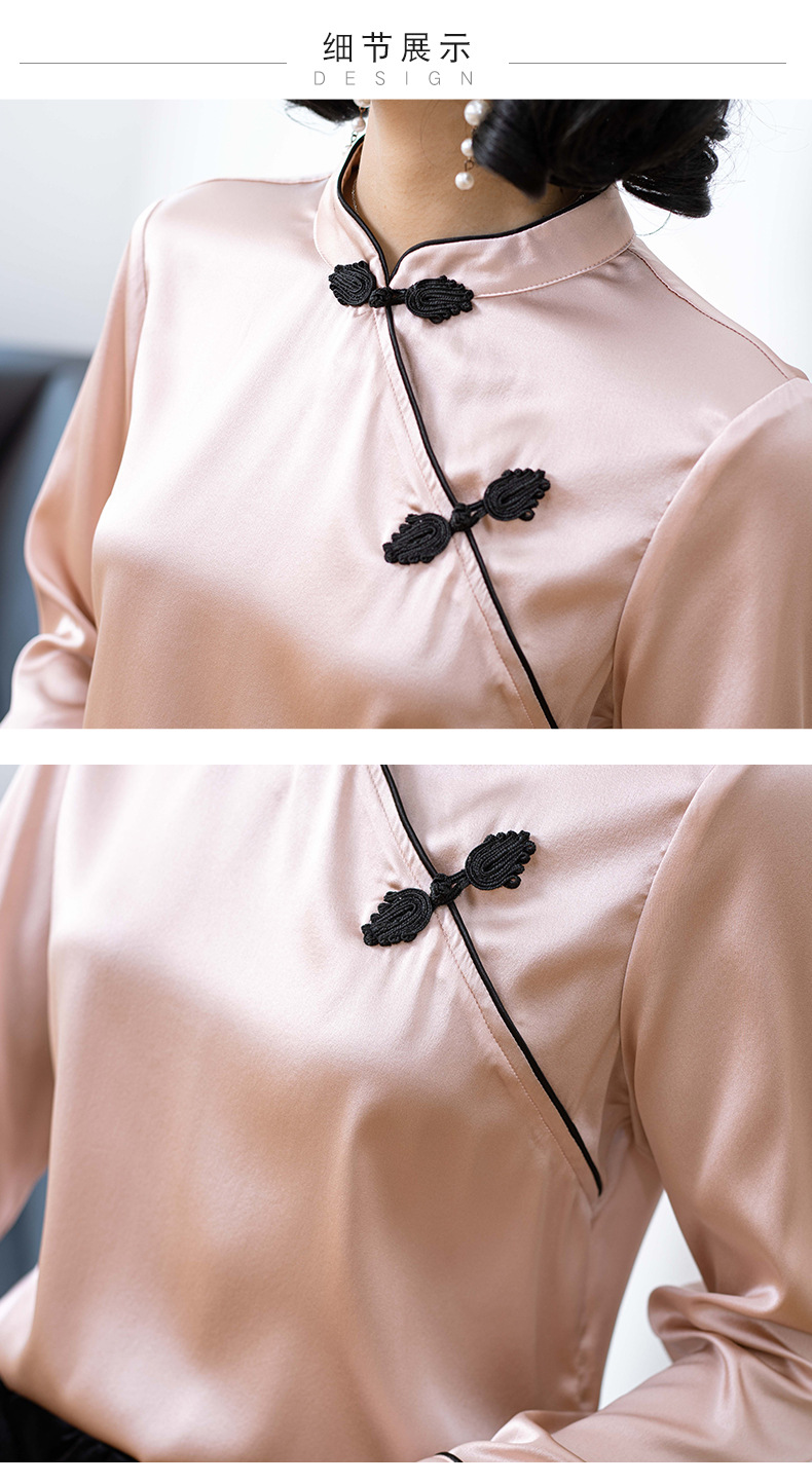 NYT-6005新款时尚真丝弹力缎衬衣时尚盘扣桑蚕丝衬衫