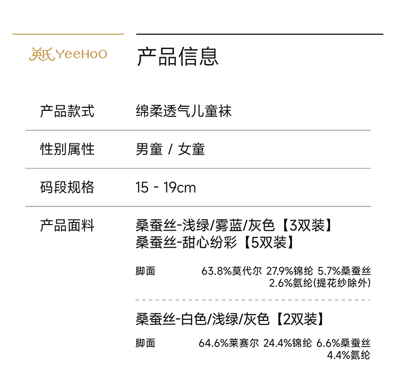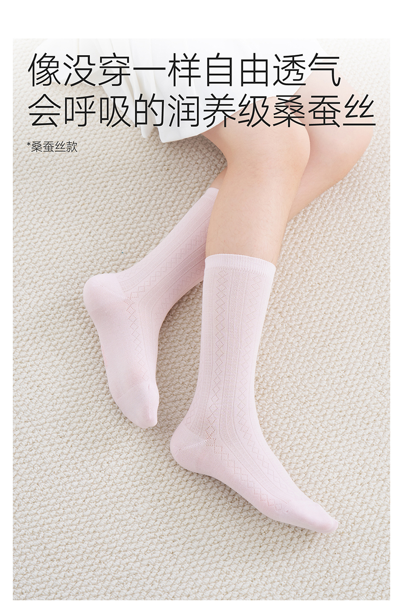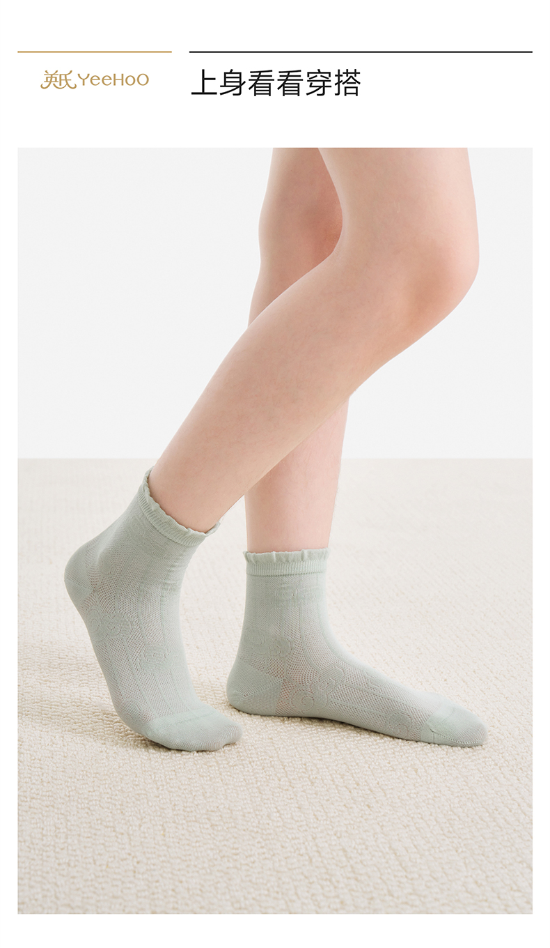 【桑蚕丝/莱赛尔】英氏儿童袜子男童春夏莫代尔中袜女童透气中筒袜百搭