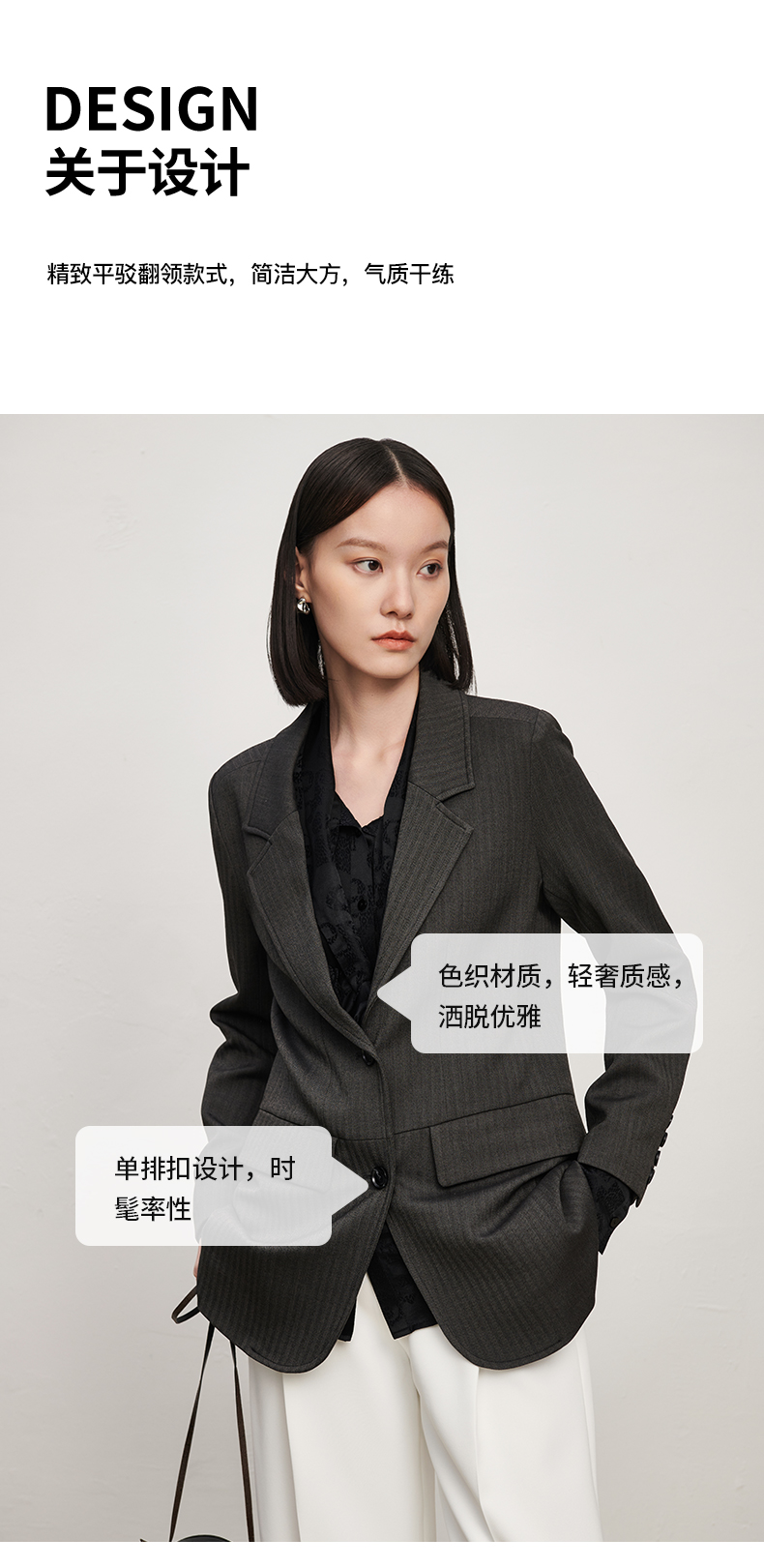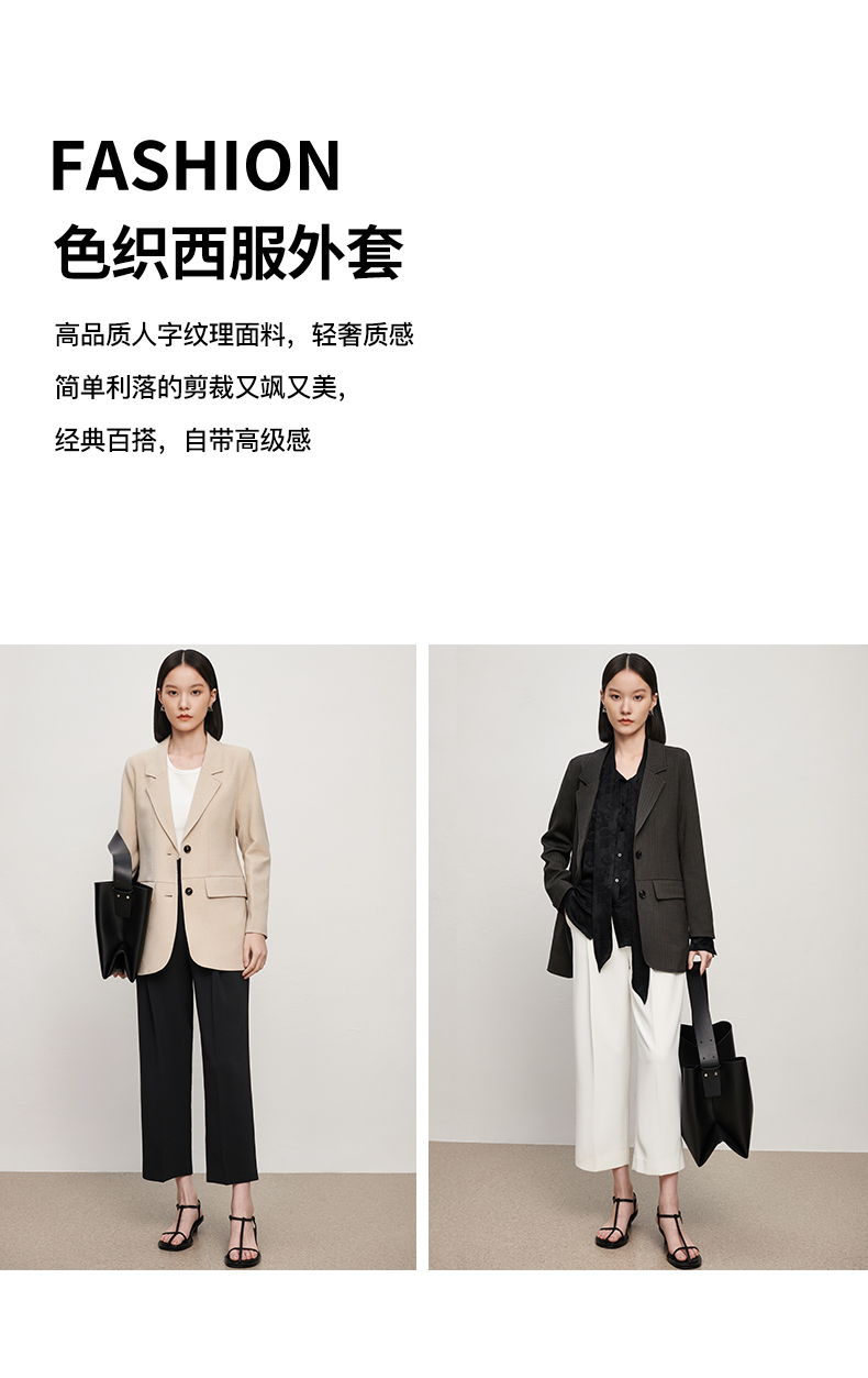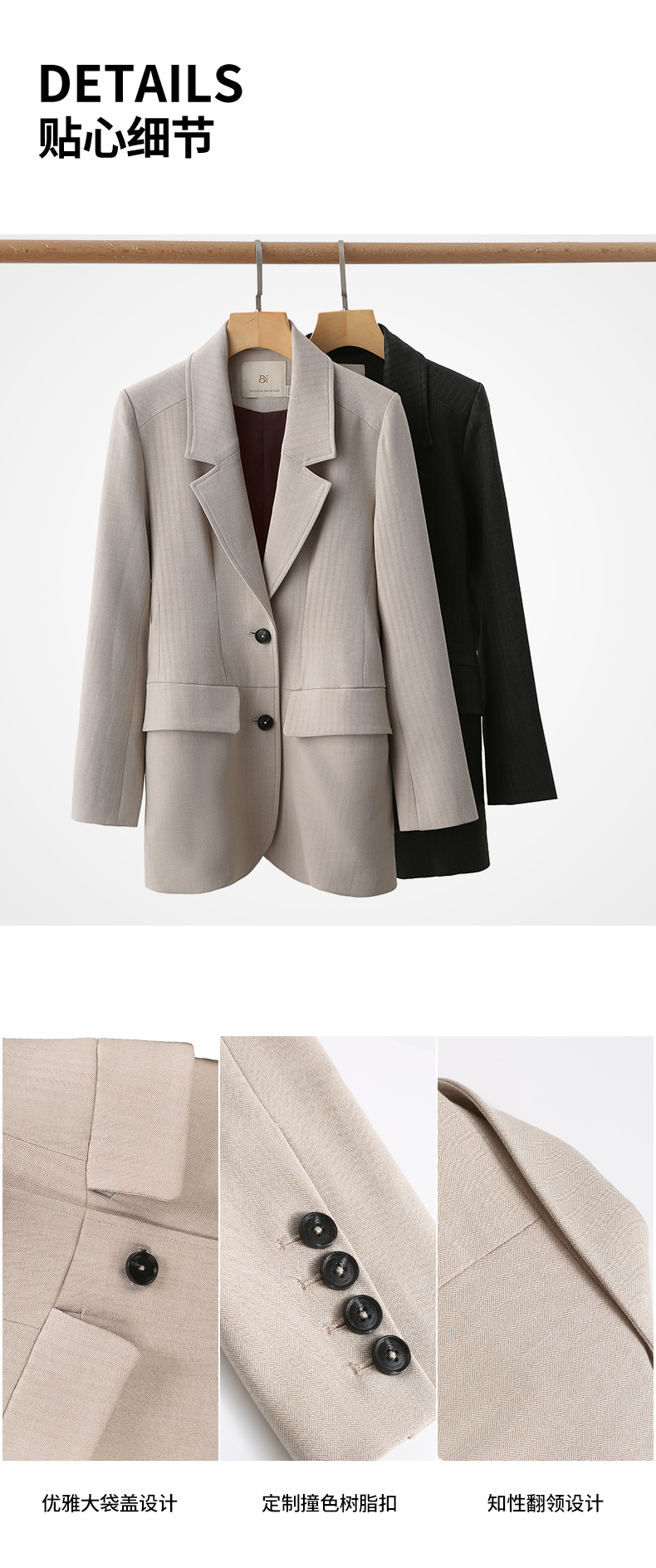 IN AND ON2023春季新款人字纹立裁收腰西装黑色通勤外套