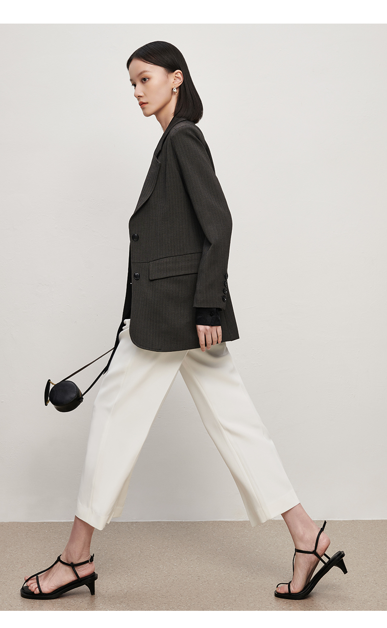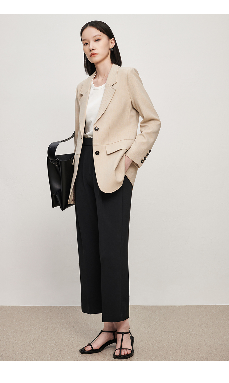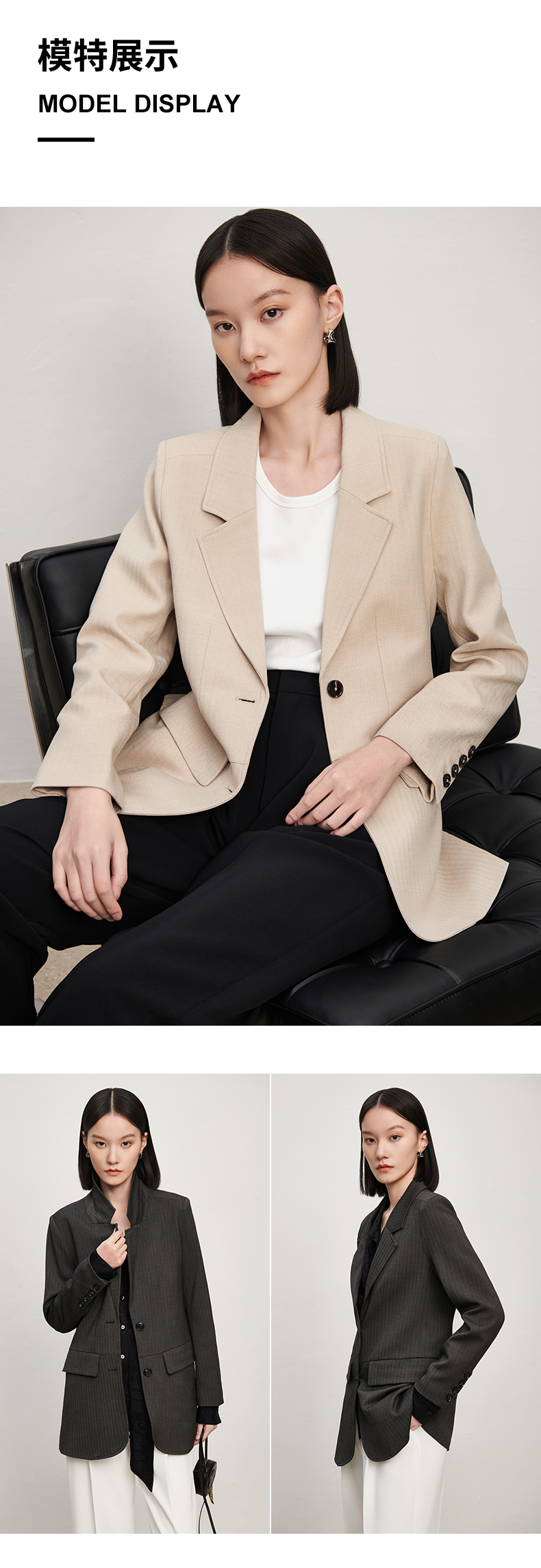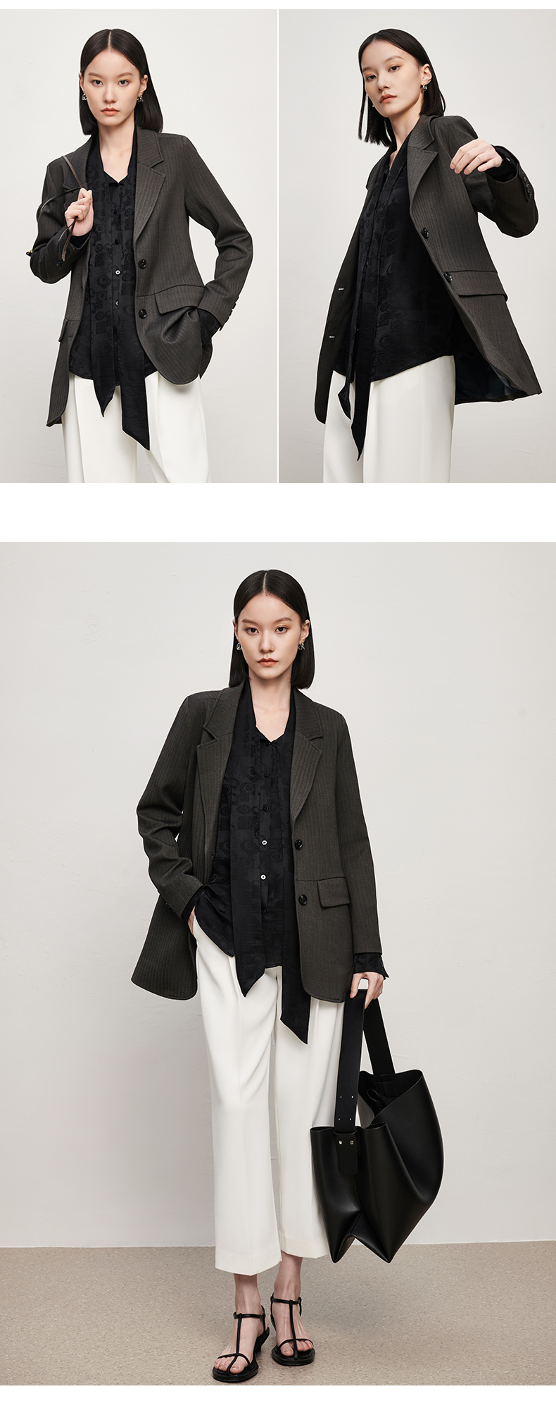 IN AND ON2023春季新款人字纹立裁收腰西装黑色通勤外套
