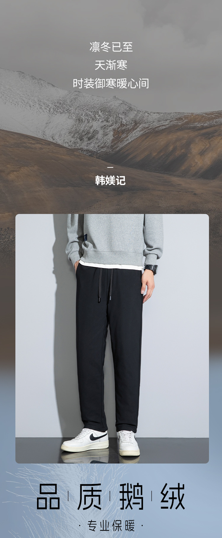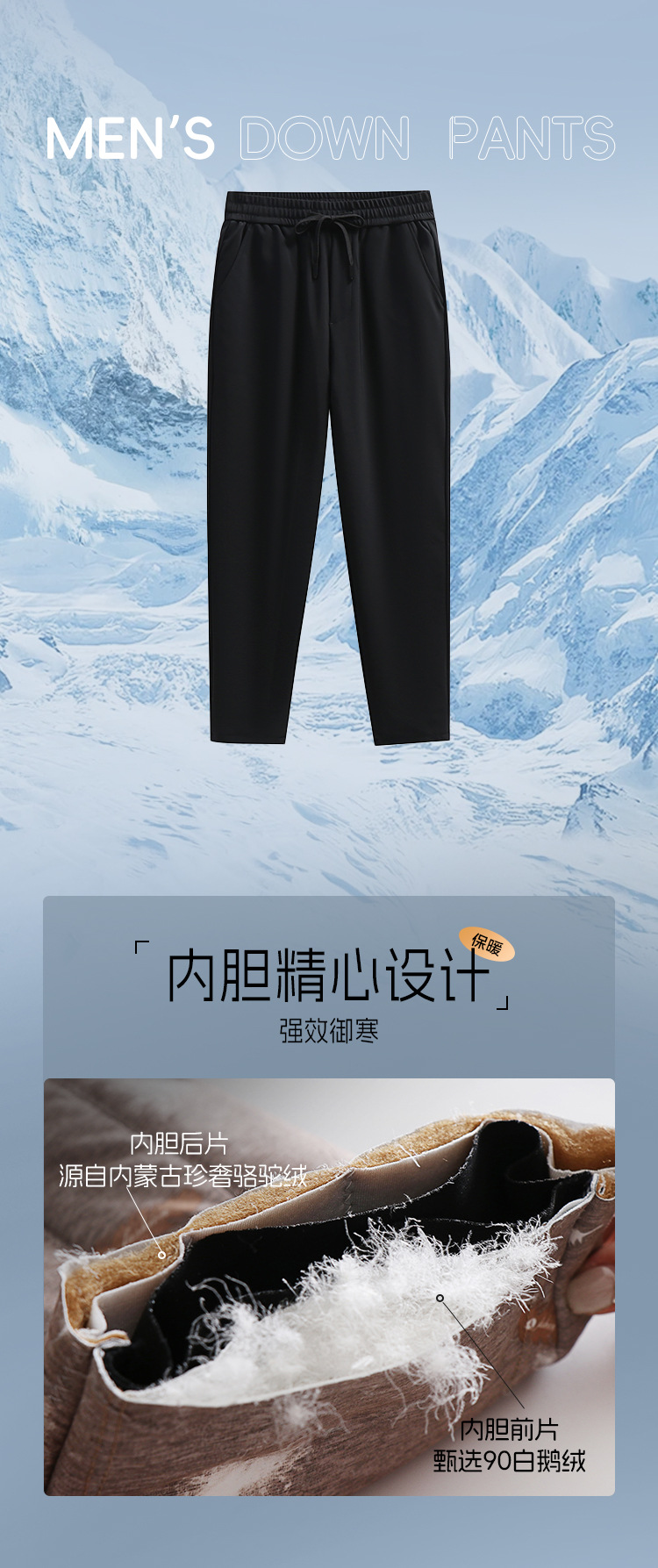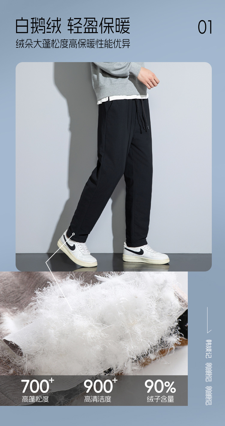 红览 三防男士白鹅绒裤冬季大码运动裤防寒防水保暖外穿休闲羽绒裤男