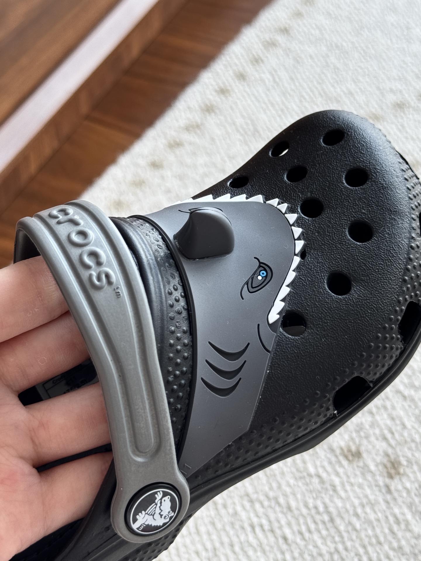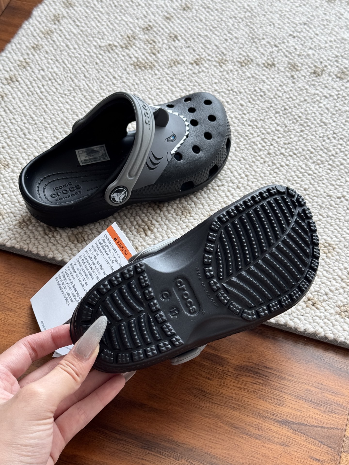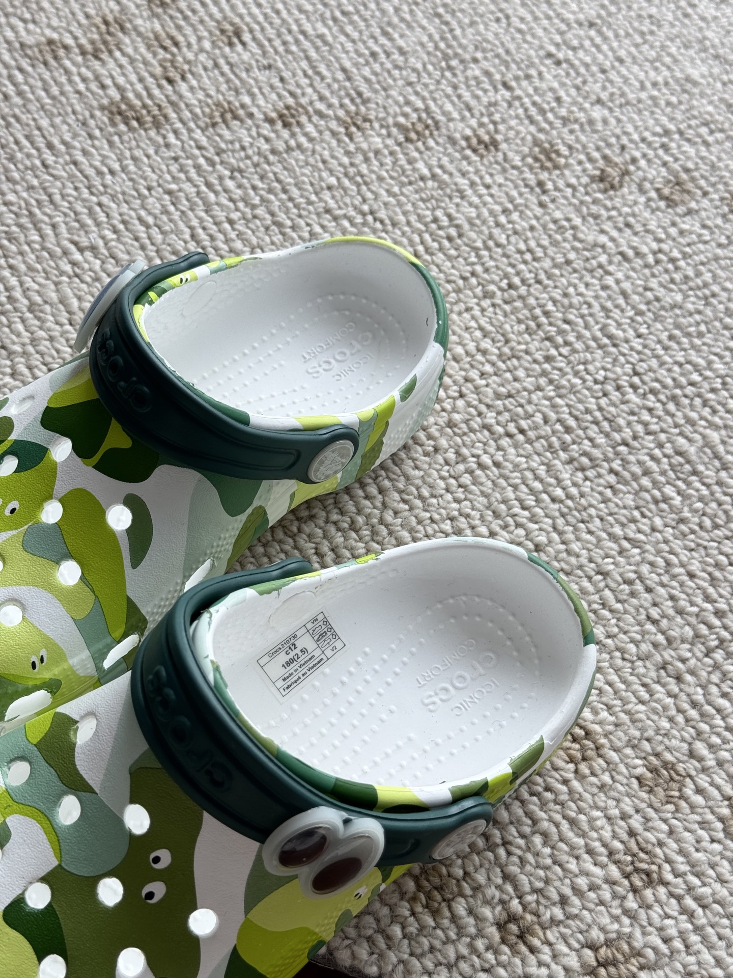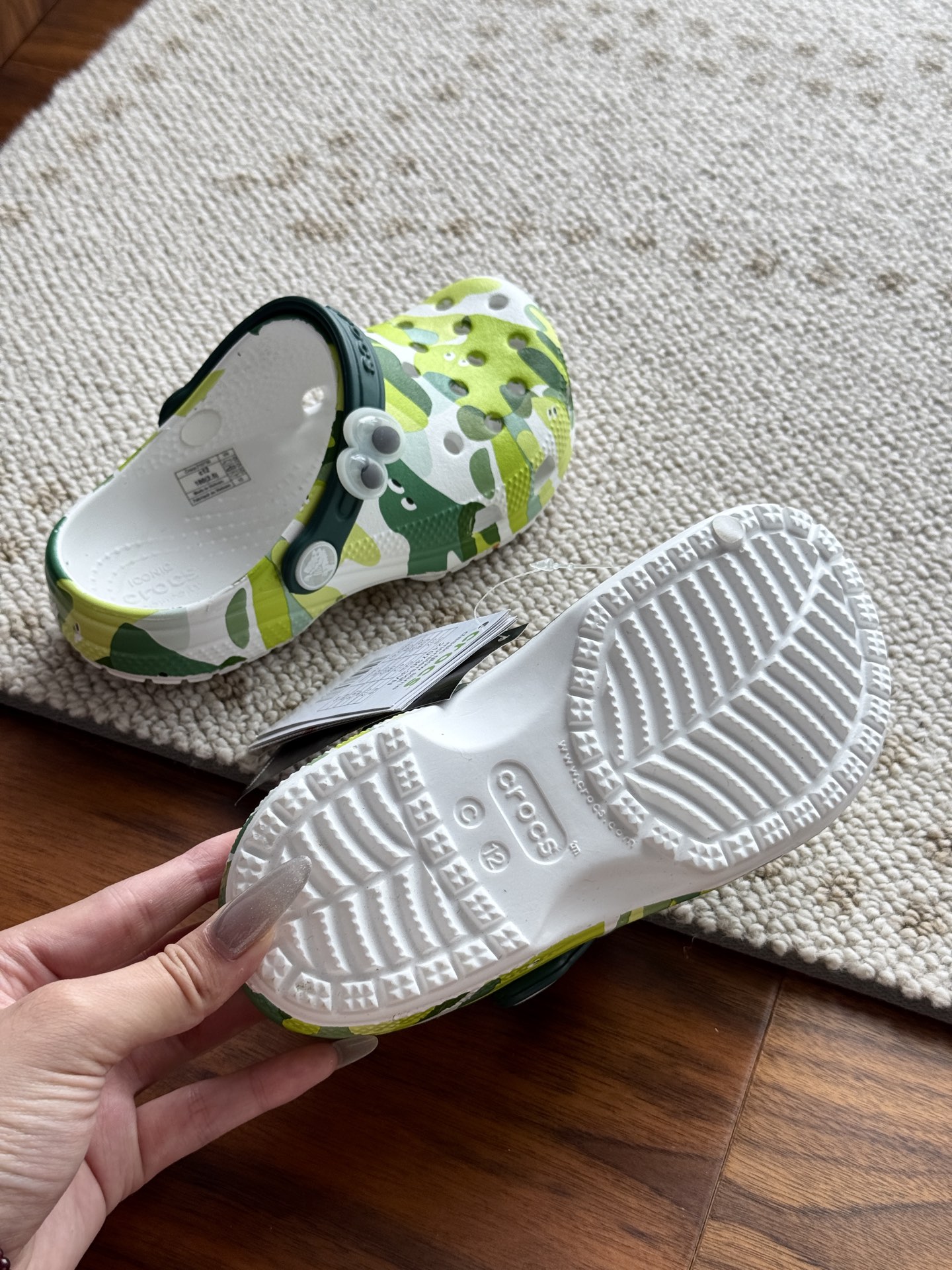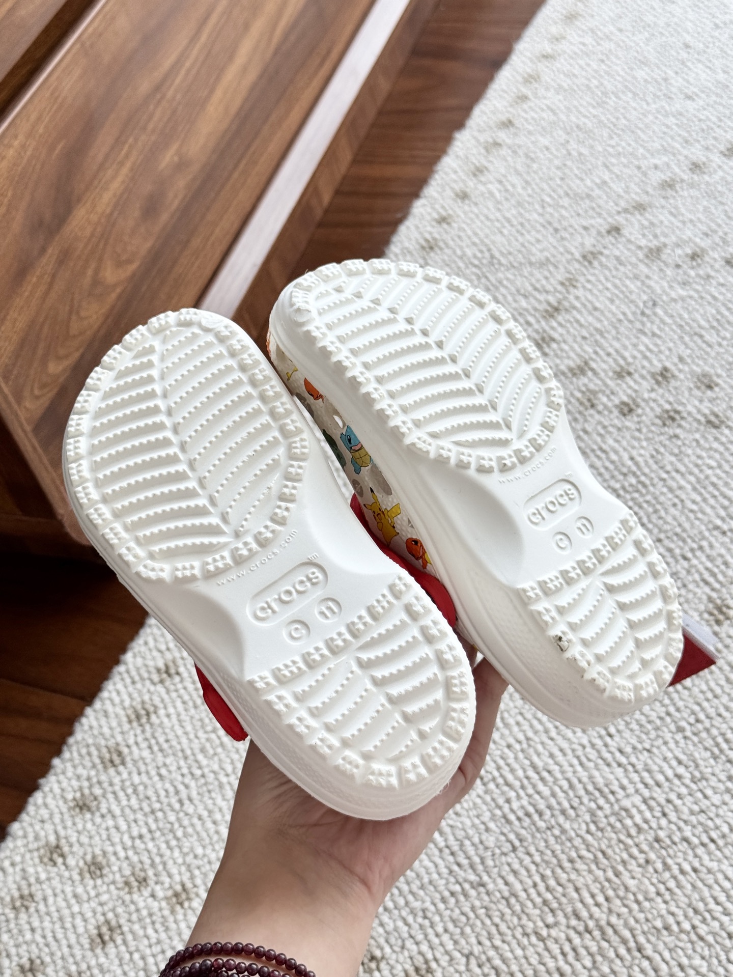 给宝贝的东西, 都是用的环保Croslite材料,封闭式细胞树脂, 能够在体温作用下自动变形以适应脚部形状。 提供轻质缓冲和舒适性,易于清洁,抓地力强, 不易打滑符合人体工学,鞋垫软弹有支撑注意看鞋内纹理,好不好自己去感受每一个都值得你细品 真材实料!很柔软鞋身全是通风洞洞,夏天脚丫秒散热,搭配可调后跟带,当凉拖或踩跟穿都行,一鞋两穿超灵活!Croslite™特殊的封闭式细胞树脂材质,能够在体温作用下自动变形以适应脚部形状,这也是洞洞鞋最好穿的细节!