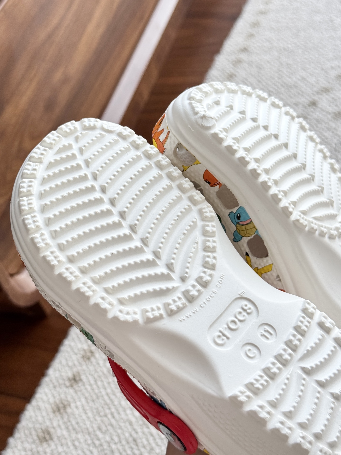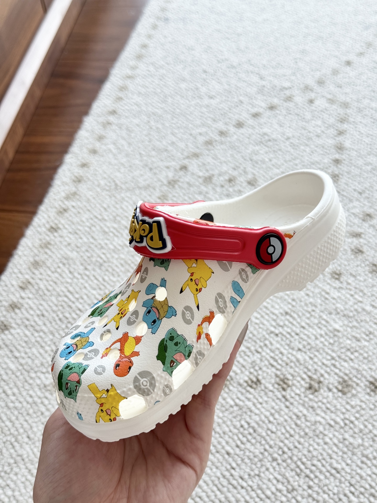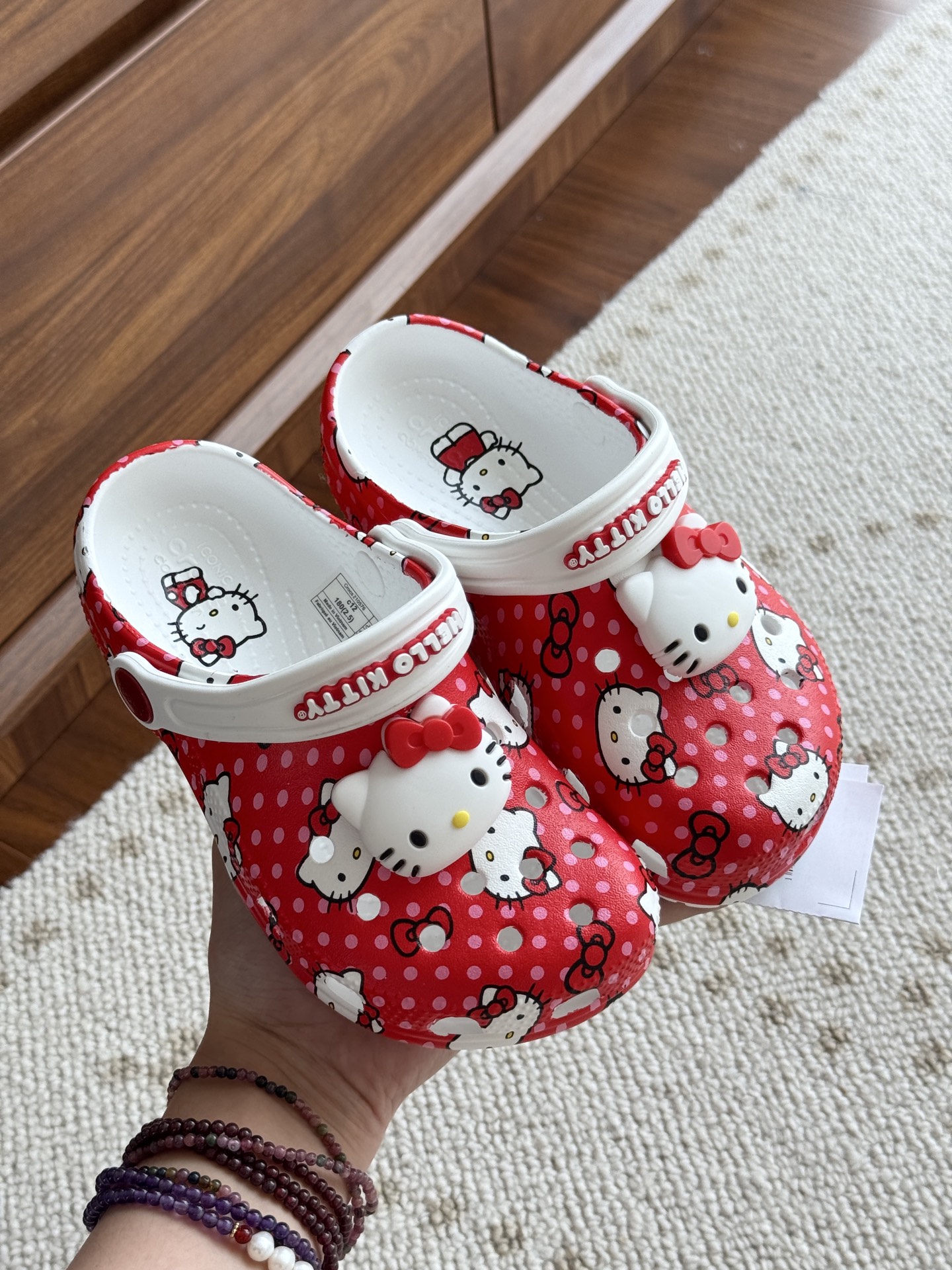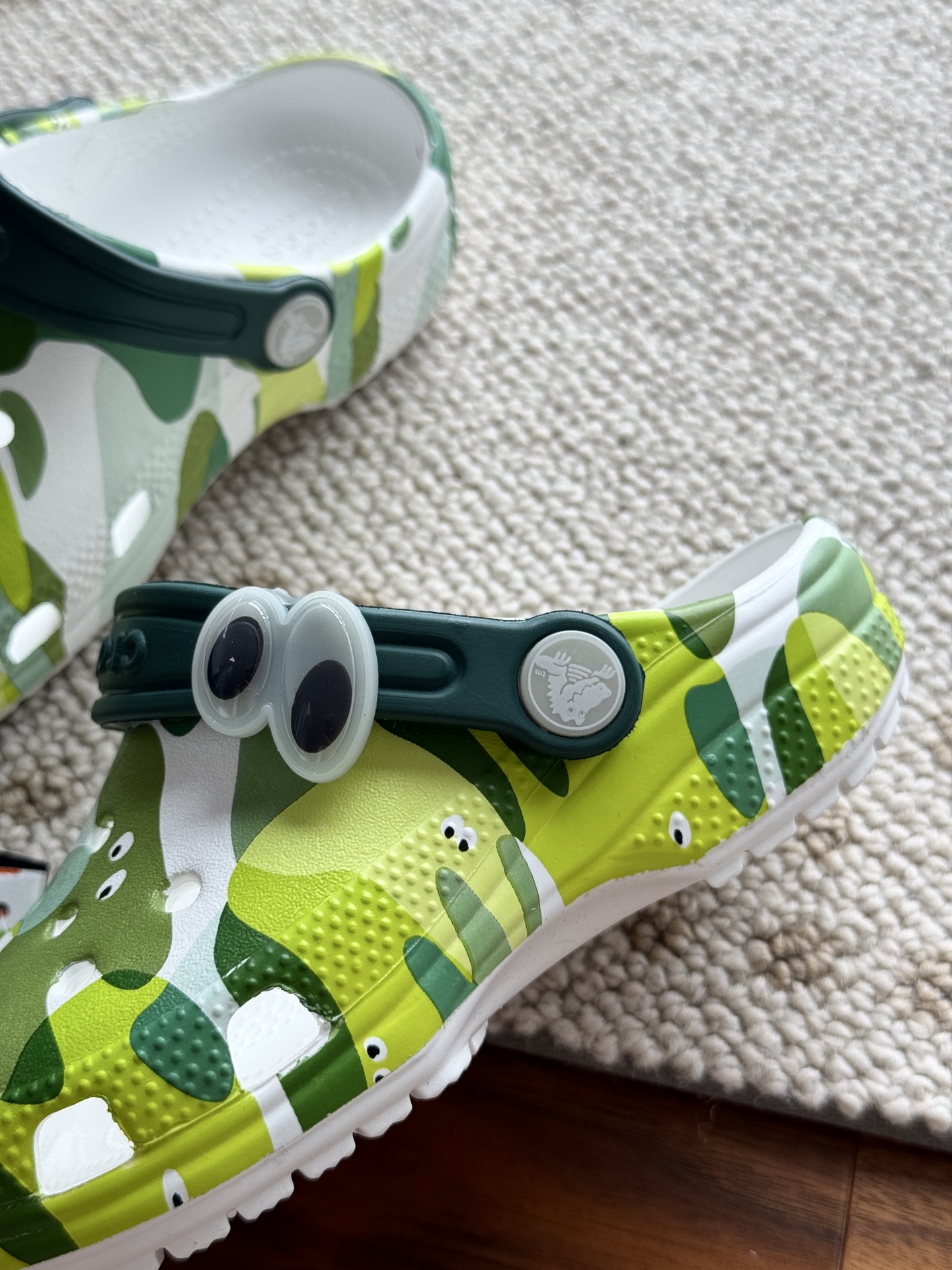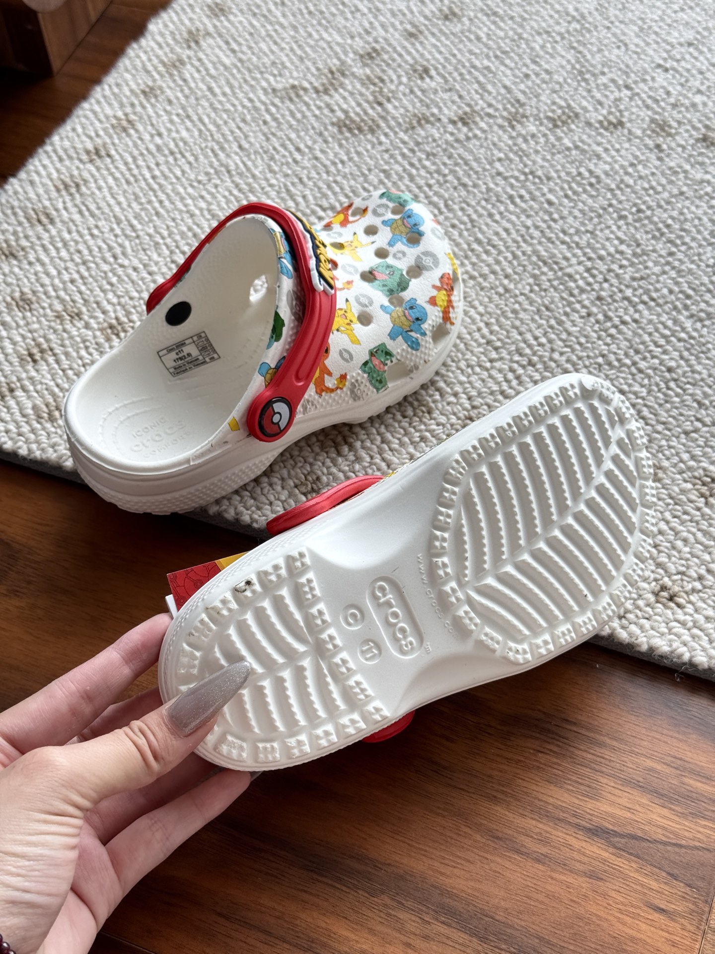 给宝贝的东西, 都是用的环保Croslite材料,封闭式细胞树脂, 能够在体温作用下自动变形以适应脚部形状。 提供轻质缓冲和舒适性,易于清洁,抓地力强, 不易打滑符合人体工学,鞋垫软弹有支撑注意看鞋内纹理,好不好自己去感受每一个都值得你细品 真材实料!很柔软鞋身全是通风洞洞,夏天脚丫秒散热,搭配可调后跟带,当凉拖或踩跟穿都行,一鞋两穿超灵活!Croslite™特殊的封闭式细胞树脂材质,能够在体温作用下自动变形以适应脚部形状,这也是洞洞鞋最好穿的细节!