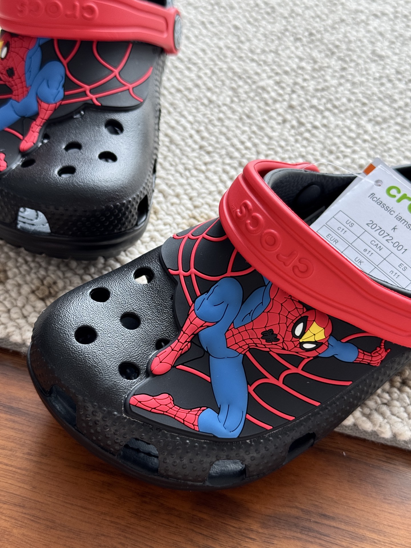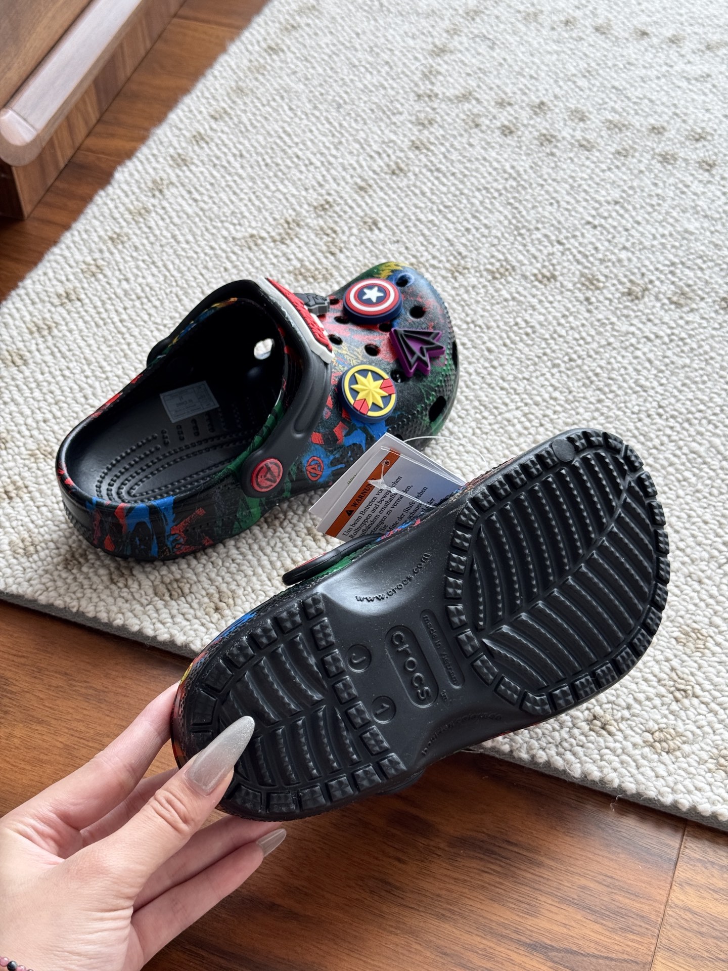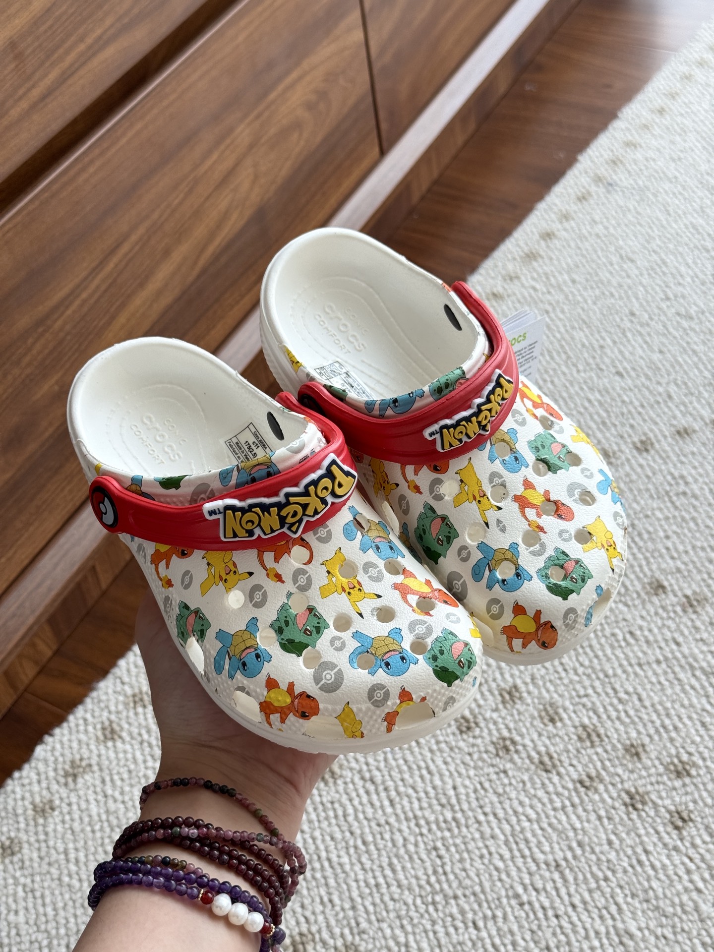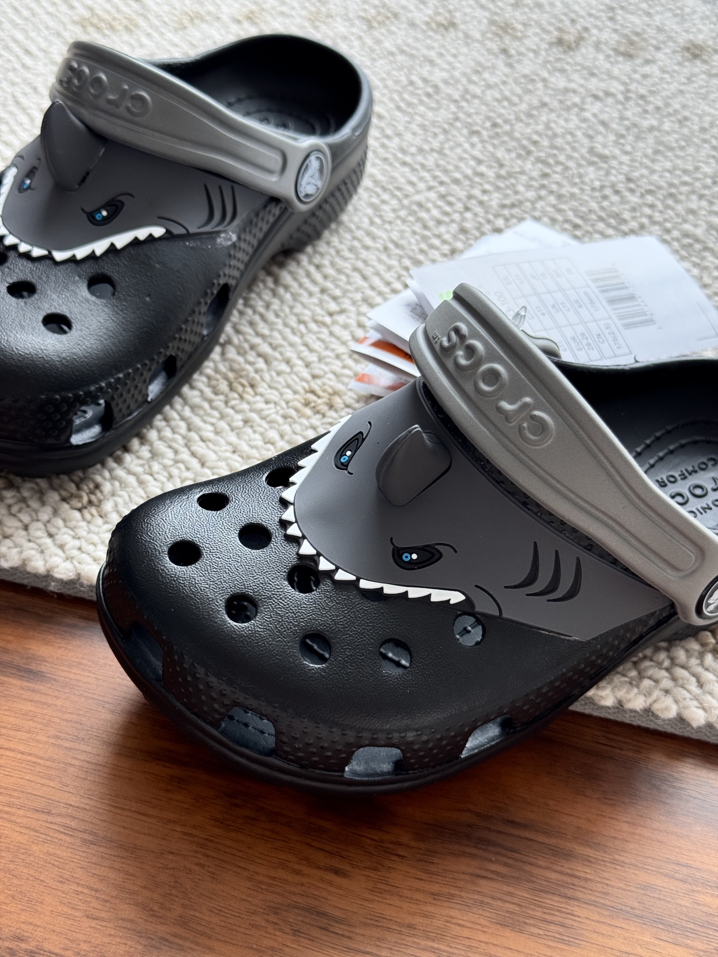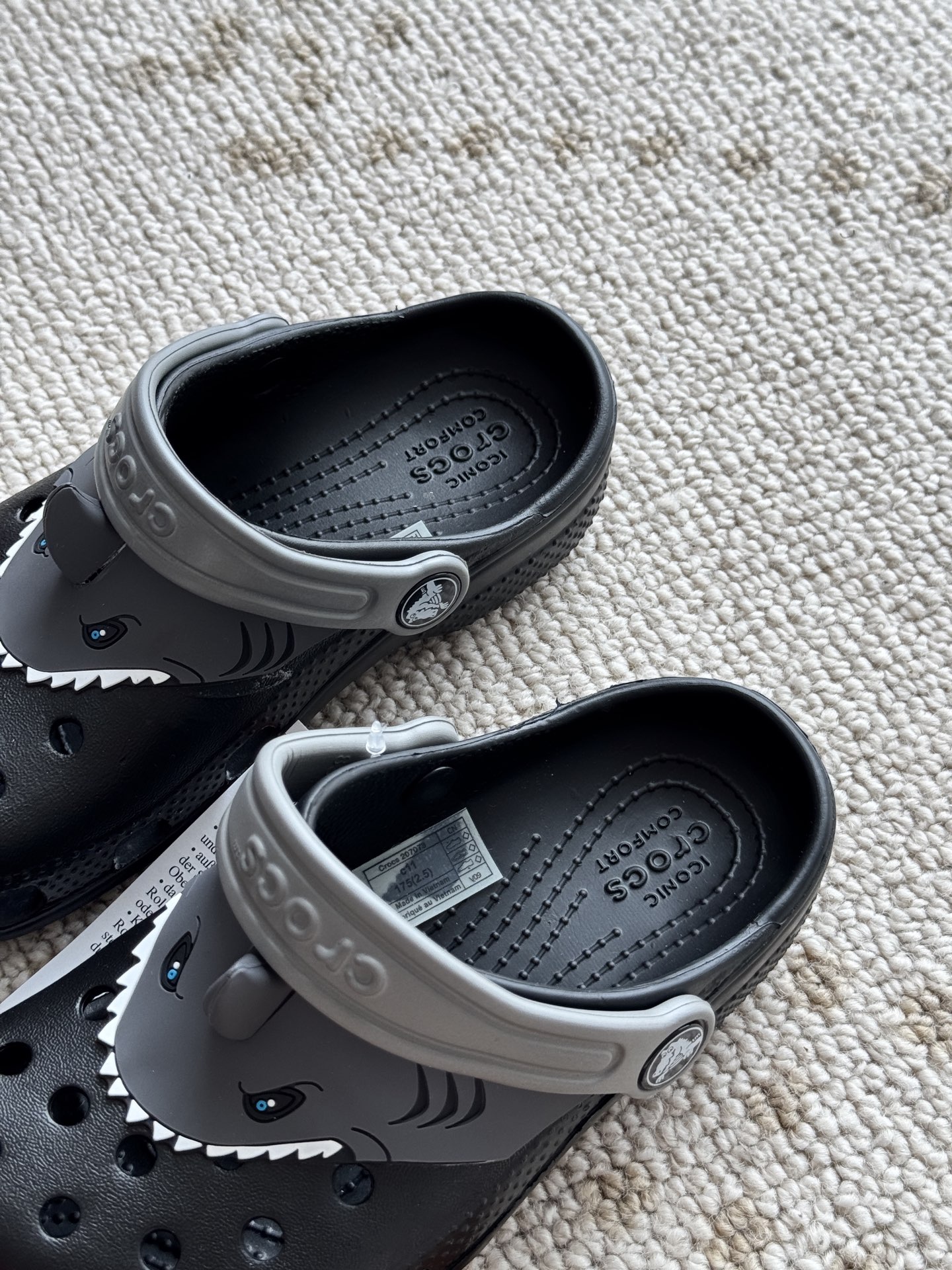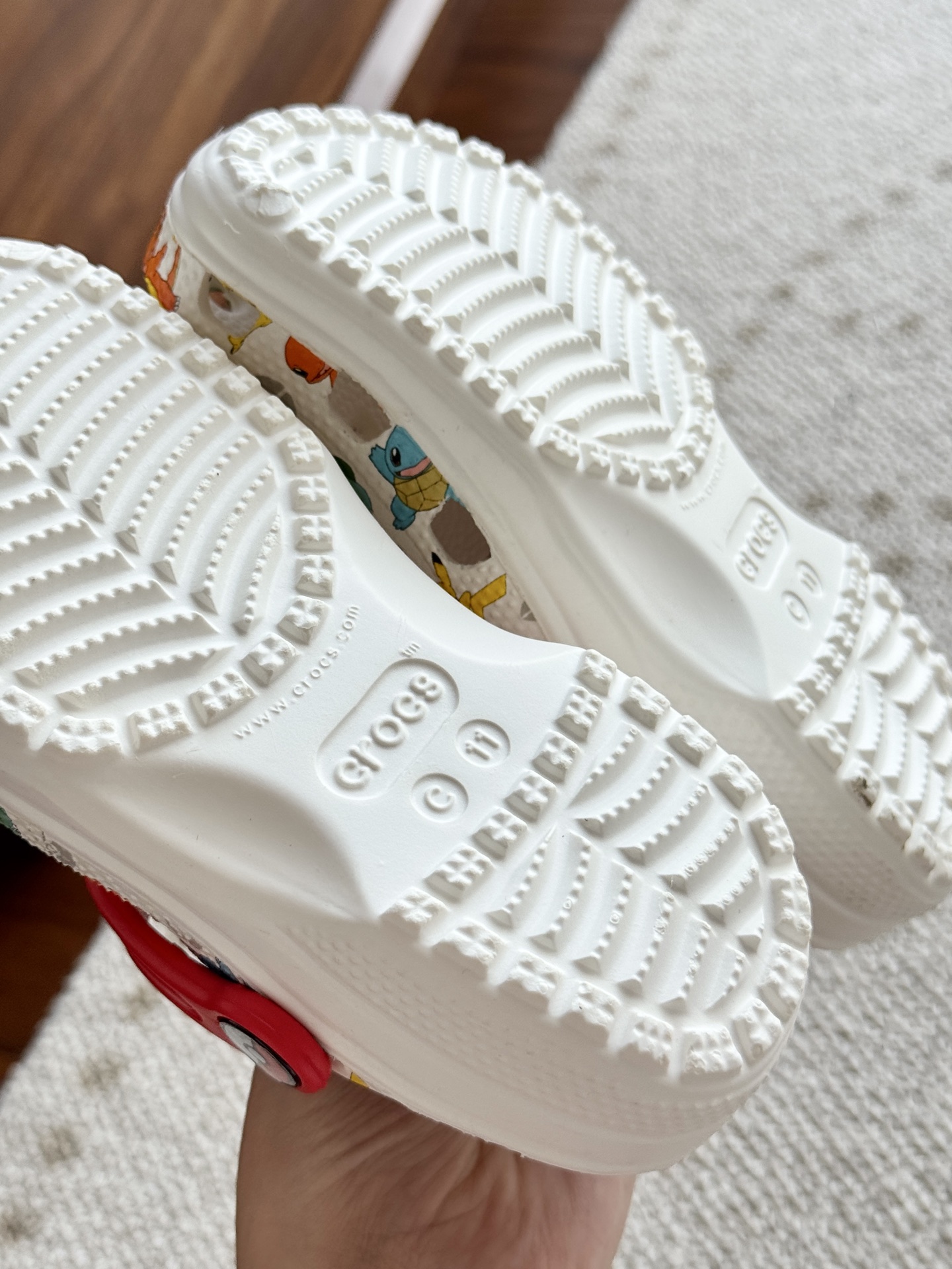 给宝贝的东西, 都是用的环保Croslite材料,封闭式细胞树脂, 能够在体温作用下自动变形以适应脚部形状。 提供轻质缓冲和舒适性,易于清洁,抓地力强, 不易打滑符合人体工学,鞋垫软弹有支撑注意看鞋内纹理,好不好自己去感受每一个都值得你细品 真材实料!很柔软鞋身全是通风洞洞,夏天脚丫秒散热,搭配可调后跟带,当凉拖或踩跟穿都行,一鞋两穿超灵活!Croslite™特殊的封闭式细胞树脂材质,能够在体温作用下自动变形以适应脚部形状,这也是洞洞鞋最好穿的细节!