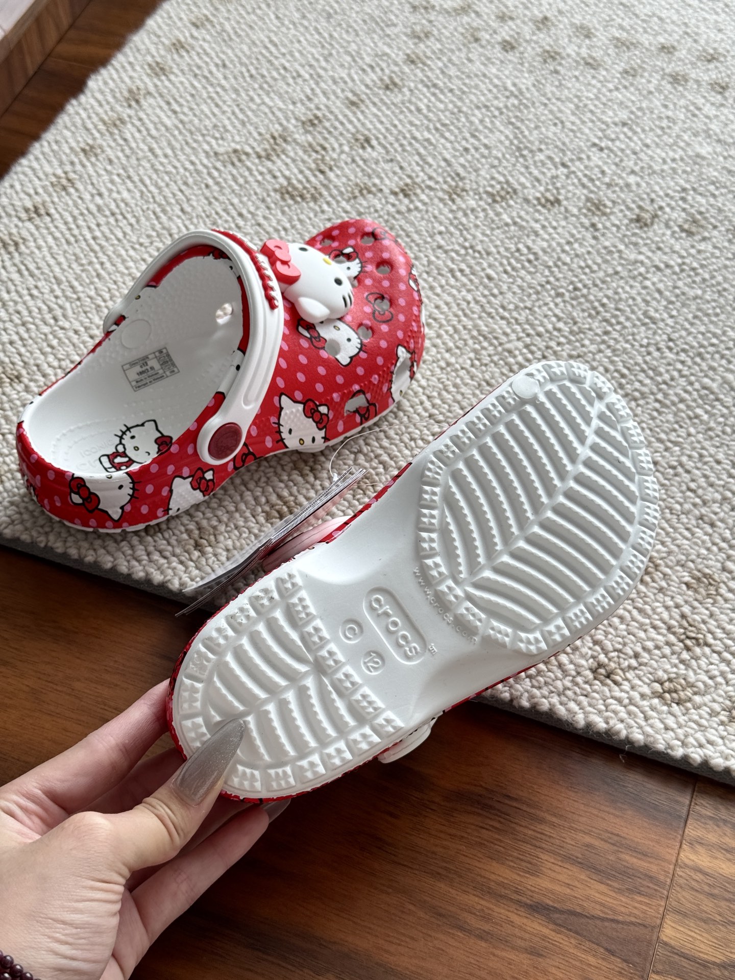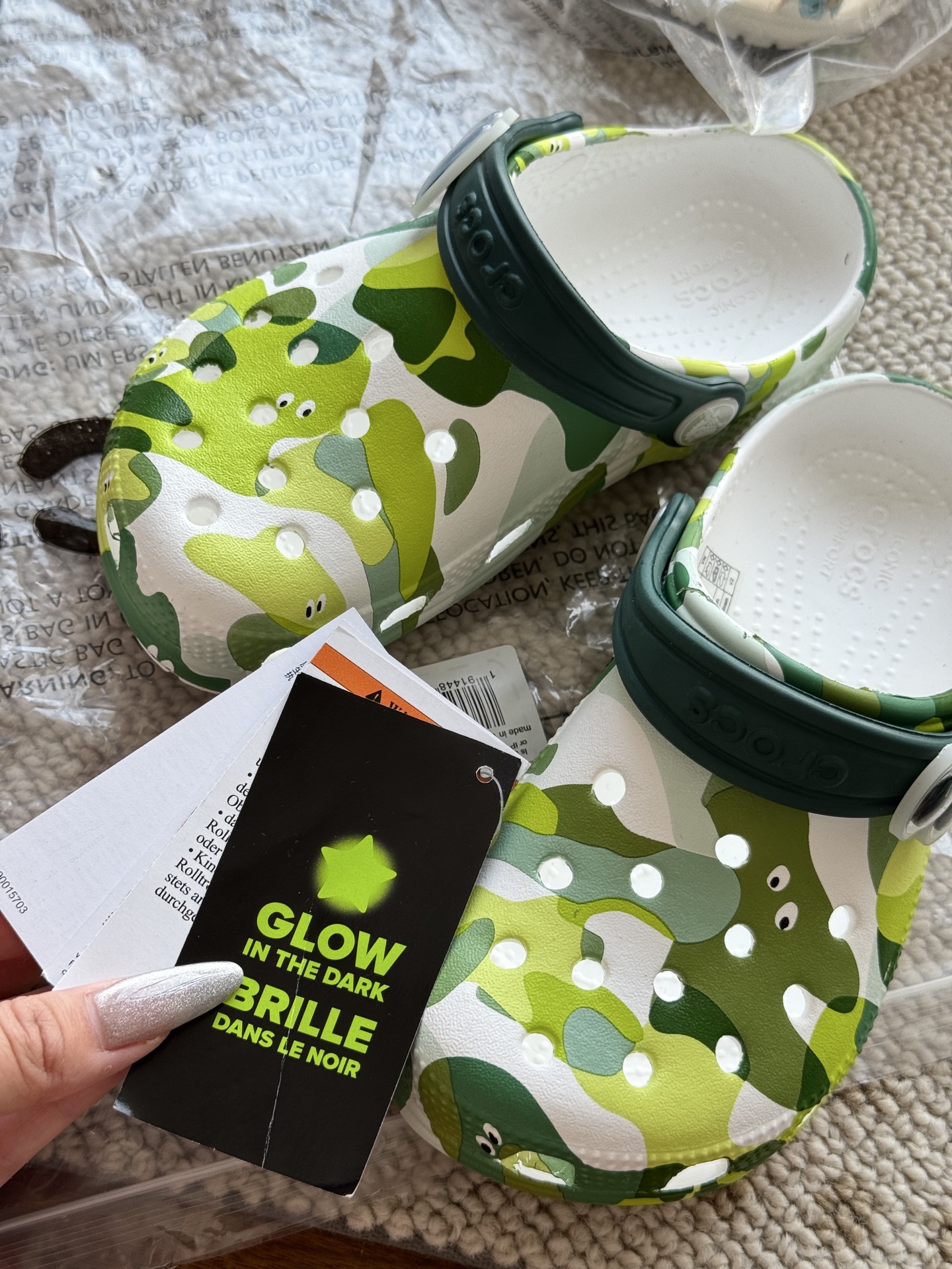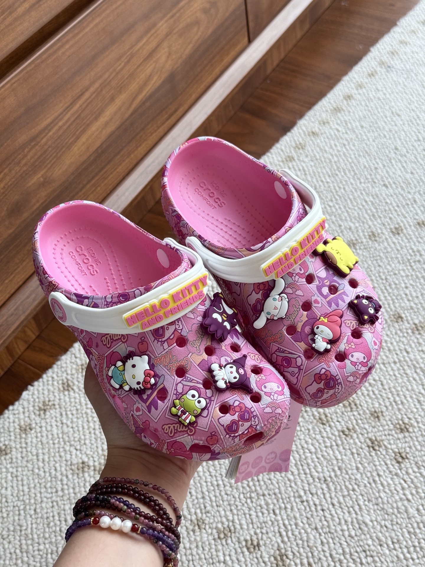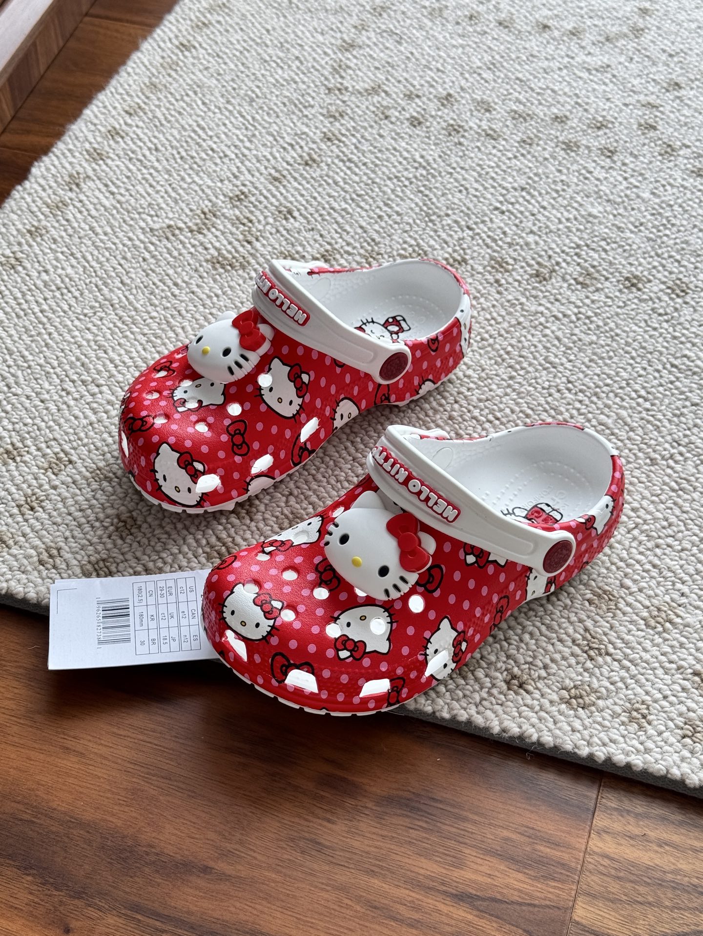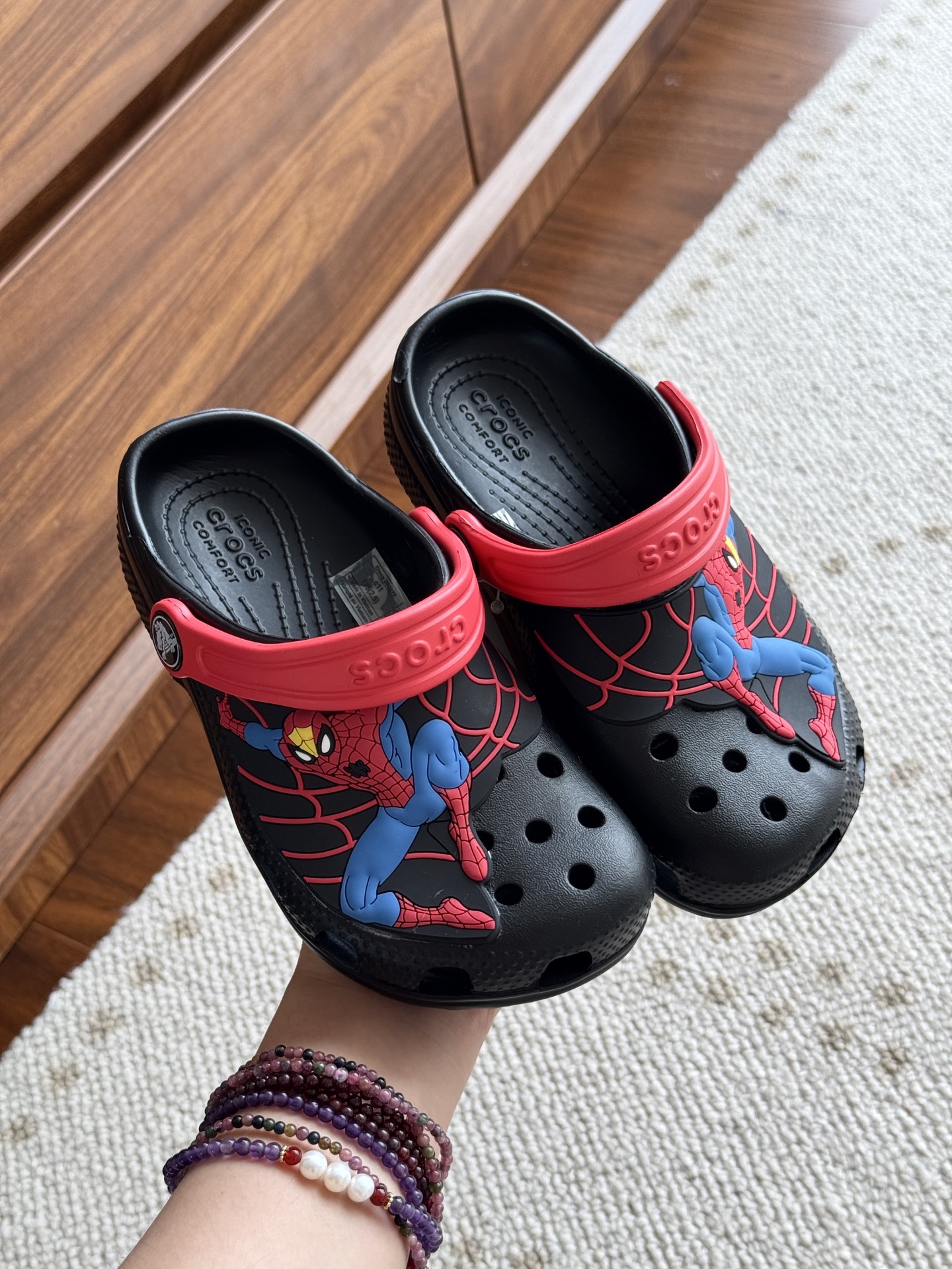 给宝贝的东西, 都是用的环保Croslite材料,封闭式细胞树脂, 能够在体温作用下自动变形以适应脚部形状。 提供轻质缓冲和舒适性,易于清洁,抓地力强, 不易打滑符合人体工学,鞋垫软弹有支撑注意看鞋内纹理,好不好自己去感受每一个都值得你细品 真材实料!很柔软鞋身全是通风洞洞,夏天脚丫秒散热,搭配可调后跟带,当凉拖或踩跟穿都行,一鞋两穿超灵活!Croslite™特殊的封闭式细胞树脂材质,能够在体温作用下自动变形以适应脚部形状,这也是洞洞鞋最好穿的细节!