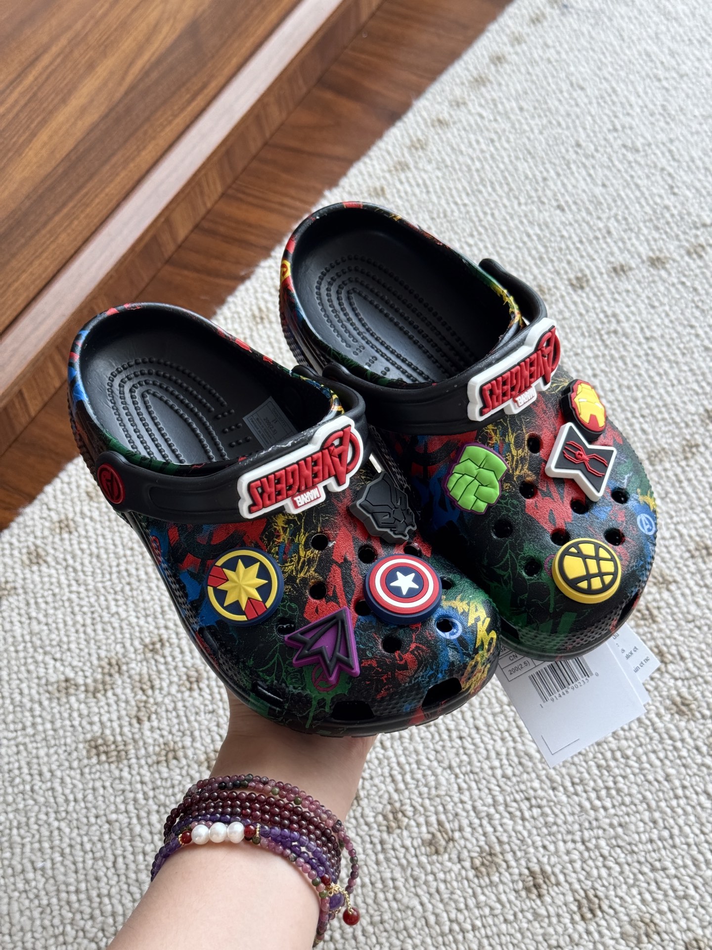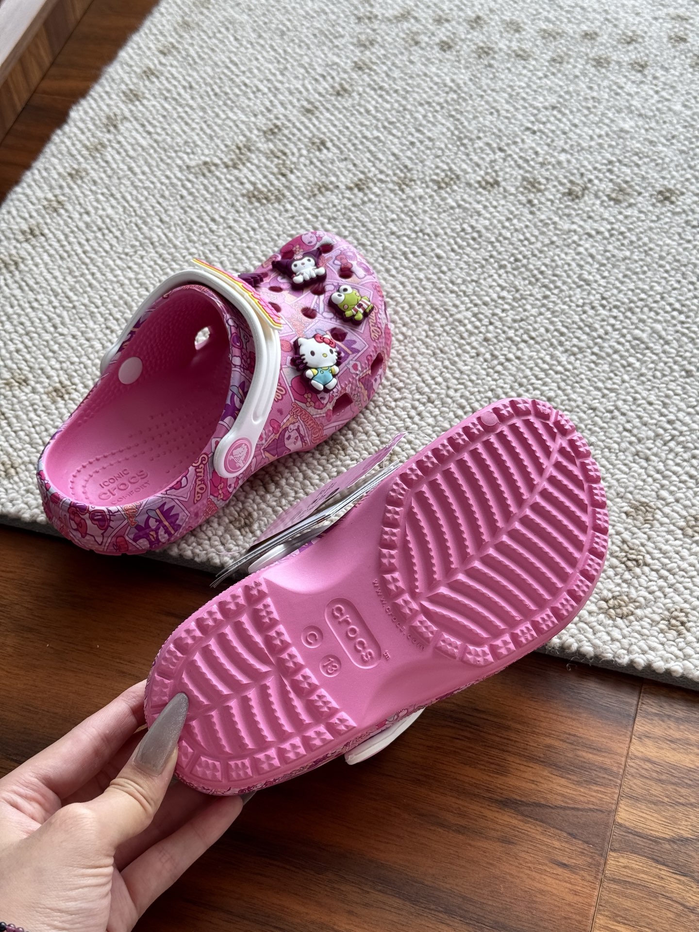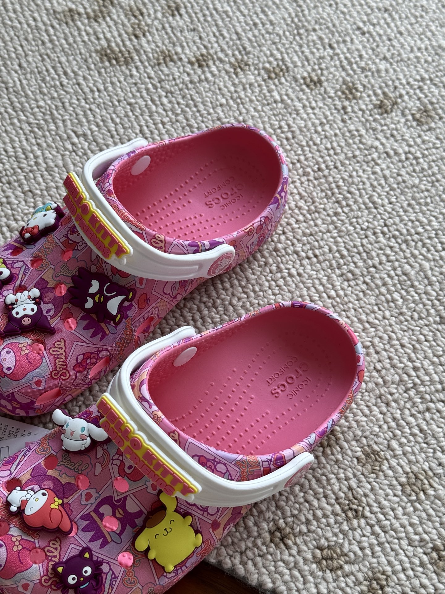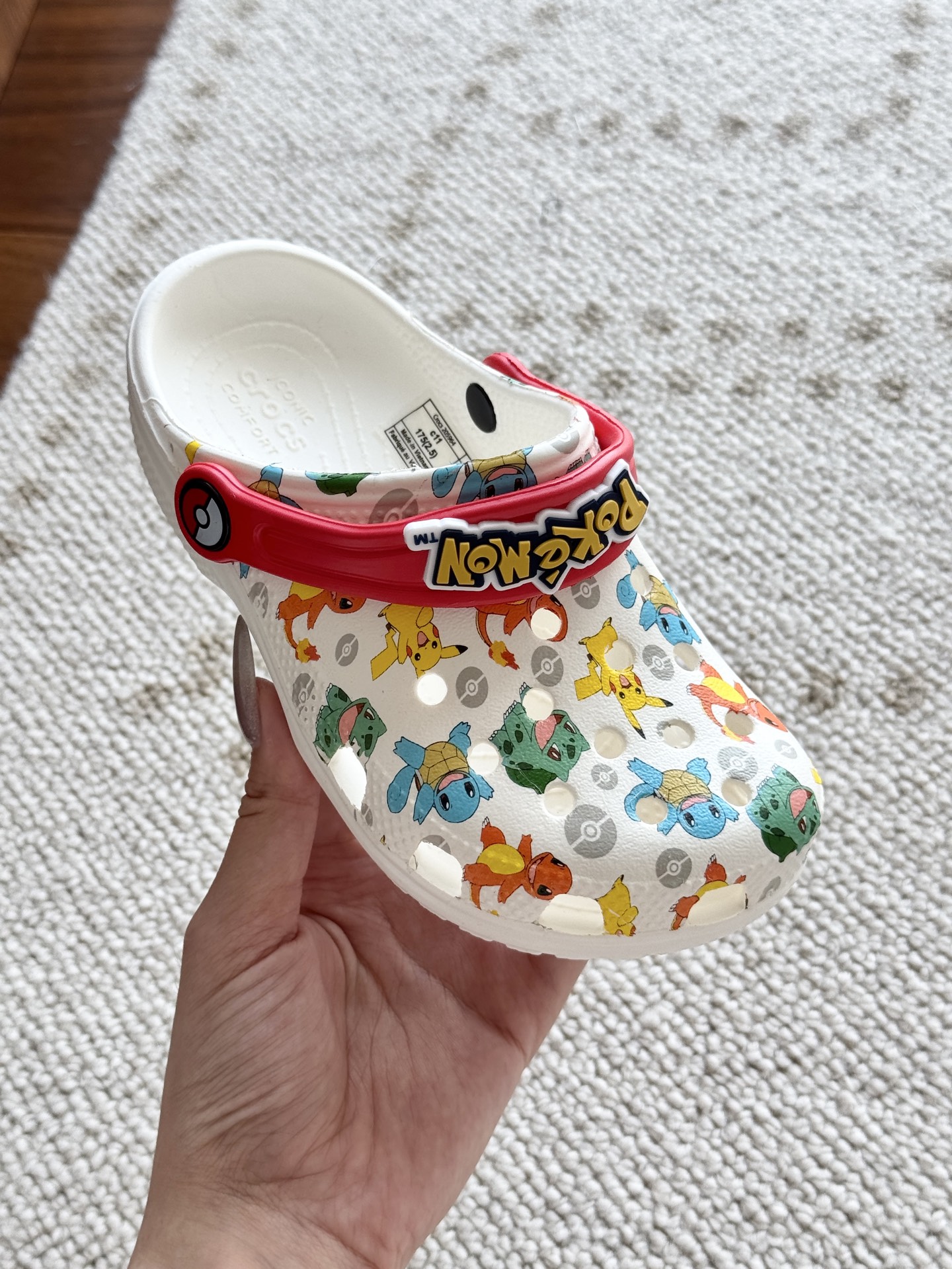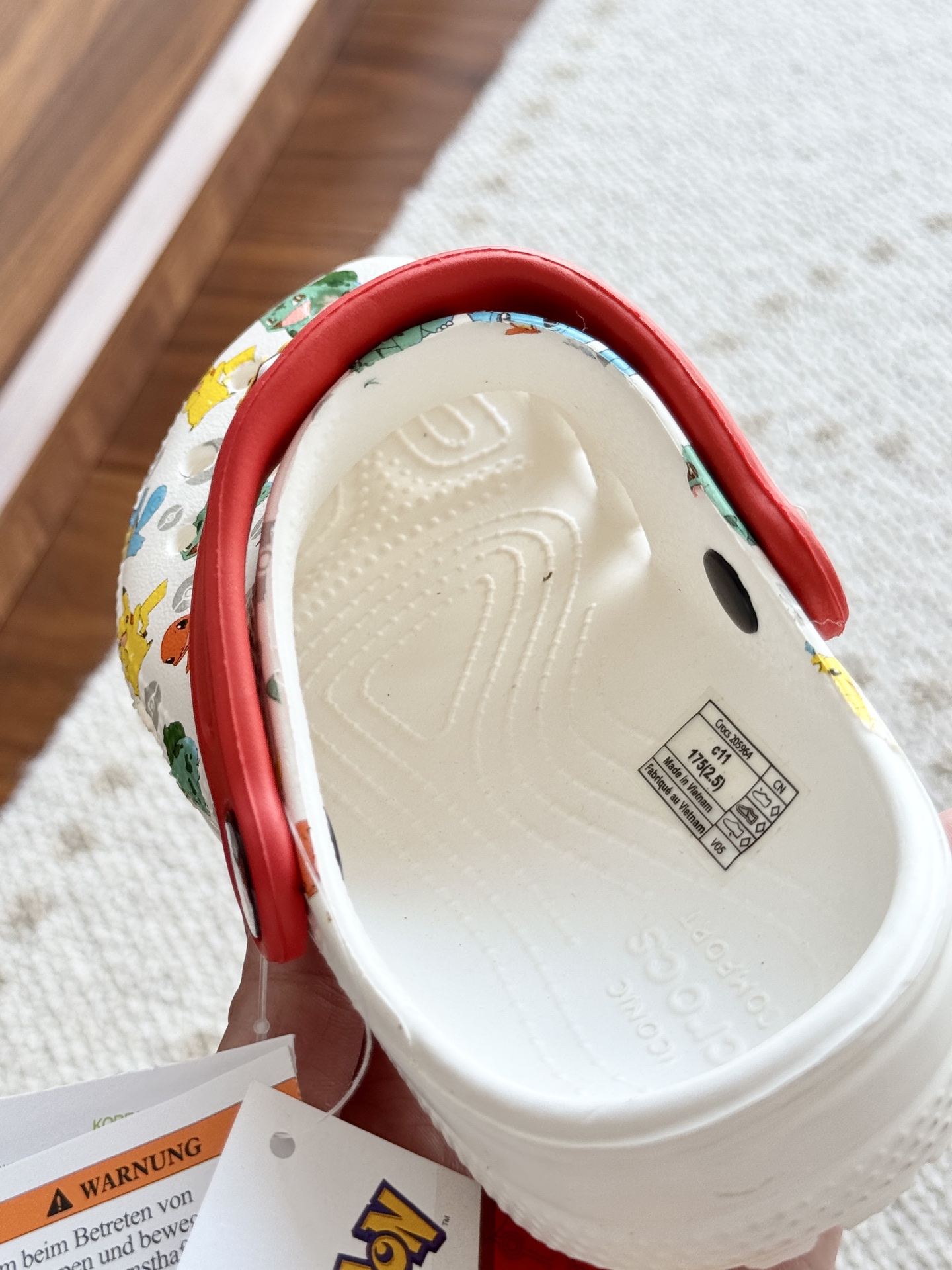 给宝贝的东西, 都是用的环保Croslite材料,封闭式细胞树脂, 能够在体温作用下自动变形以适应脚部形状。 提供轻质缓冲和舒适性,易于清洁,抓地力强, 不易打滑符合人体工学,鞋垫软弹有支撑注意看鞋内纹理,好不好自己去感受每一个都值得你细品 真材实料!很柔软鞋身全是通风洞洞,夏天脚丫秒散热,搭配可调后跟带,当凉拖或踩跟穿都行,一鞋两穿超灵活!Croslite™特殊的封闭式细胞树脂材质,能够在体温作用下自动变形以适应脚部形状,这也是洞洞鞋最好穿的细节!