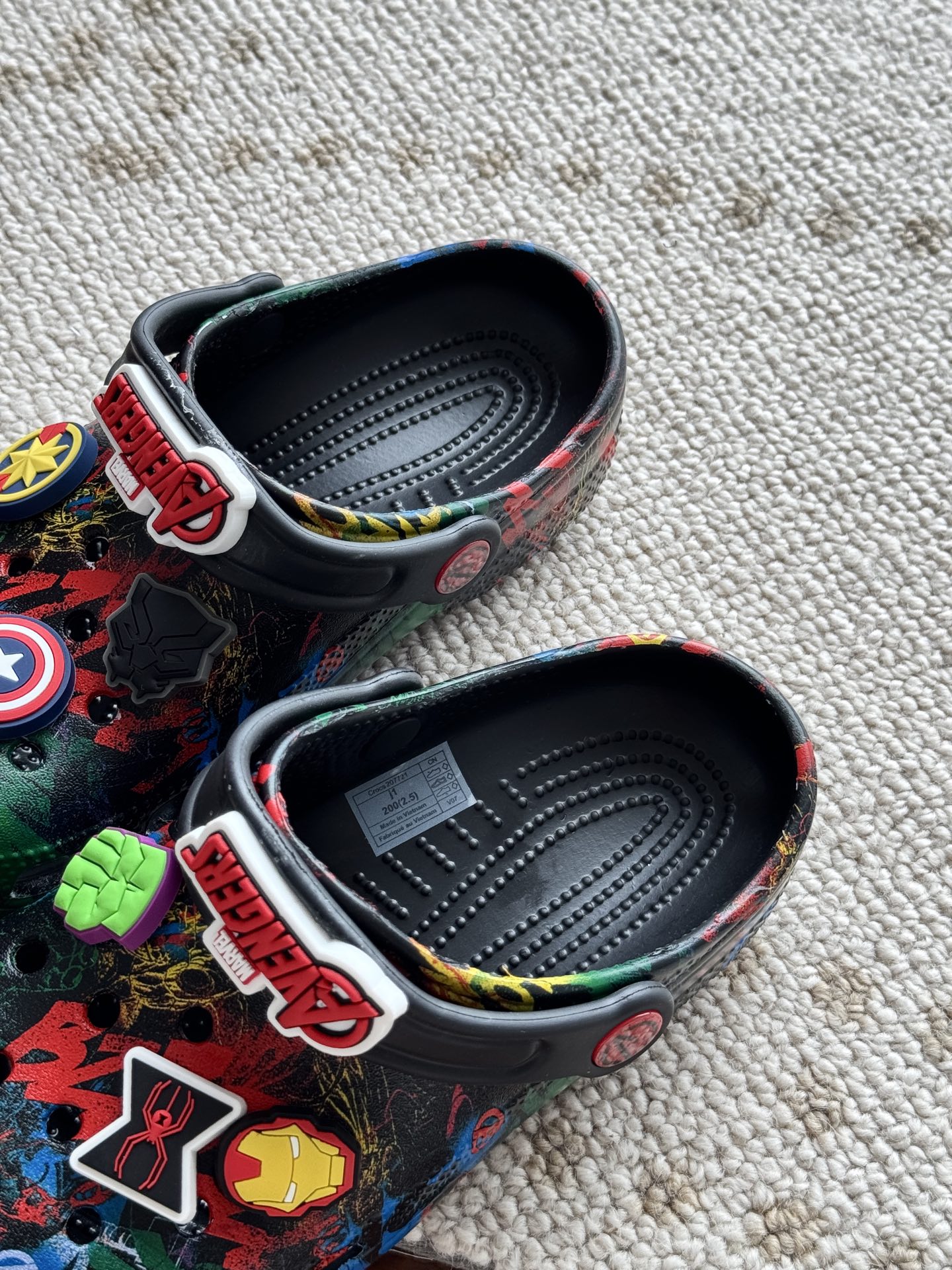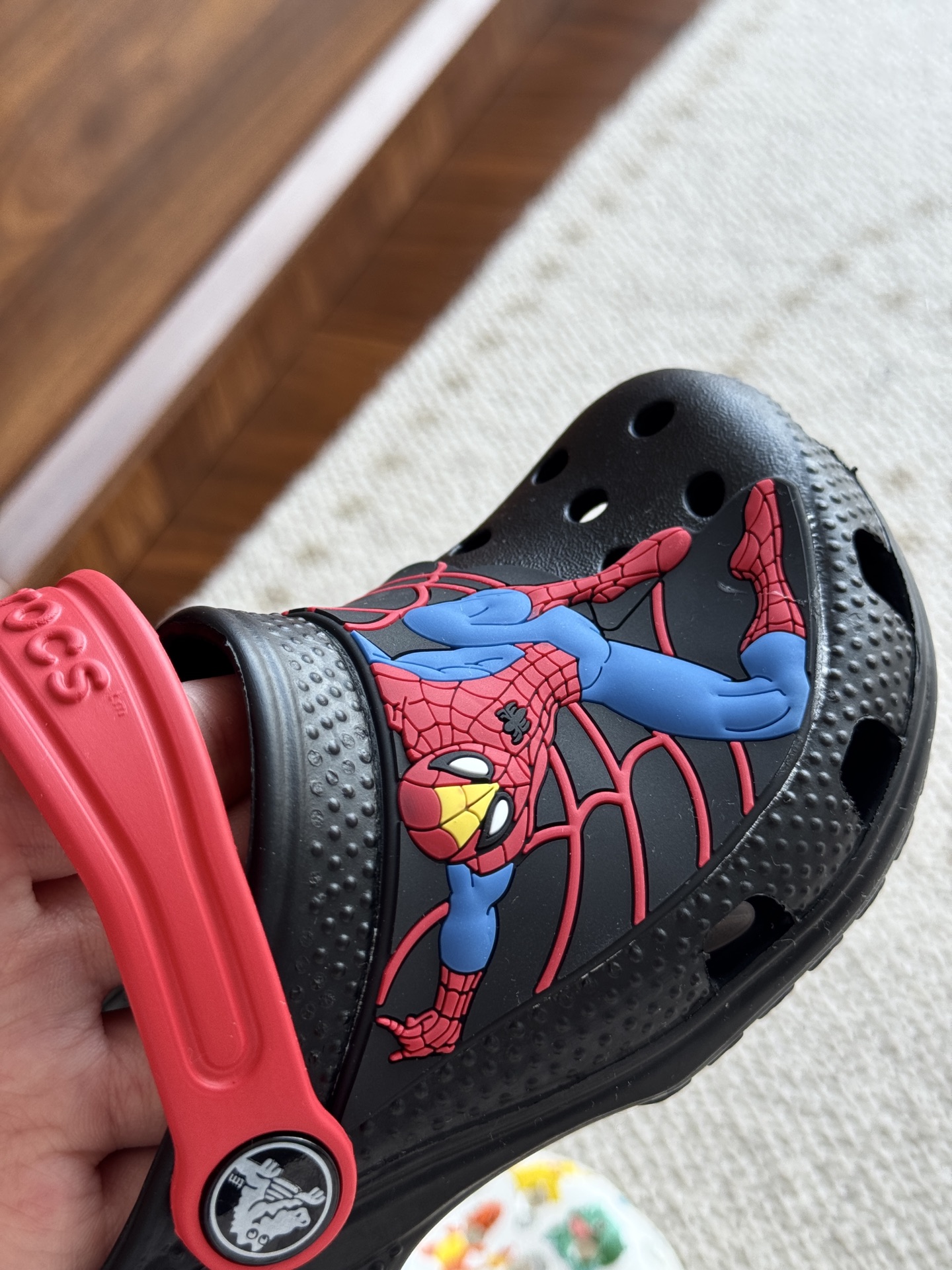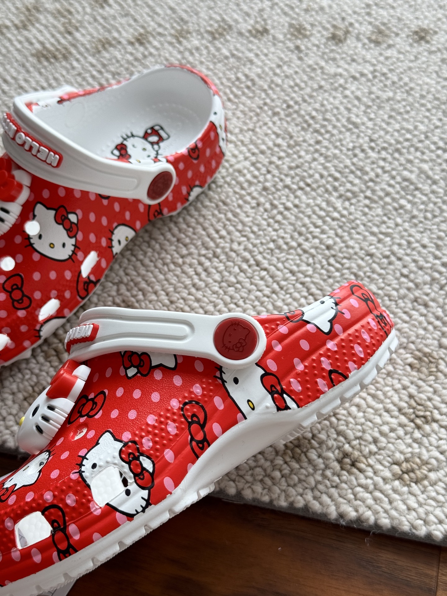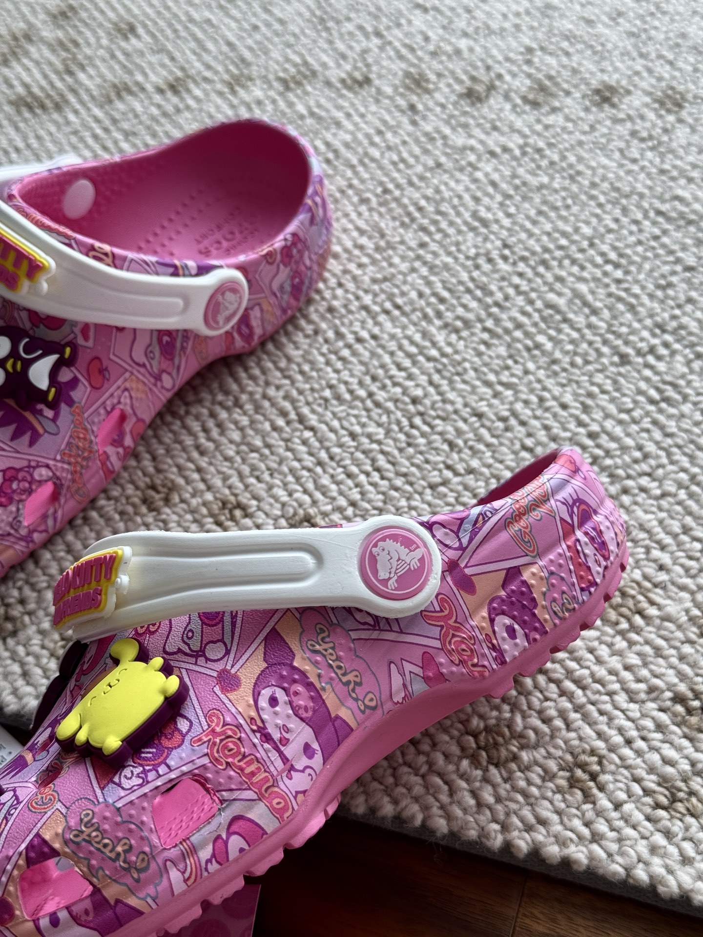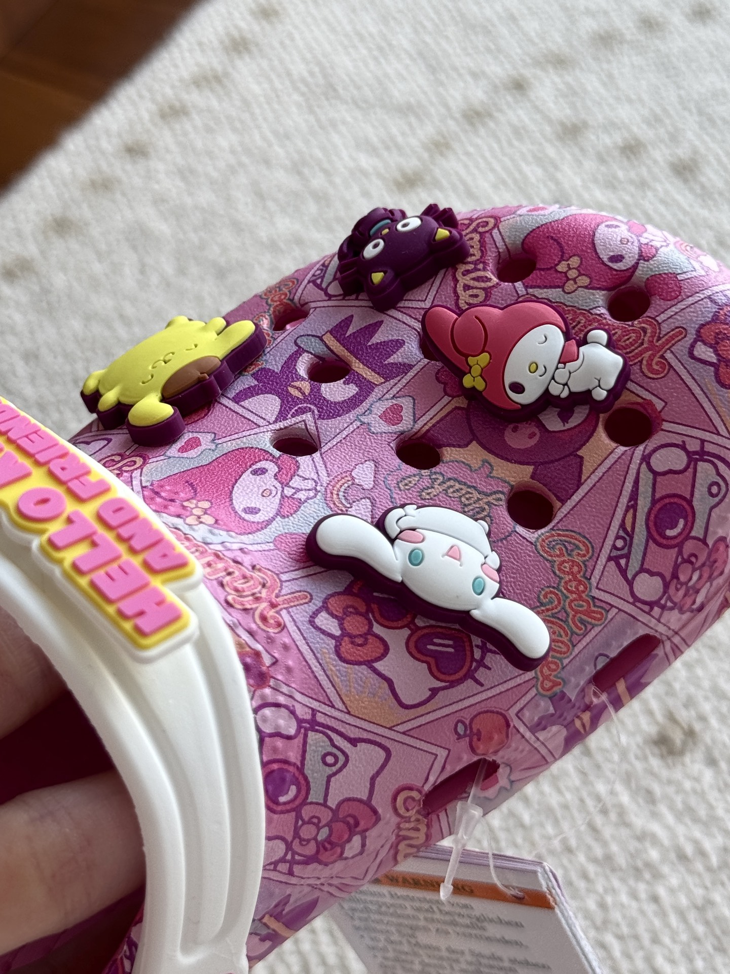 给宝贝的东西, 都是用的环保Croslite材料,封闭式细胞树脂, 能够在体温作用下自动变形以适应脚部形状。 提供轻质缓冲和舒适性,易于清洁,抓地力强, 不易打滑符合人体工学,鞋垫软弹有支撑注意看鞋内纹理,好不好自己去感受每一个都值得你细品 真材实料!很柔软鞋身全是通风洞洞,夏天脚丫秒散热,搭配可调后跟带,当凉拖或踩跟穿都行,一鞋两穿超灵活!Croslite™特殊的封闭式细胞树脂材质,能够在体温作用下自动变形以适应脚部形状,这也是洞洞鞋最好穿的细节!
